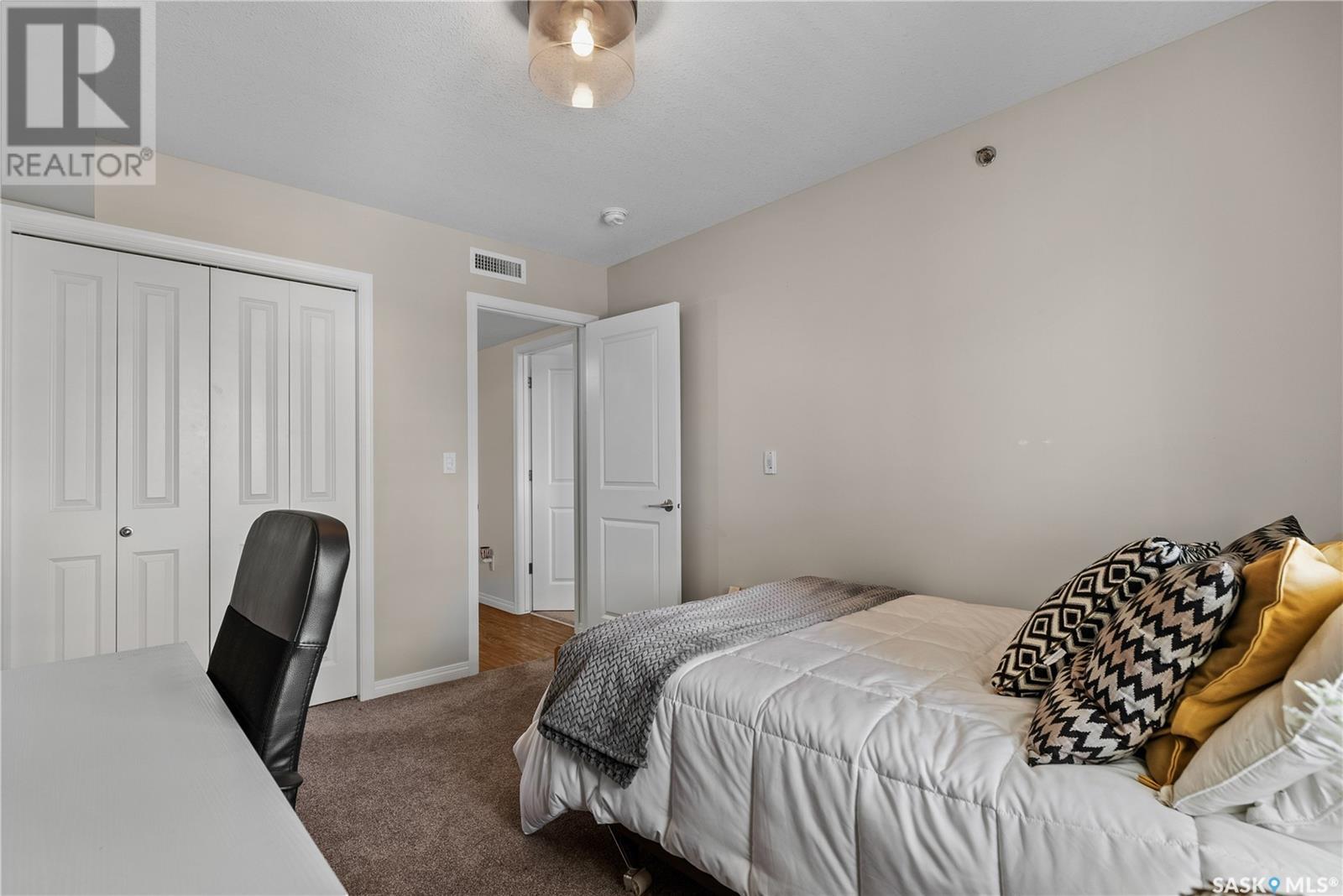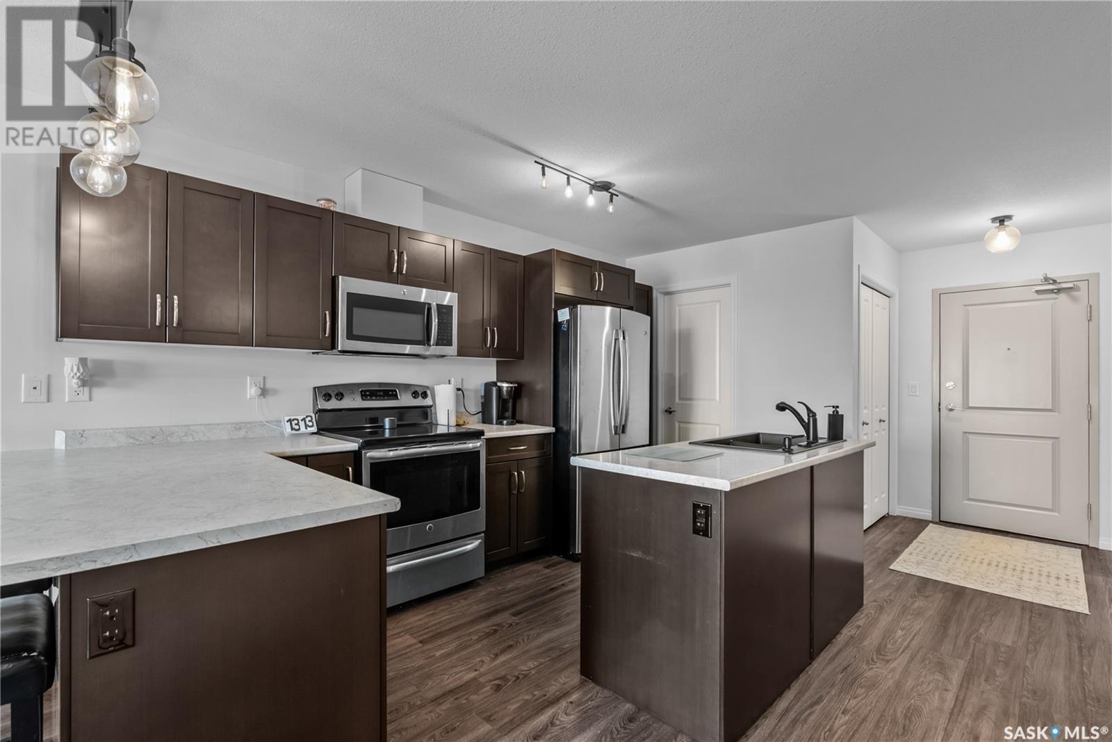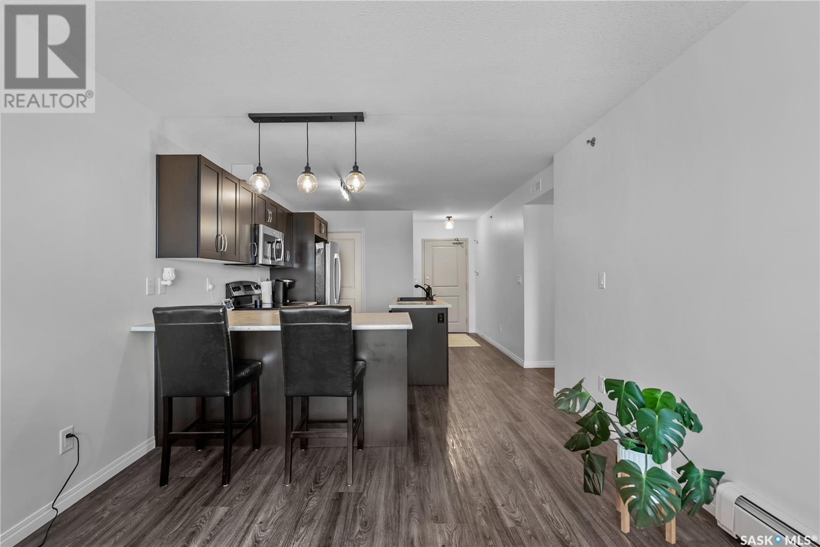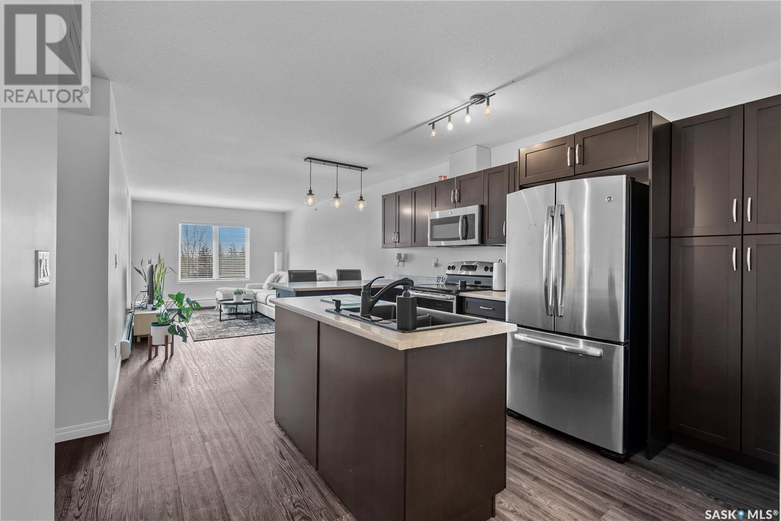 $495 MonthlyExperience effortless, executive-style living in The Signature, a highly desirable condo development in Kildeer Park. This top-floor, 1,034 sqft unit is perfect for working professionals or retirees seeking security, style, and low-maintenance living. Inside, the open-concept layout features a modern kitchen with stainless steel appliances, a spacious island, corner pantry, and generous cabinetry. The bright living room is filled with natural light and opens onto a sunny south-facing balcony overlooking Kildeer Park, complete with an outdoor storage room. Enjoy two spacious bedrooms, including a primary suite with its own 4-piece ensuite. A second full bathroom, in-unit laundry, and a dedicated storage room offer everyday convenience. This well-managed building includes a heated underground parking stall, elevator access, a main-floor common room, and condo fees that cover all utilities except power. Care-free, top-floor living in a prime location! Call your agent and book your showing today! (id:43042)