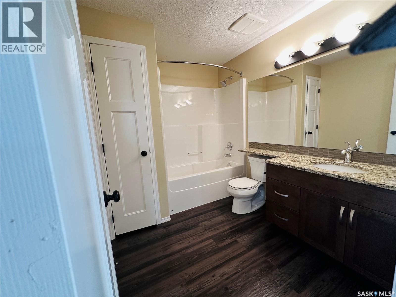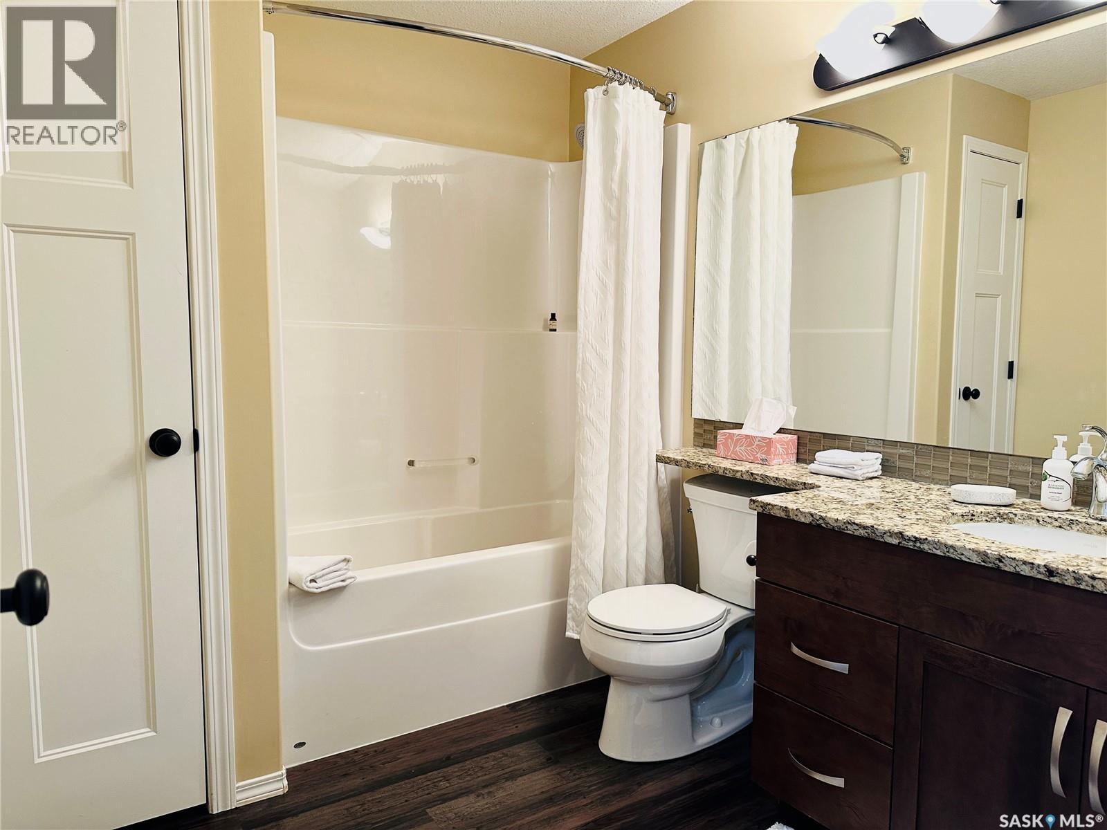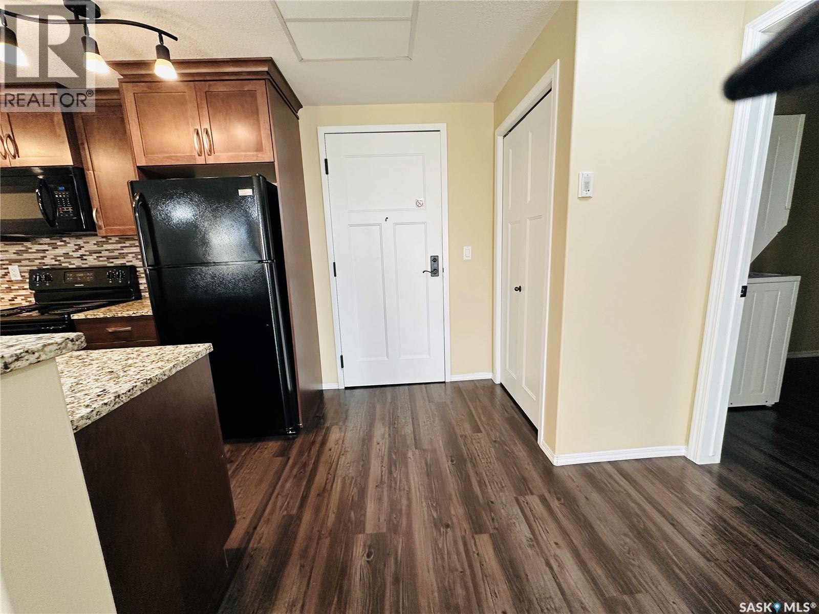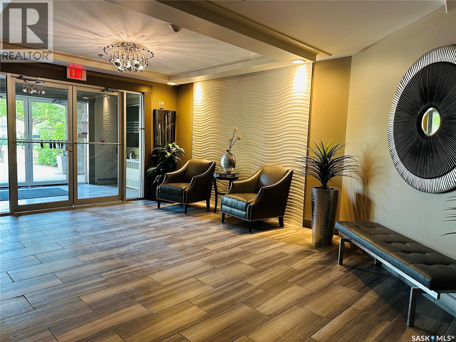 $596.66 MonthlyExecutive Top FLoor Condo located in the beautiful Bellagio Terrace in Hillsdale. Two bedrooms, two bathrooms and two parking stalls. The primary bedroom suite is perfect with a walk through closet and ensuite bathroom. Other bedroom and 4 piece bathroom on the other side of the condo, the ideal floor plan! A spacious entry and good size laundry room with storage space. The kitchen is complete with all appliances, maple cabinets, granite countertop and eat at island. Luxury Vinyl Plank flooring. Dining area and living room open with natural lighting from good size window. Garden door out to the deck to enjoy your own outdoor quiet area with a north west view. A modern clean move in ready condo, has been well maintained! Central Air. Heated underground parking with elevator. Common area includes a fitness centre. This property is a perfect couples condo or two people - your own bedroom, bathroom and parking space. Not all rooms are in the photos. Located near Wascana Park, close to downtown and the University. Condo fees include common area maintenance & insurance, exterior building, garbage, heat, water, sewer, lawn care & snow removal. A very nice quiet building and grounds well kept! This property could be yours, a comfortable lifestyle in a great location (id:43042)