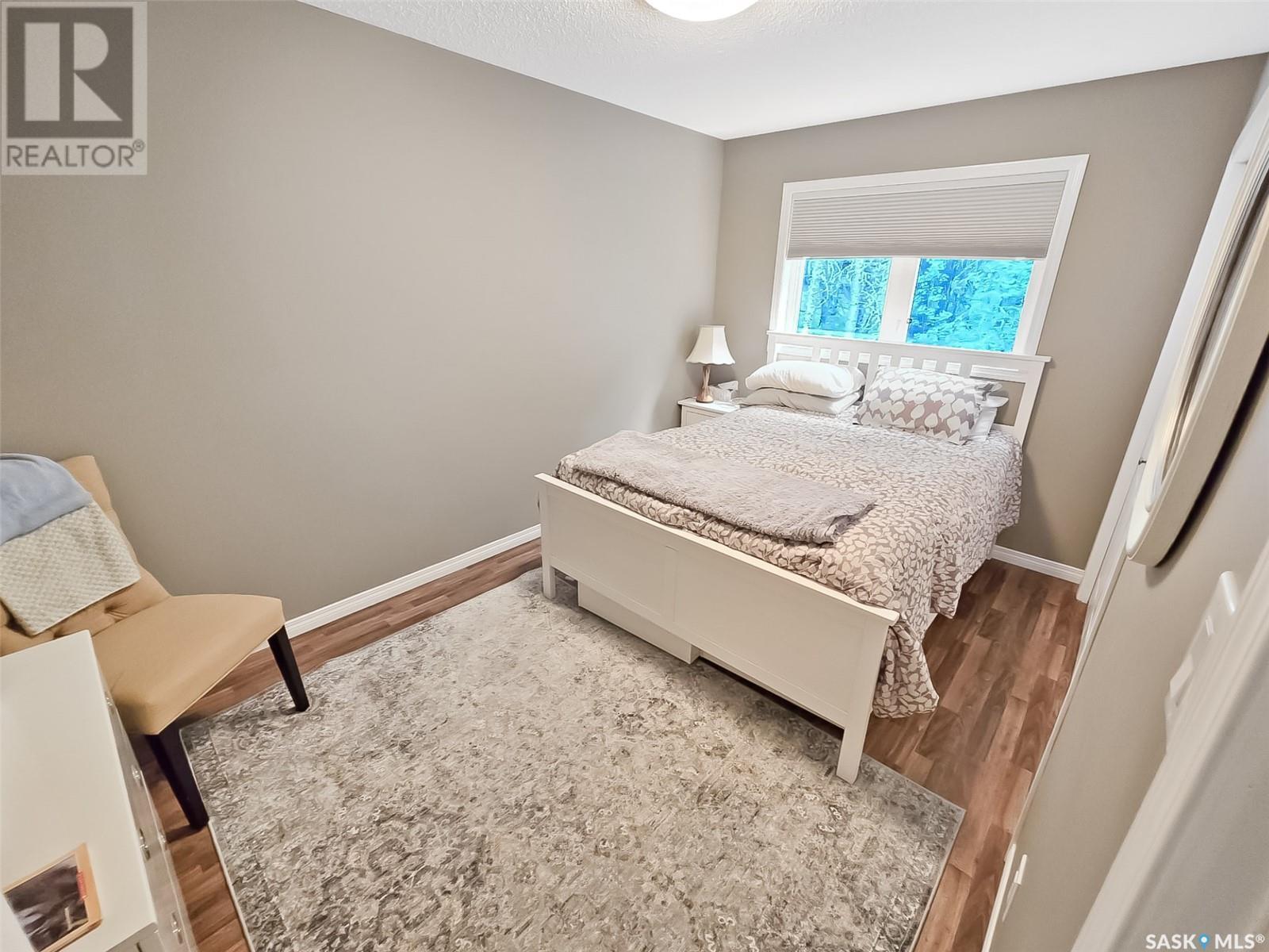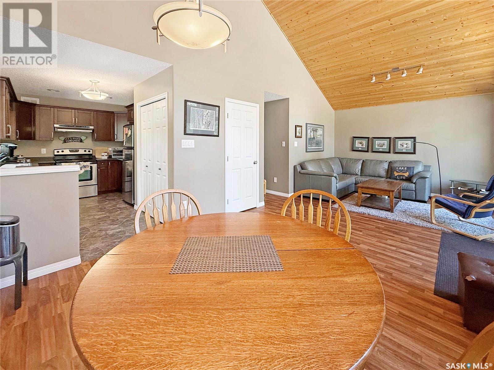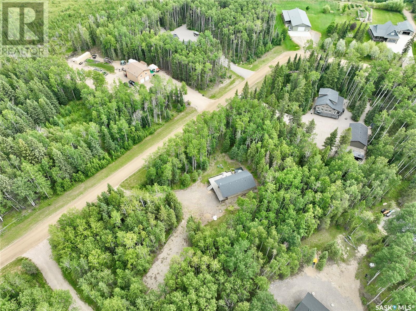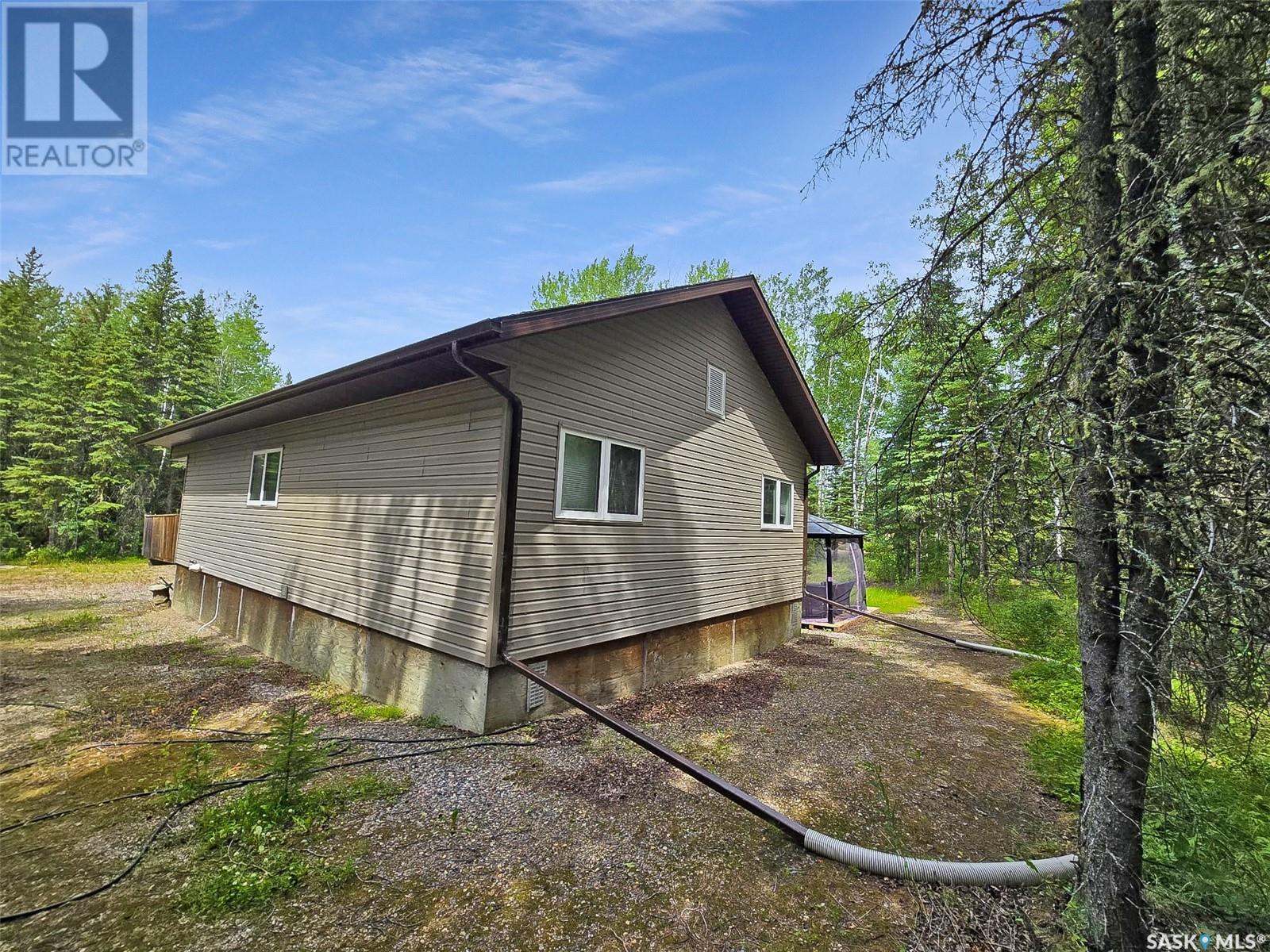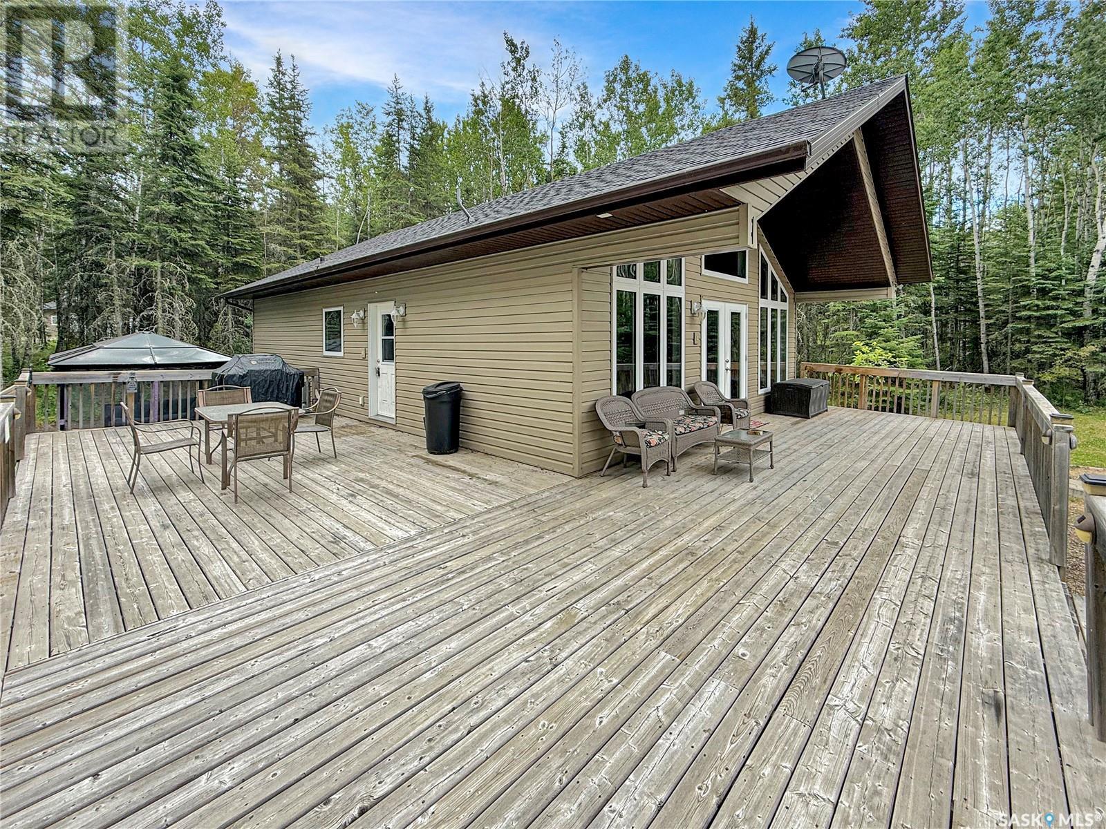 Escape to Aspen Estates and discover this Warman RTM gem! With 1,040 sqft of smartly designed living space, this 3-bedroom, 1-bathroom home features vaulted ceilings, abundant natural light, convenient laundry, and plenty of storage throughout. Nestled on a sprawling 1.24-acre lot surrounded by trees and tranquility, this home offers the perfect blend of comfort and nature. Step outside onto the massive wraparound deck—ideal for morning coffee or evening BBQs. Enjoy the private gazebo, cozy firepit area, and peaceful views under the open sky. Additional perks include your own private well (unlimited water!), a septic mound, and a cleared space ready for a garage or RV parking. High and dry, low-maintenance, and move-in ready—this property checks all the boxes. Aspen Estates is a welcoming, peaceful community where you can truly unwind. This could be #yourhappyplace (id:43042)