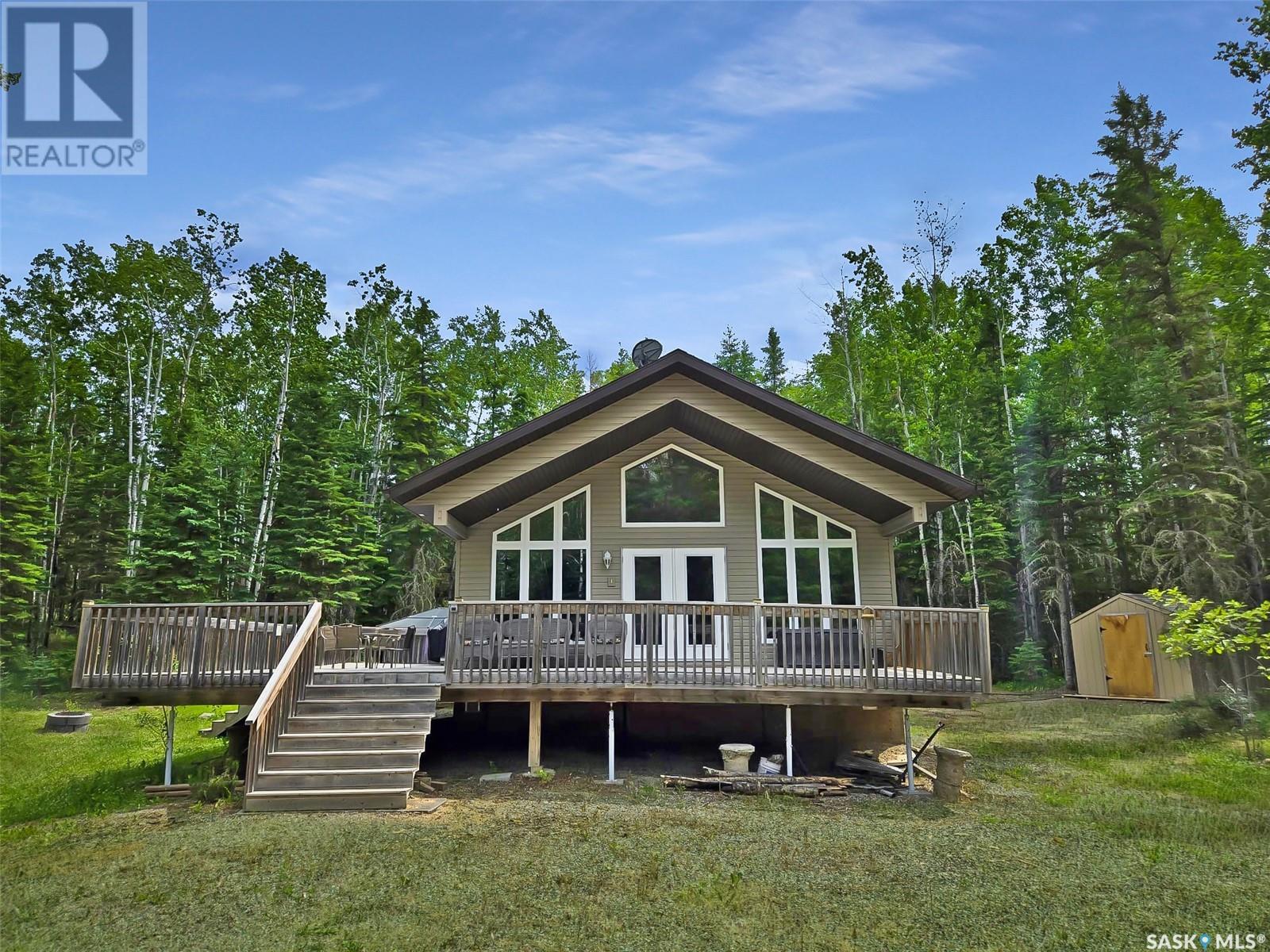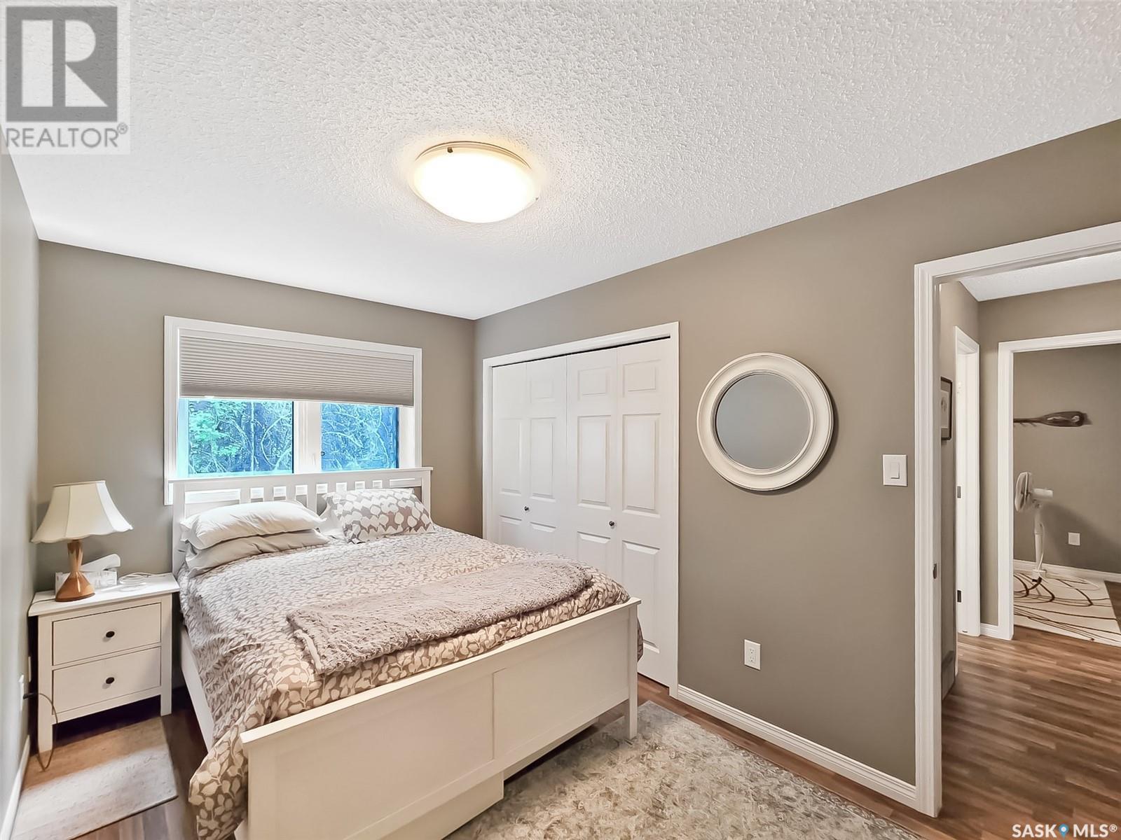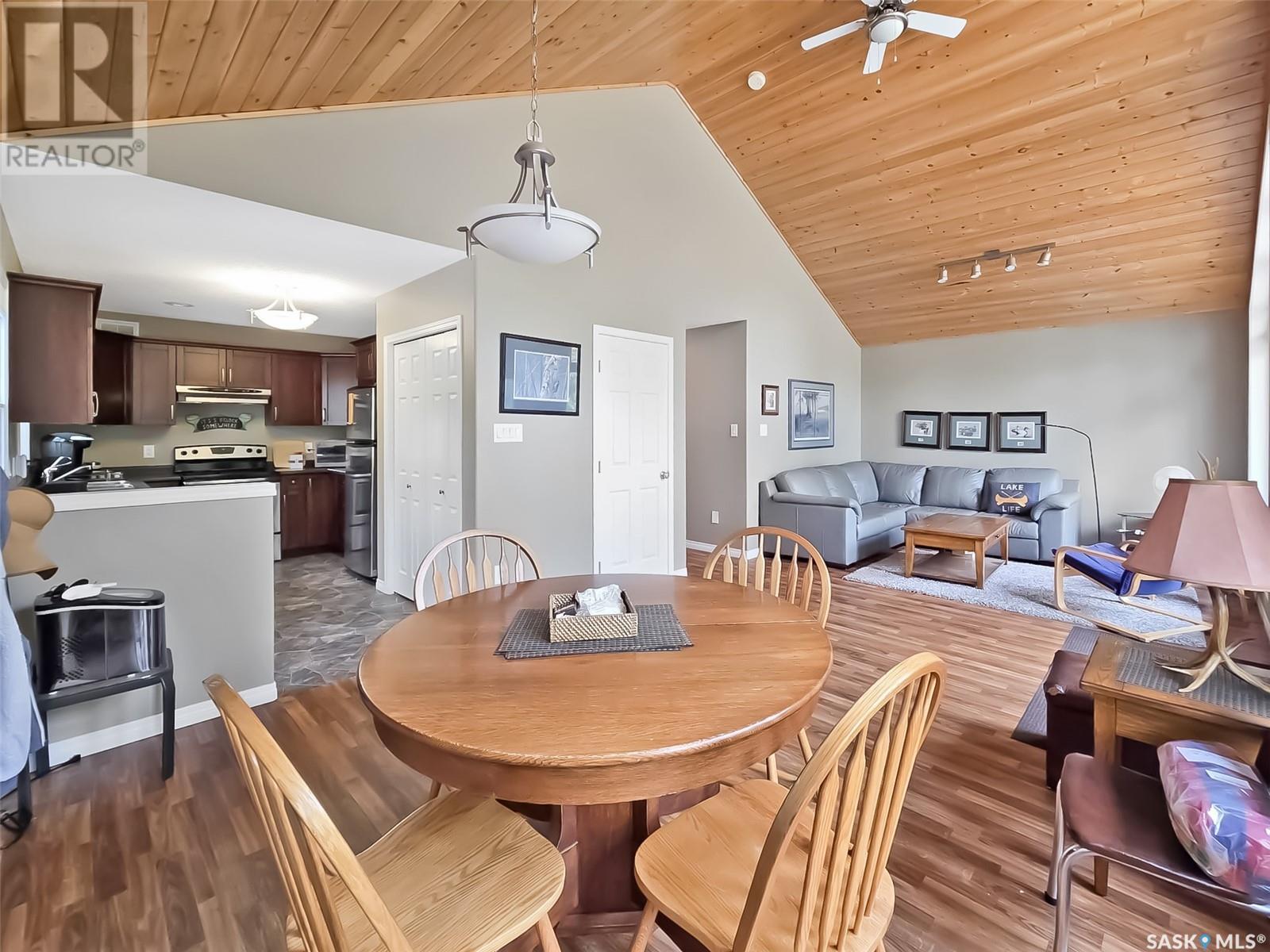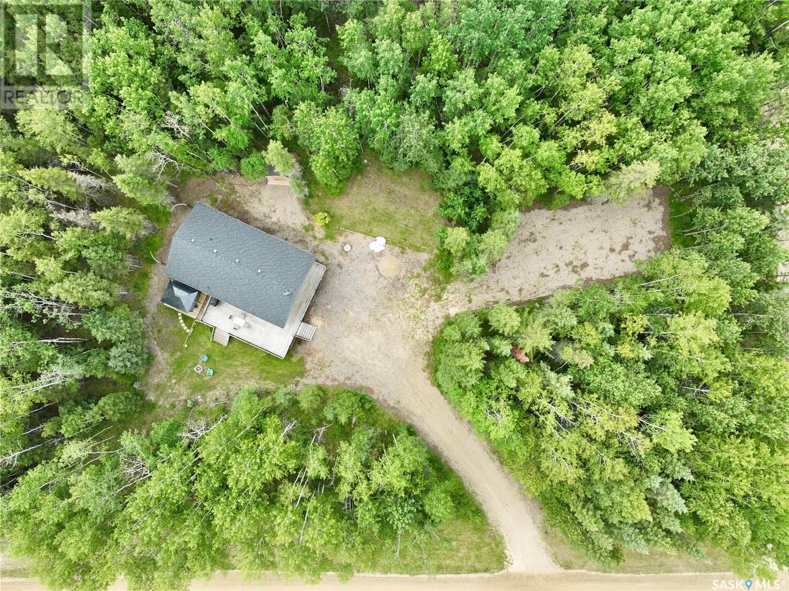 Escape to Aspen Estates and discover this Warman RTM gem! With 1,040 sqft of smartly designed living space, this 3-bedroom, 1-bathroom home features vaulted ceilings, abundant natural light, convenient laundry, and plenty of storage throughout. Nestled on a sprawling 1.24-acre lot surrounded by trees and tranquility, this home offers the perfect blend of comfort and nature. Step outside onto the massive wraparound deck—ideal for morning coffee or evening BBQs. Enjoy the private gazebo, cozy firepit area, and peaceful views under the open sky. Additional perks include your own private well (unlimited water!), a septic mound, and a cleared space ready for a garage or RV parking. High and dry, low-maintenance, and move-in ready—this property checks all the boxes. Aspen Estates is a welcoming, peaceful community where you can truly unwind. This could be #yourhappyplace (id:43042)