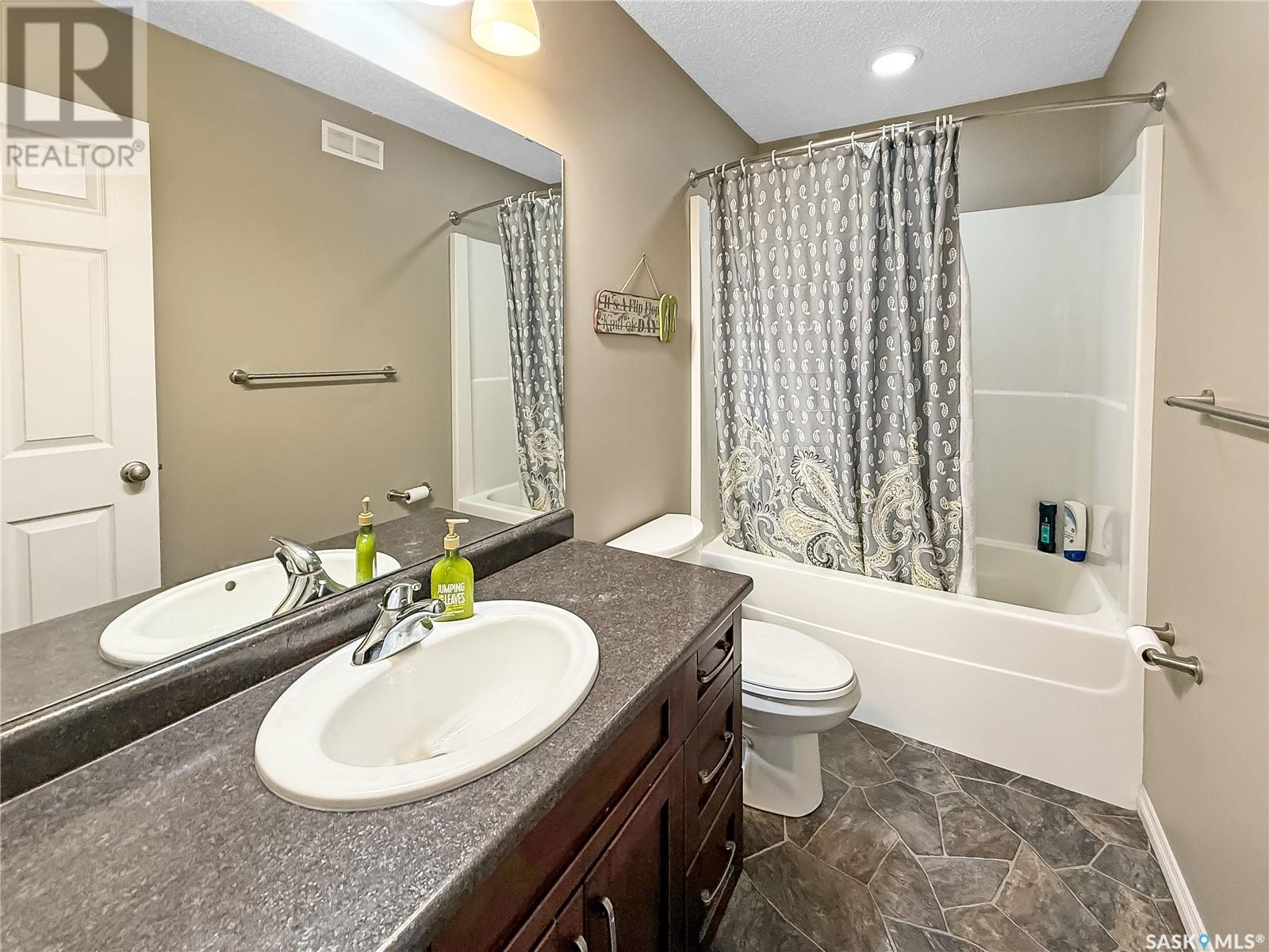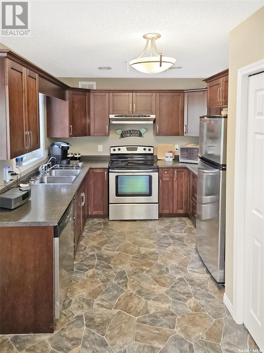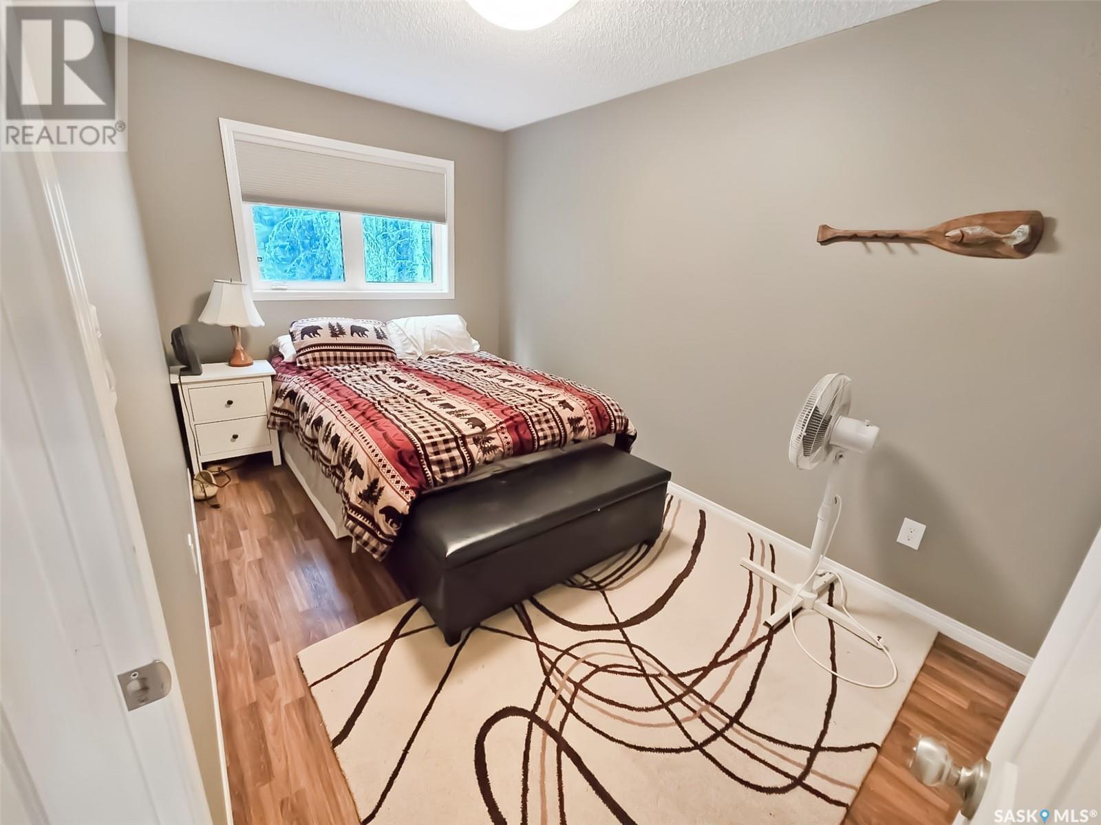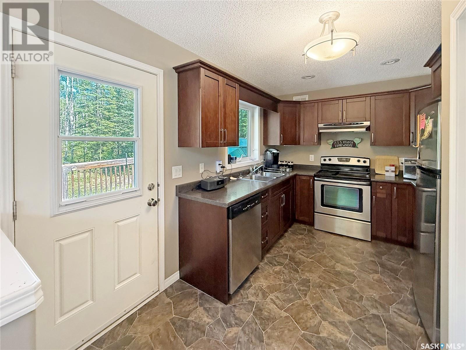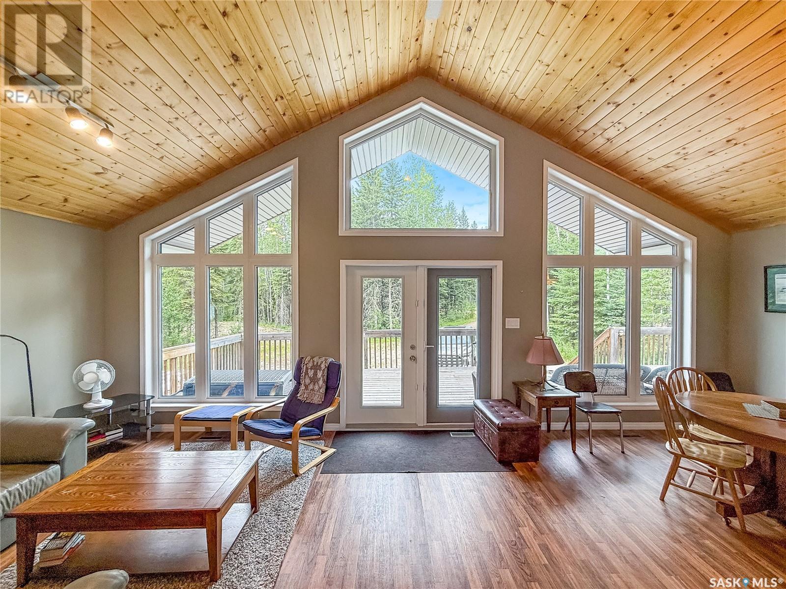 Escape to Aspen Estates and discover this Warman RTM gem! With 1,040 sqft of smartly designed living space, this 3-bedroom, 1-bathroom home features vaulted ceilings, abundant natural light, convenient laundry, and plenty of storage throughout. Nestled on a sprawling 1.24-acre lot surrounded by trees and tranquility, this home offers the perfect blend of comfort and nature. Step outside onto the massive wraparound deck—ideal for morning coffee or evening BBQs. Enjoy the private gazebo, cozy firepit area, and peaceful views under the open sky. Additional perks include your own private well (unlimited water!), a septic mound, and a cleared space ready for a garage or RV parking. High and dry, low-maintenance, and move-in ready—this property checks all the boxes. Aspen Estates is a welcoming, peaceful community where you can truly unwind. This could be #yourhappyplace (id:43042)