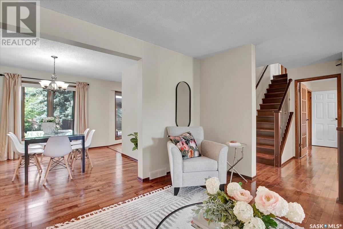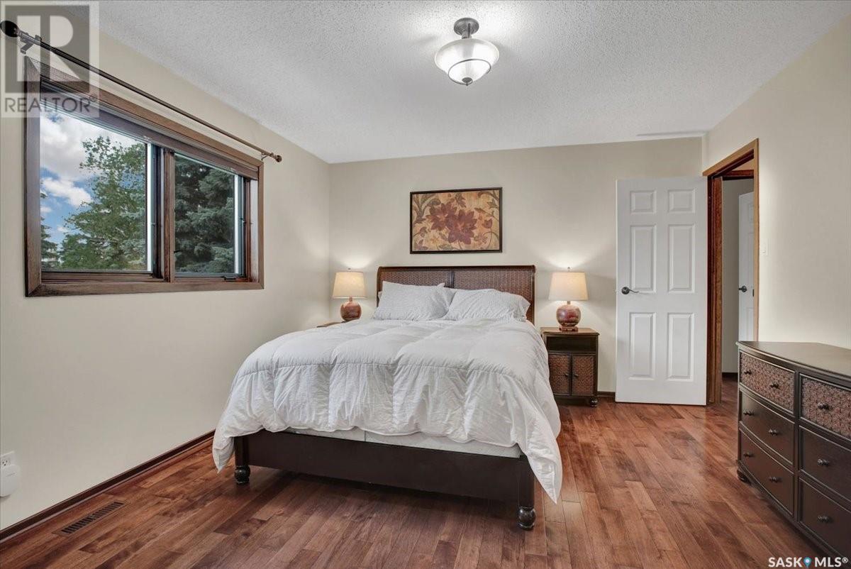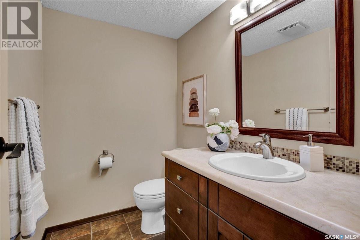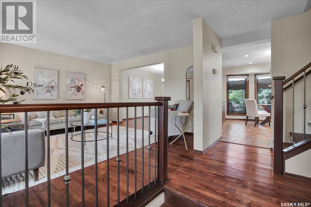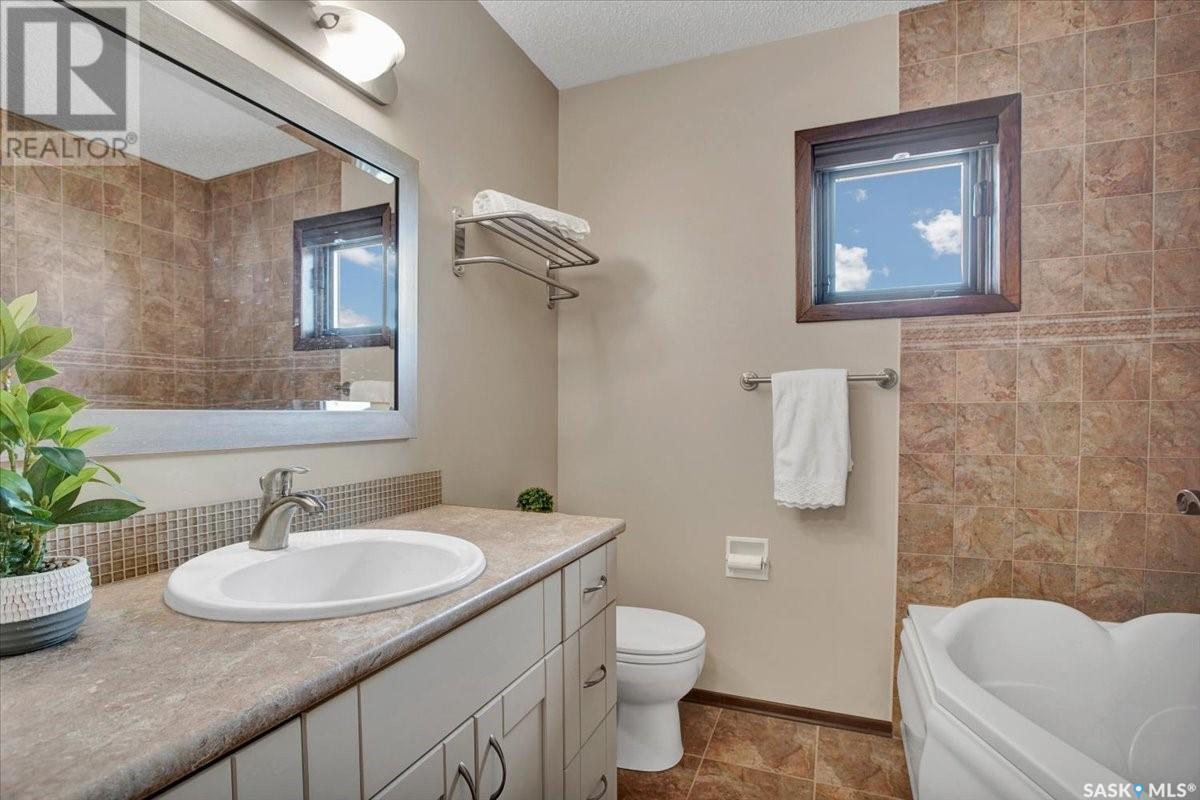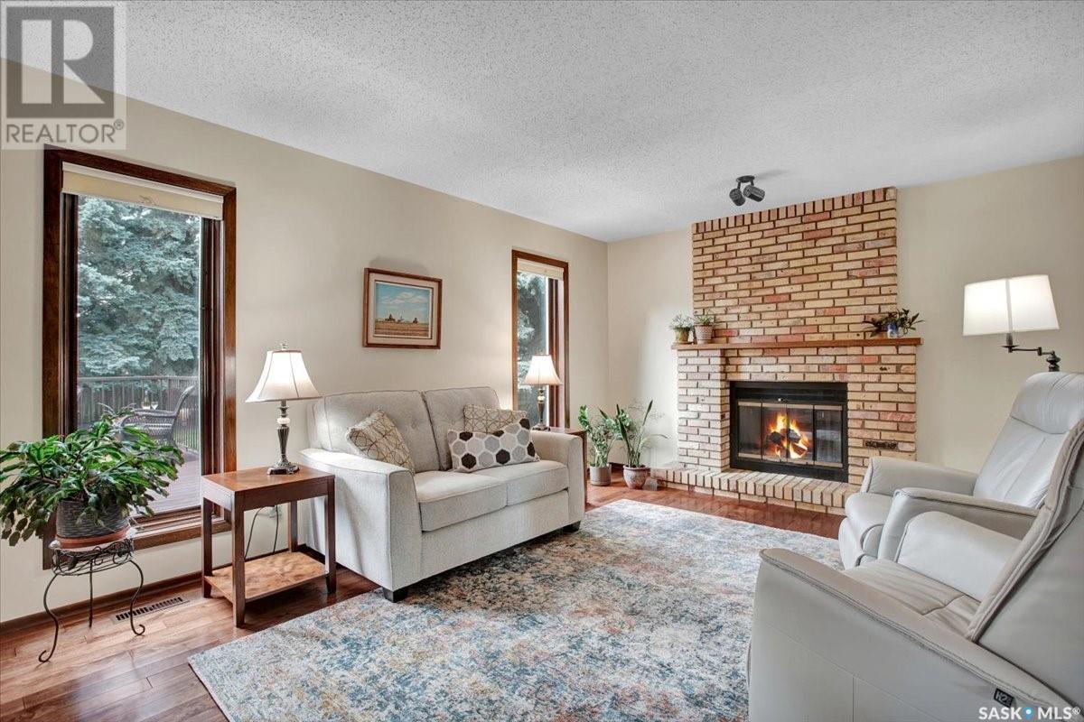 This well-maintained two-storey family home in desirable Lakeview offers over 2,000 sq. ft. of thoughtfully designed living space with 5 bedrooms and 4 bathrooms. The main floor features a bright living room that flows into the formal dining area, while the spacious kitchen includes a sunny eating nook and opens to the cozy family room with a wood-burning fireplace. A private office, convenient half bath, and a generous laundry room with direct access to the attached garage complete the main level. Upstairs, the primary bedroom includes a walk-in closet and a three-piece ensuite, while three additional bedrooms share a second three-piece bathroom. The fully developed basement offers a large family room, a games room, a half bath, and expansive storage and utility areas—ideal for growing families. Pride of ownership is evident from the original owner, with numerous updates enhancing comfort and efficiency. Beautiful maple hardwood and tile flooring span the main and upper levels, with in-floor heating under all tiled areas. Major upgrades include triple-glazed wood windows and refinished mahogany trim (2018), a composite 26' x 20' deck with railing (2020), new shingles with full waterproof underlayment (2023), a tankless water heater with recirculation pump (2017), a high-efficiency furnace and A/C (2018), and a new water softener and reverse osmosis system (2023). The property backs directly onto the scenic Lakeview Park pathway, offering easy access to both St. Bernard School and École Lakeview School—making it a perfect setting for family living. Also close to playgrounds, a lake, tennis courts, parks, and walking trails, this home offers the perfect blend of comfort and convenience. You’re also just minutes away from downtown, the river, the University of Saskatchewan, Royal University Hospital, and Jim Pattison Children's Hospital. Don't miss the opportunity to ma... As per the Seller’s direction, all offers will be presented on 2025-07-16 at 5:30 PM (id:43042)
