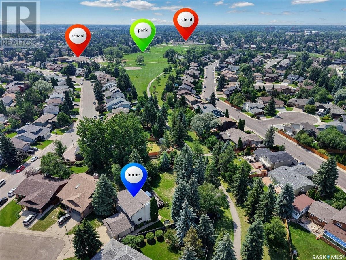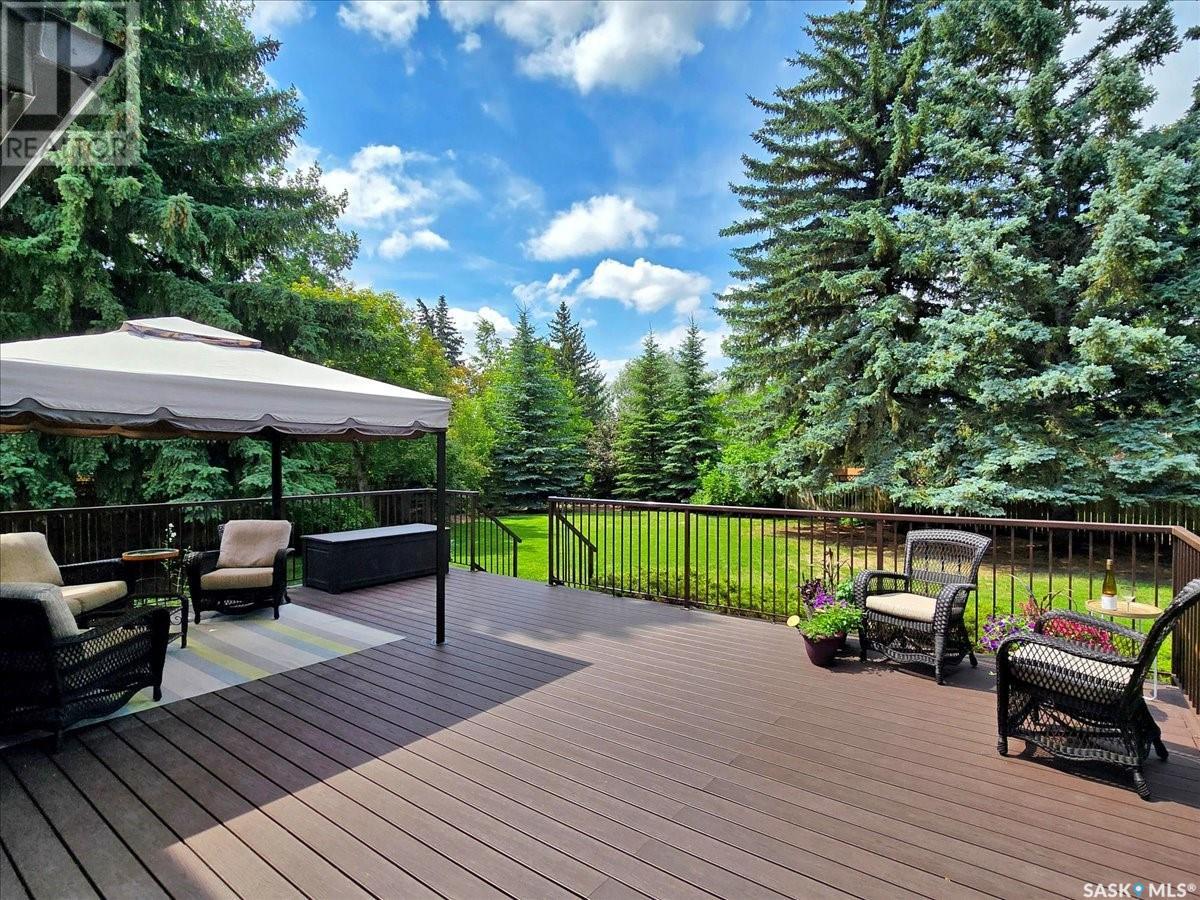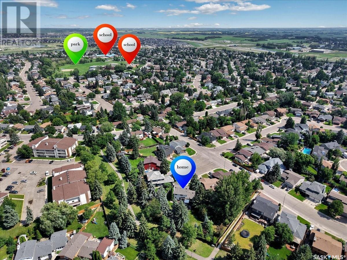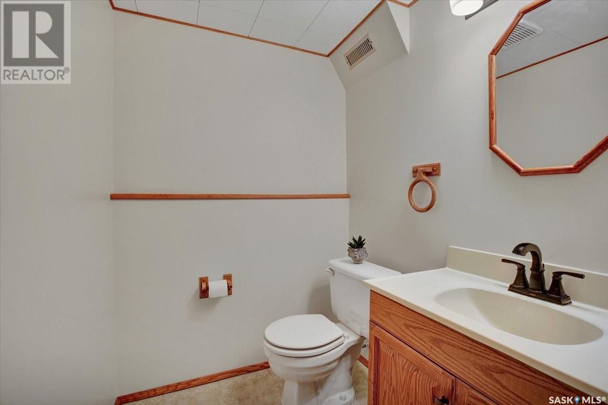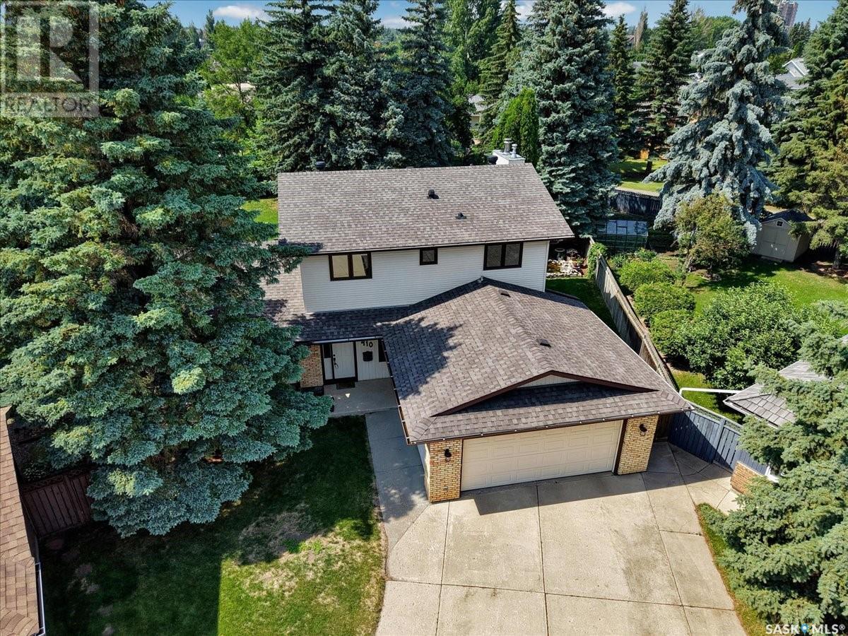 This well-maintained two-storey family home in desirable Lakeview offers over 2,000 sq. ft. of thoughtfully designed living space with 5 bedrooms and 4 bathrooms. The main floor features a bright living room that flows into the formal dining area, while the spacious kitchen includes a sunny eating nook and opens to the cozy family room with a wood-burning fireplace. A private office, convenient half bath, and a generous laundry room with direct access to the attached garage complete the main level. Upstairs, the primary bedroom includes a walk-in closet and a three-piece ensuite, while three additional bedrooms share a second three-piece bathroom. The fully developed basement offers a large family room, a games room, a half bath, and expansive storage and utility areas—ideal for growing families. Pride of ownership is evident from the original owner, with numerous updates enhancing comfort and efficiency. Beautiful maple hardwood and tile flooring span the main and upper levels, with in-floor heating under all tiled areas. Major upgrades include triple-glazed wood windows and refinished mahogany trim (2018), a composite 26' x 20' deck with railing (2020), new shingles with full waterproof underlayment (2023), a tankless water heater with recirculation pump (2017), a high-efficiency furnace and A/C (2018), and a new water softener and reverse osmosis system (2023). The property backs directly onto the scenic Lakeview Park pathway, offering easy access to both St. Bernard School and École Lakeview School—making it a perfect setting for family living. Also close to playgrounds, a lake, tennis courts, parks, and walking trails, this home offers the perfect blend of comfort and convenience. You’re also just minutes away from downtown, the river, the University of Saskatchewan, Royal University Hospital, and Jim Pattison Children's Hospital. Don't miss the opportunity to ma... As per the Seller’s direction, all offers will be presented on 2025-07-16 at 5:30 PM (id:43042)