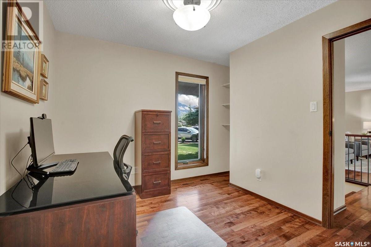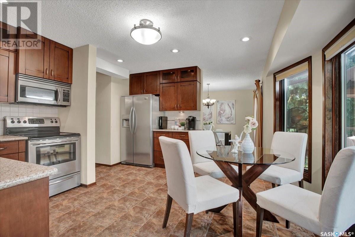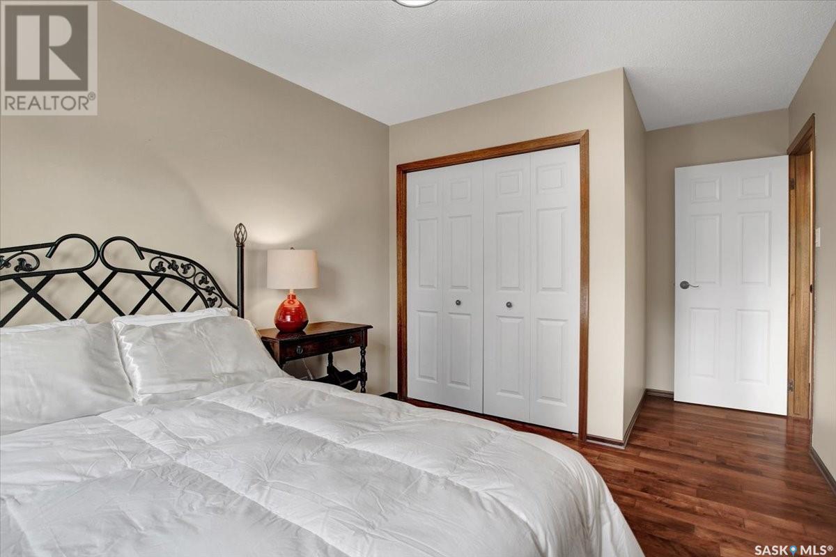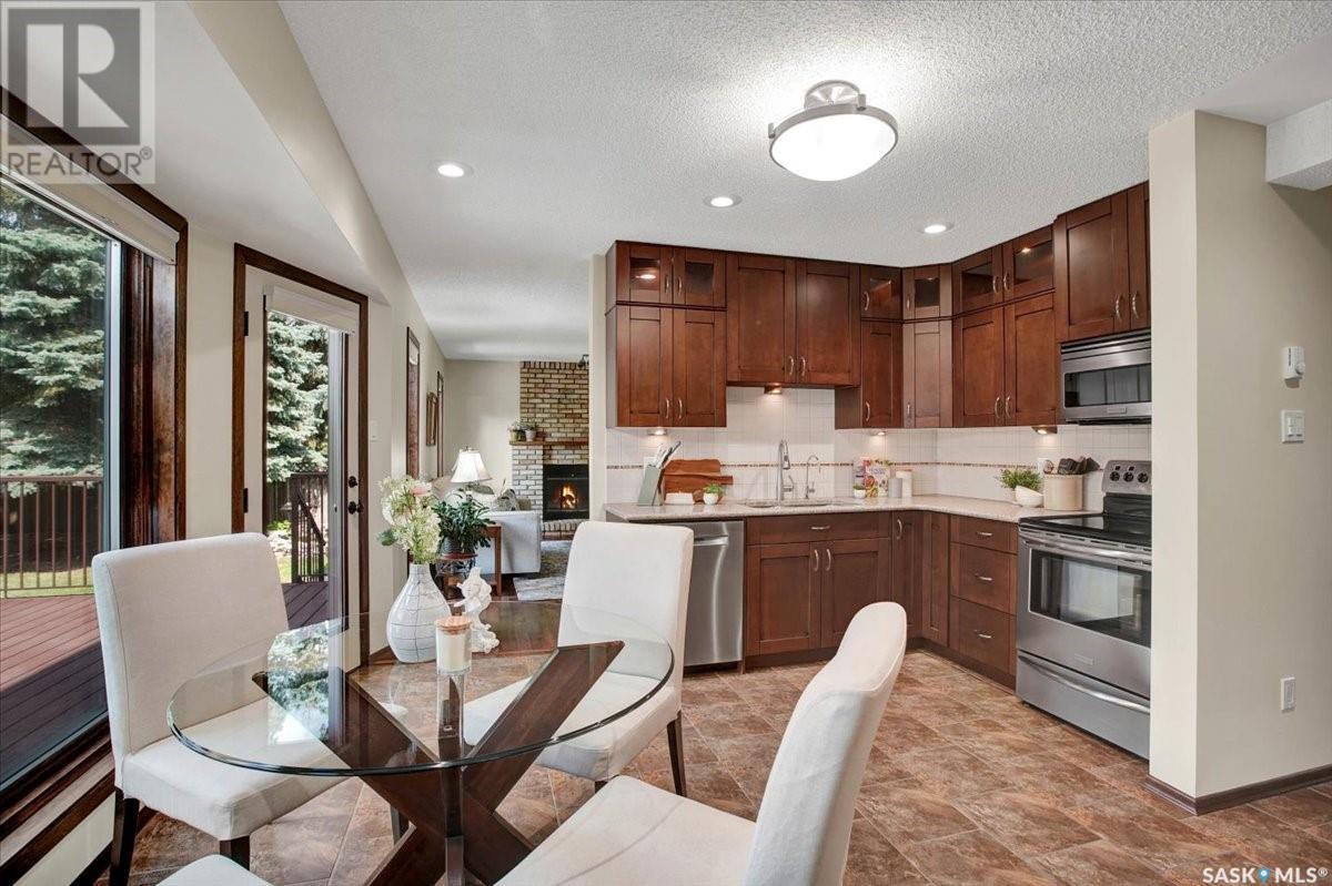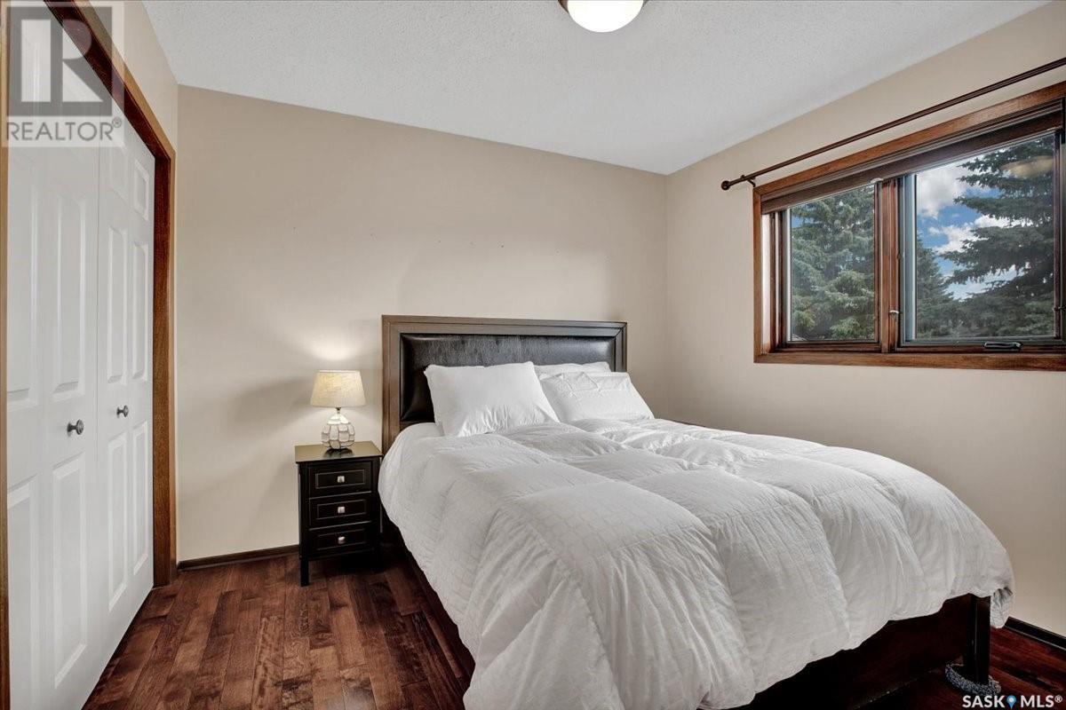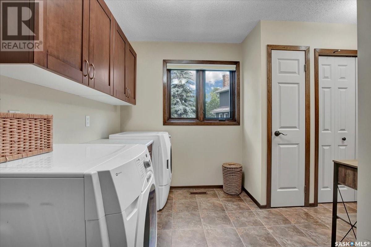 This well-maintained two-storey family home in desirable Lakeview offers over 2,000 sq. ft. of thoughtfully designed living space with 5 bedrooms and 4 bathrooms. The main floor features a bright living room that flows into the formal dining area, while the spacious kitchen includes a sunny eating nook and opens to the cozy family room with a wood-burning fireplace. A private office, convenient half bath, and a generous laundry room with direct access to the attached garage complete the main level. Upstairs, the primary bedroom includes a walk-in closet and a three-piece ensuite, while three additional bedrooms share a second three-piece bathroom. The fully developed basement offers a large family room, a games room, a half bath, and expansive storage and utility areas—ideal for growing families. Pride of ownership is evident from the original owner, with numerous updates enhancing comfort and efficiency. Beautiful maple hardwood and tile flooring span the main and upper levels, with in-floor heating under all tiled areas. Major upgrades include triple-glazed wood windows and refinished mahogany trim (2018), a composite 26' x 20' deck with railing (2020), new shingles with full waterproof underlayment (2023), a tankless water heater with recirculation pump (2017), a high-efficiency furnace and A/C (2018), and a new water softener and reverse osmosis system (2023). The property backs directly onto the scenic Lakeview Park pathway, offering easy access to both St. Bernard School and École Lakeview School—making it a perfect setting for family living. Also close to playgrounds, a lake, tennis courts, parks, and walking trails, this home offers the perfect blend of comfort and convenience. You’re also just minutes away from downtown, the river, the University of Saskatchewan, Royal University Hospital, and Jim Pattison Children's Hospital. Don't miss the opportunity to ma... As per the Seller’s direction, all offers will be presented on 2025-07-16 at 5:30 PM (id:43042)