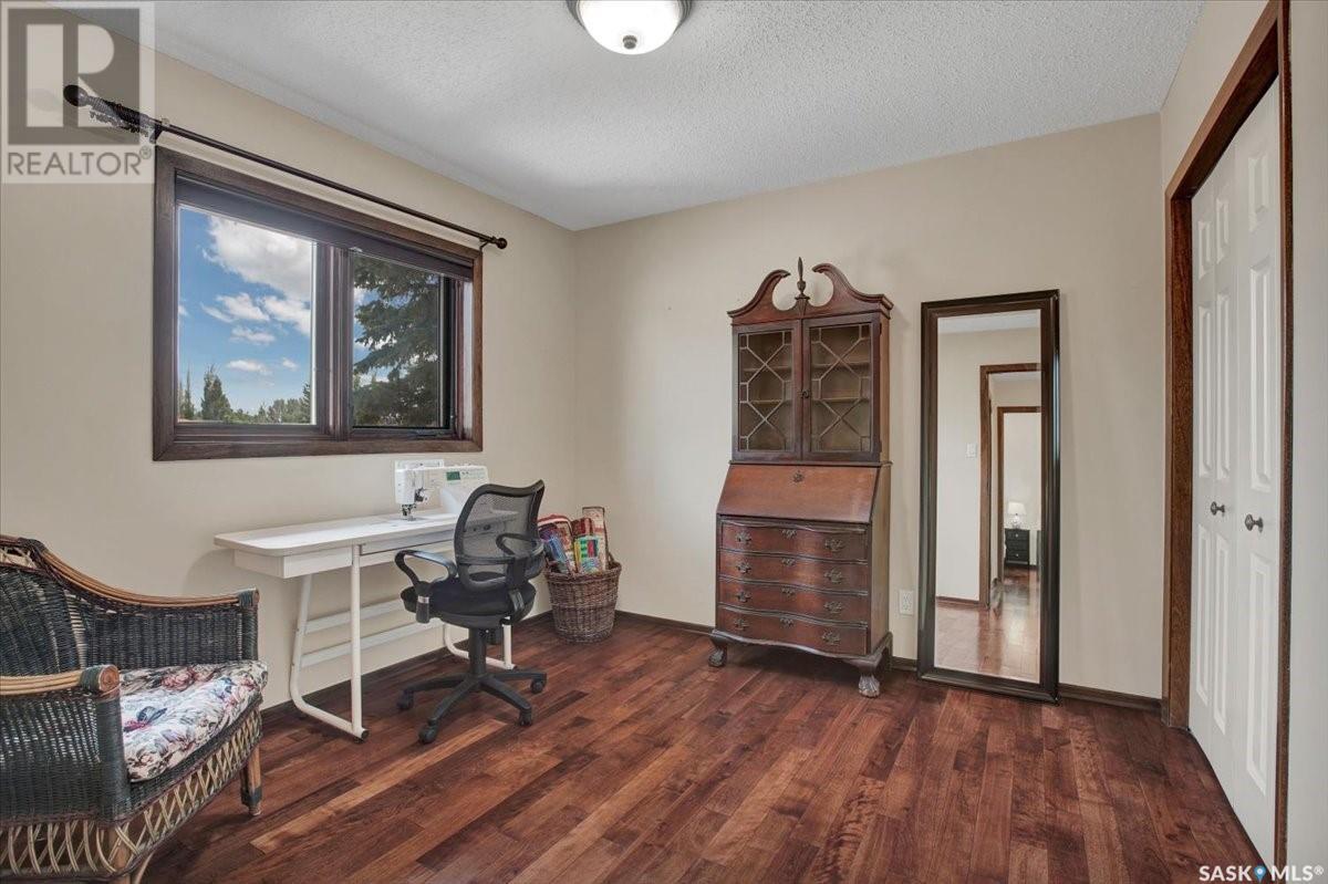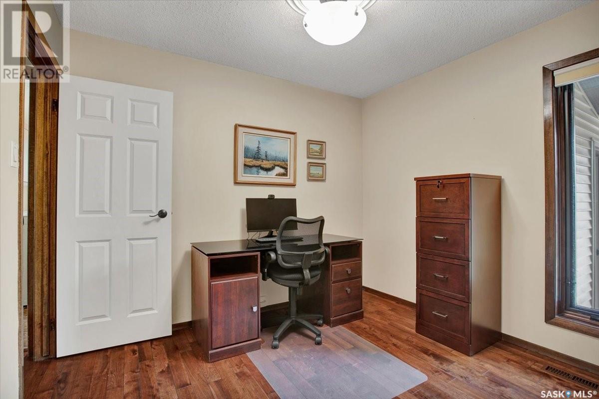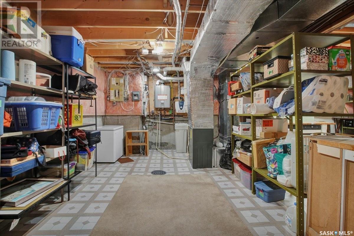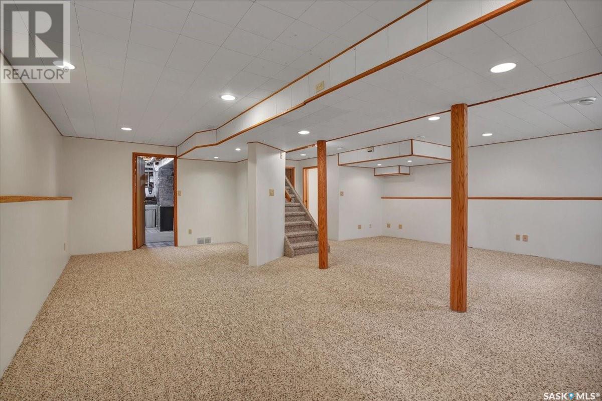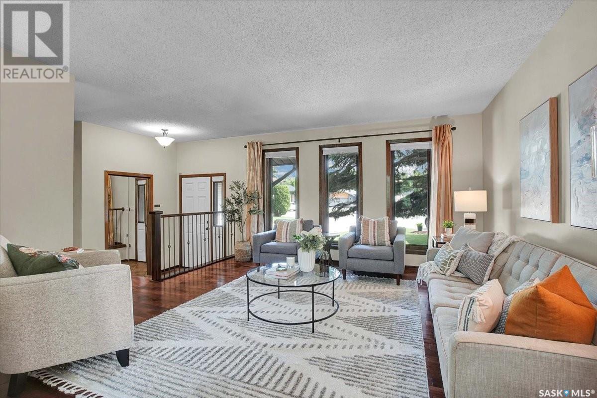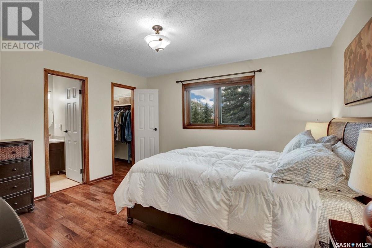 This well-maintained two-storey family home in desirable Lakeview offers over 2,000 sq. ft. of thoughtfully designed living space with 5 bedrooms and 4 bathrooms. The main floor features a bright living room that flows into the formal dining area, while the spacious kitchen includes a sunny eating nook and opens to the cozy family room with a wood-burning fireplace. A private office, convenient half bath, and a generous laundry room with direct access to the attached garage complete the main level. Upstairs, the primary bedroom includes a walk-in closet and a three-piece ensuite, while three additional bedrooms share a second three-piece bathroom. The fully developed basement offers a large family room, a games room, a half bath, and expansive storage and utility areas—ideal for growing families. Pride of ownership is evident from the original owner, with numerous updates enhancing comfort and efficiency. Beautiful maple hardwood and tile flooring span the main and upper levels, with in-floor heating under all tiled areas. Major upgrades include triple-glazed wood windows and refinished mahogany trim (2018), a composite 26' x 20' deck with railing (2020), new shingles with full waterproof underlayment (2023), a tankless water heater with recirculation pump (2017), a high-efficiency furnace and A/C (2018), and a new water softener and reverse osmosis system (2023). The property backs directly onto the scenic Lakeview Park pathway, offering easy access to both St. Bernard School and École Lakeview School—making it a perfect setting for family living. Also close to playgrounds, a lake, tennis courts, parks, and walking trails, this home offers the perfect blend of comfort and convenience. You’re also just minutes away from downtown, the river, the University of Saskatchewan, Royal University Hospital, and Jim Pattison Children's Hospital. Don't miss the opportunity to ma... As per the Seller’s direction, all offers will be presented on 2025-07-16 at 5:30 PM (id:43042)