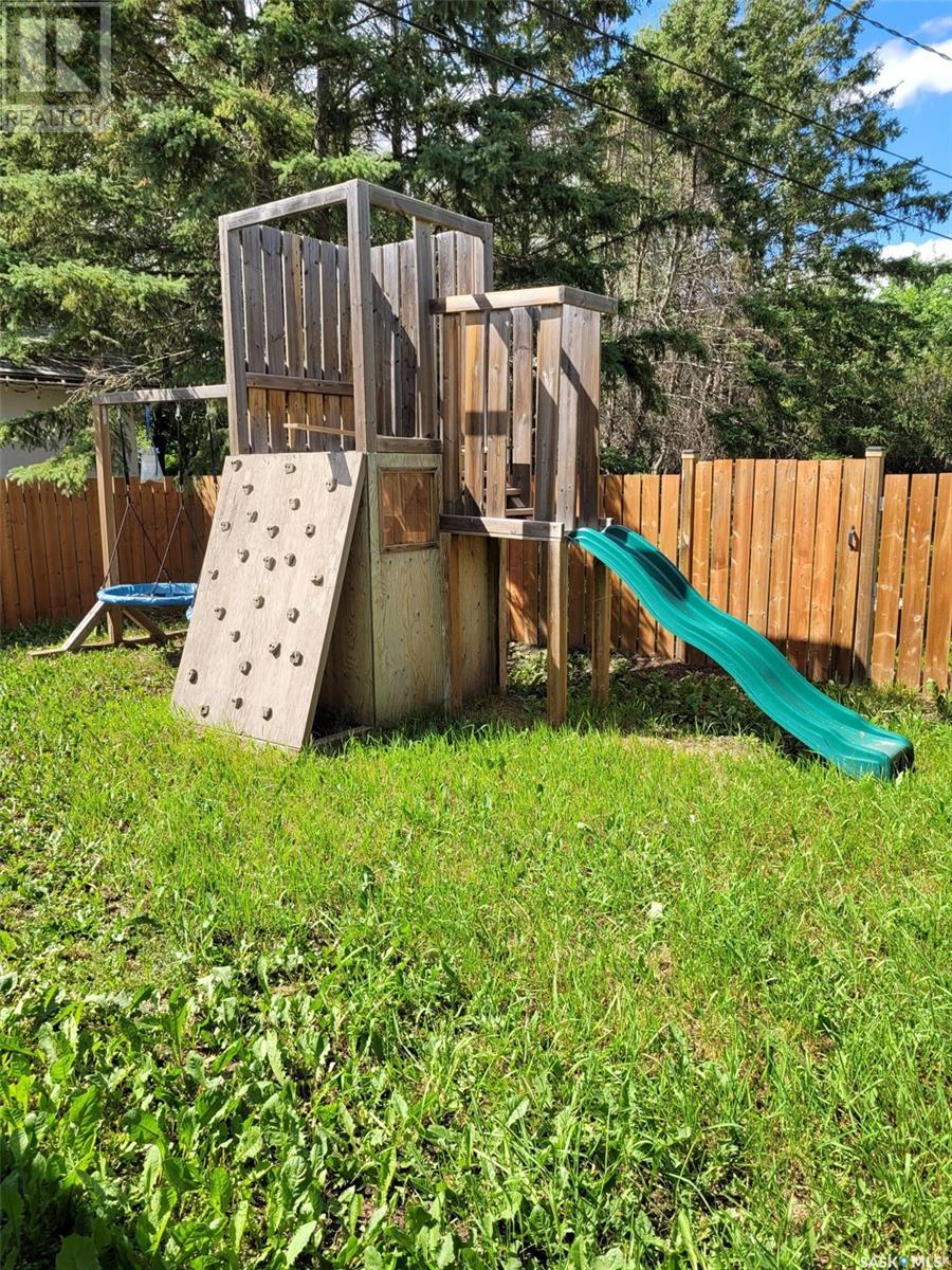 The perfect Starter Home and Investment Opportunity on a LARGE lot with future growth potential. Only 1 hour from Saskatoon and minutes away from Wakaw Regional Park Beach. The best of city and recreational living for an affordable price. Features: Newer kitchen cabinets, Central Air Conditioning, 2 bedrooms plus small Den/Study/Bedroom, 4 piece Bath, Soft Water Conditioner, Firepit and fenced play area with PlayStation. All furniture & contents negotiable. This 780-sf cozy family bungalow on a Large Corner Lot with a full basement has a private fenced play area nestled inside nearly a third of an acre filled with mature trees and grass in a Park Like Setting. Enjoy urban living in an Acreage setting and waiting for your creative additions. Future development might include; a subdivision, a new build, expansion ………… (id:43042)
