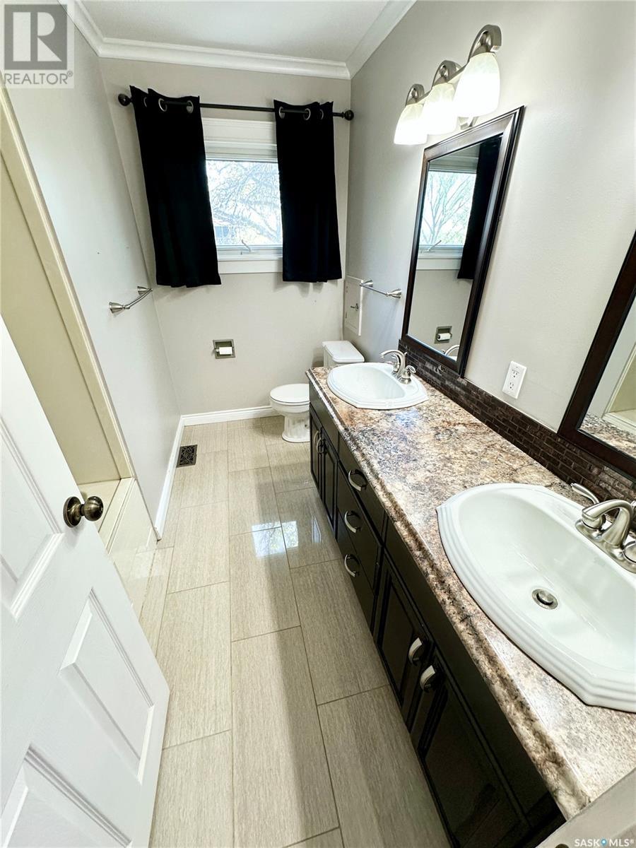 Welcome to 416 3rd Avenue NW, a rare opportunity to own a mid-century modern gem in one of Weyburn’s most desirable locations. Nestled on a picturesque, tree-lined street, this 1736 sq ft two-story home showcases timeless architecture, character, and incredible potential. Step inside to a bright and inviting front living room, where soaring vaulted ceilings, expansive windows, and a cozy gas fireplace create a perfect space for relaxing or entertaining. Hardwood flooring flows seamlessly throughout the main level, adding warmth and style to the home. Upstairs, you'll find four bedrooms, providing ample space for family living, guest rooms, or home office setups. The second floor also offers a functional 5-piece main bathroom and a convenient ensuite in the primary bedroom. The fully developed basement extends your living space and features a charming wood-burning fireplace, creating a rustic and atmospheric setting ideal for movie nights or quiet evenings in. Outside, the large, partially fenced backyard is designed for outdoor enjoyment, complete with an expansive concrete patio perfect for gatherings or summer barbecues. The yard offers privacy and a peaceful, park-like feel. Located within walking distance to schools, parks, and a full track facility, this home delivers an unbeatable blend of lifestyle, location, and future potential. Whether you're looking to move in and make it your own or take advantage of its untapped possibilities, this property is full of opportunity. (id:43042)