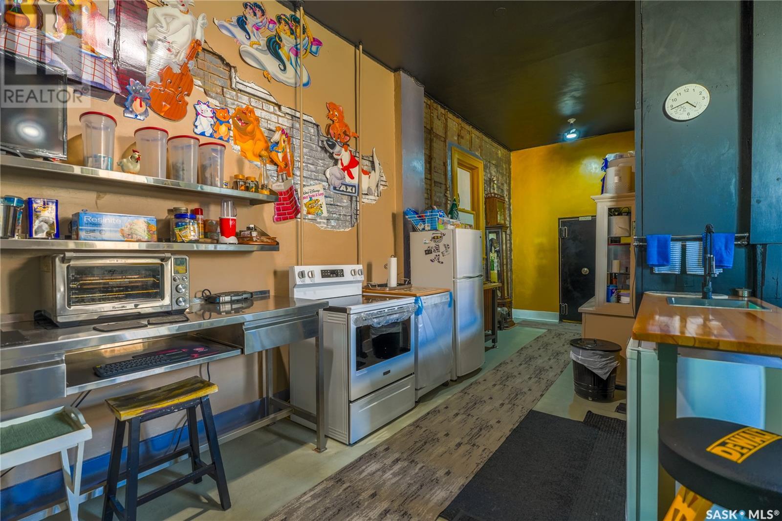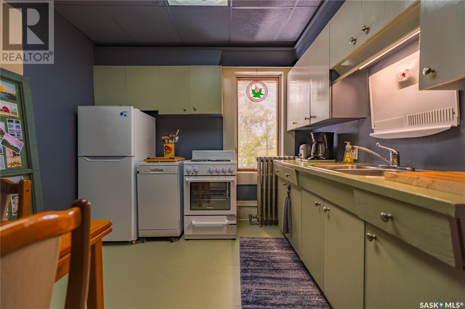 Ever thought of running your own business in a tight-knit community? Here’s your chance! 418 Main Street in the heart of Gravelbourg offers you 1125 sqft of commercial space to be used for your dream coffee shop, clothing boutique, salon, or whatever else you can dream of! Take advantage of the tall ceilings and natural light this historic building has to offer. Built in 1924, this corner lot has seen a number of uses in its 100 year history. While the building has seen updates over the years, the character still remains though the many unique radiators connected to the newer boiler system. From a bank, to switch board, to a hair salon, these walls have seen it all. Currently being used entirely as living space, the commercial zoned main floor offers you a large space for your creative needs. A kitchen (newly installed plug for range), a large laundry room, and a two piece bathroom complete the floor. Upstairs is zoned residential and can be used as bonus income, or for your own living. It features two bedrooms, kitchen, full bathroom, and a large living room with a great nook for a home office. It’s time to start your dream business in a fantastic community! Book your own tour today! (id:43042)