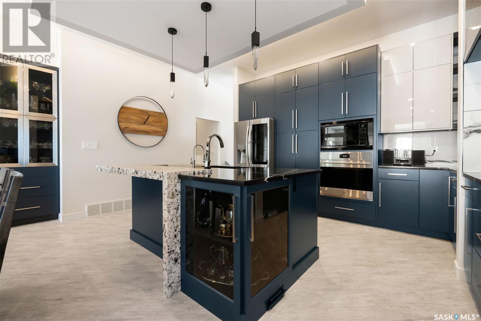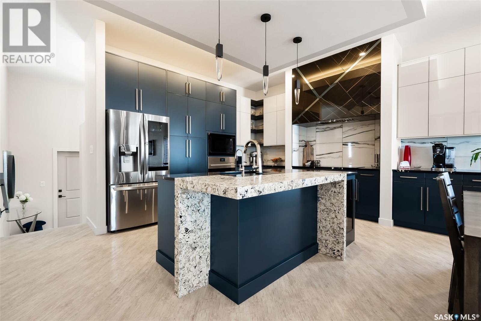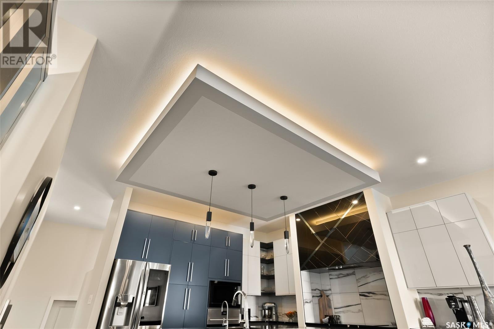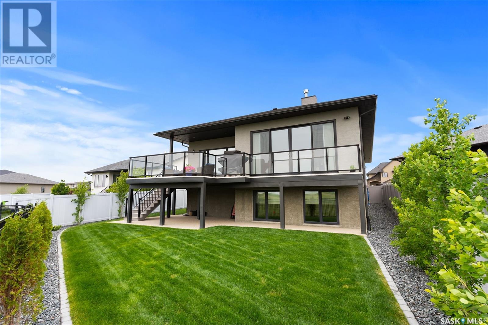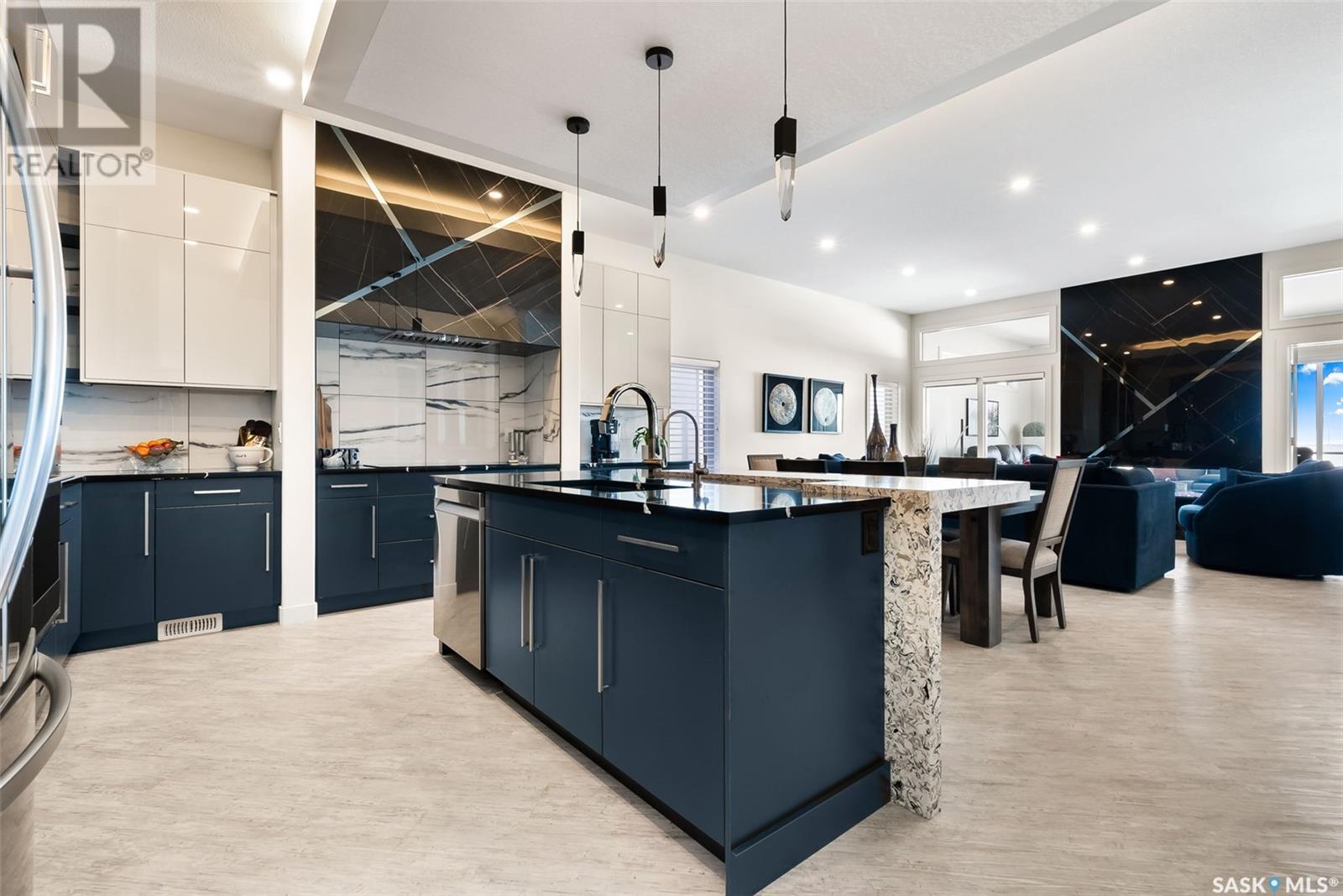 Welcome home to 4244 Sage Place perfectly positioned on a 7,798sqft lot backing the environmental reserve in our Creeks neighbourhood in Regina, SK. This extraordinary 5 bedroom & 3 bathroom award winning home was custom built in 2020 (occupied in 2022) by the original owners with one of our premier builders Gilroy Homes. The captivating curb appeal with a 9ft door opening into a foyer leading to an open concept main w/ 10’ ceilings throughout with oodles of custom touches – Hunter Douglas Blinds, accent ceiling design & niche cabinets with lighting to the upgraded tile/vinyl/carpet flooring & lighting throughout. The kitchen features two tone soft close cabinets (w/pull outs), undermount lighting, composite sink, & thick cut quartz waterfall island, accented w/tiled hood fan,+top tier appliances (Wolf Stove). Flowing seamlessly into the dining room that can comfortably host 12+ ppl for holiday gatherings hugs the living room w/a majestic gas FP, doors with custom etching of Prairie wheat frame Prairie views. The bonus room gives access to the deck thru dual sliding doors. The primary bedroom (greenspace views) encompasses a wing of the home w/ the spa like ensuite w/ in-floor heating, stand in + walk thru tiled shower, private water closet, freestanding soaker tub, adjacent to the enormous walk-in-closet (soft close custom closet). Completing the main floor are a comfortable laundry room w/built in cabinetry, 3PCE bathroom, & bedroom (closet & built-in cabinetry) currently an office. The recreation space delivers with wall lighting, to in floor heat, to built-in shelving for books/decor & wet bar area w/dual fridges. Maximizing space, 3 additional bedrooms & 3PCE bathroom, linen storage, finished utility room & storage space. The triple garage w/10FT ceilings+8FT doors, pull thru to yard, GarageLiving system w/ in-floor heating. More: 4 Zone Heating Control, Steel beam/On Piles, Landscaped, Fenced. Truly a magnificent family home that could be your home sweet home! (id:43042)