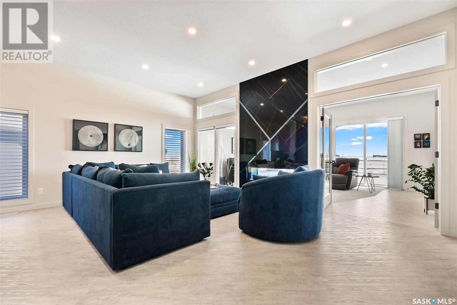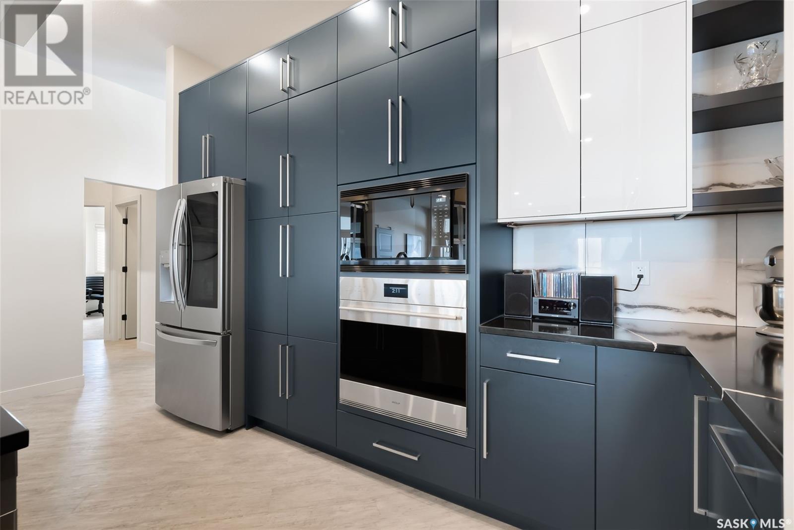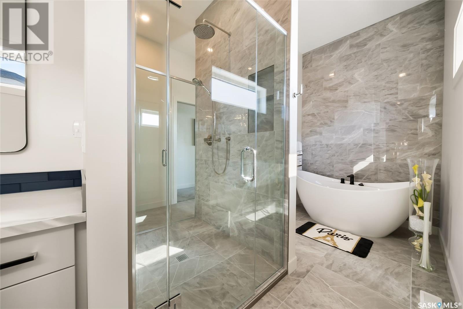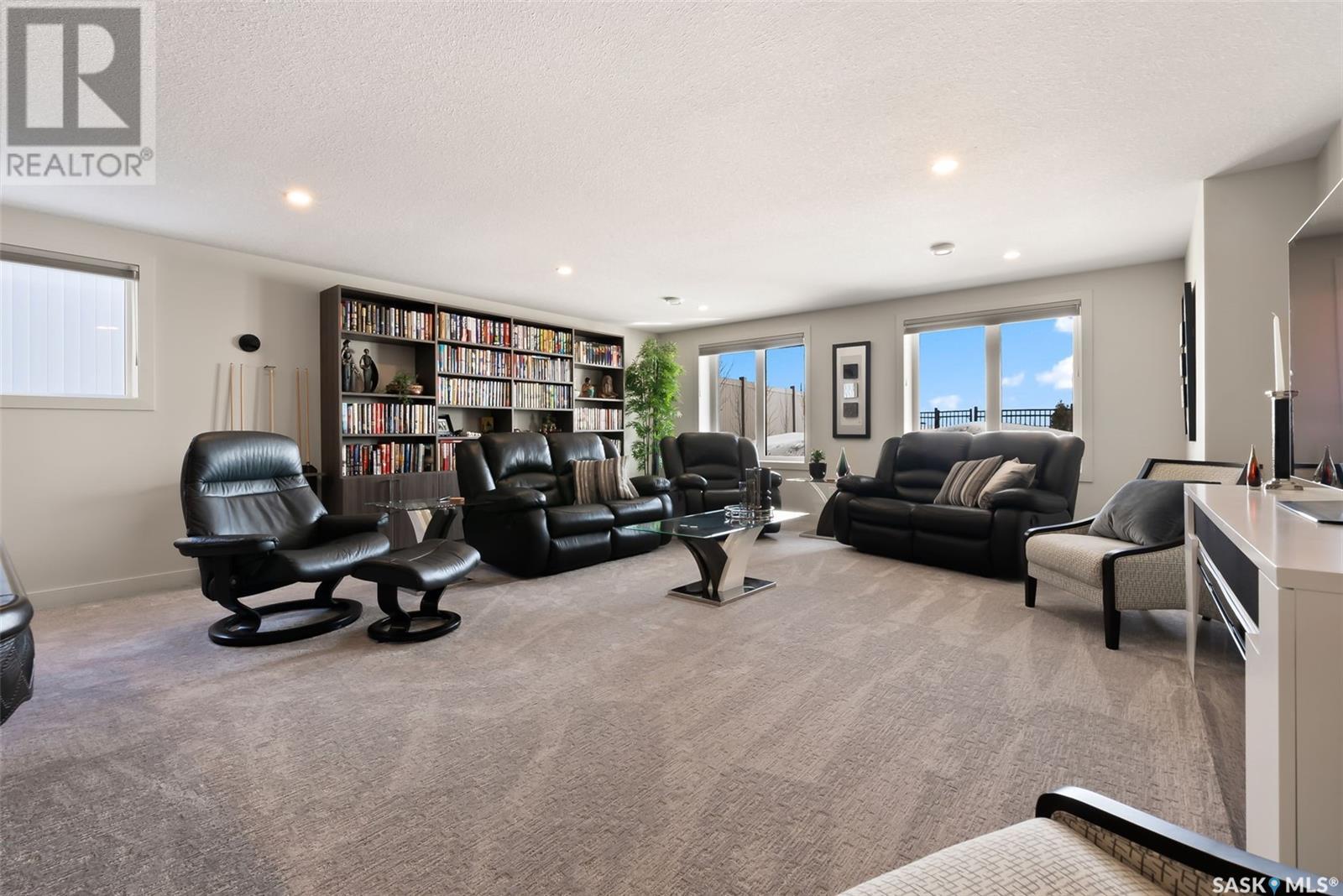 Welcome home to 4244 Sage Place perfectly positioned on a 7,798sqft lot backing the environmental reserve in our Creeks neighbourhood in Regina, SK. This extraordinary 5 bedroom & 3 bathroom award winning home was custom built in 2020 (occupied in 2022) by the original owners with one of our premier builders Gilroy Homes. The captivating curb appeal with a 9ft door opening into a foyer leading to an open concept main w/ 10’ ceilings throughout with oodles of custom touches – Hunter Douglas Blinds, accent ceiling design & niche cabinets with lighting to the upgraded tile/vinyl/carpet flooring & lighting throughout. The kitchen features two tone soft close cabinets (w/pull outs), undermount lighting, composite sink, & thick cut quartz waterfall island, accented w/tiled hood fan,+top tier appliances (Wolf Stove). Flowing seamlessly into the dining room that can comfortably host 12+ ppl for holiday gatherings hugs the living room w/a majestic gas FP, doors with custom etching of Prairie wheat frame Prairie views. The bonus room gives access to the deck thru dual sliding doors. The primary bedroom (greenspace views) encompasses a wing of the home w/ the spa like ensuite w/ in-floor heating, stand in + walk thru tiled shower, private water closet, freestanding soaker tub, adjacent to the enormous walk-in-closet (soft close custom closet). Completing the main floor are a comfortable laundry room w/built in cabinetry, 3PCE bathroom, & bedroom (closet & built-in cabinetry) currently an office. The recreation space delivers with wall lighting, to in floor heat, to built-in shelving for books/decor & wet bar area w/dual fridges. Maximizing space, 3 additional bedrooms & 3PCE bathroom, linen storage, finished utility room & storage space. The triple garage w/10FT ceilings+8FT doors, pull thru to yard, GarageLiving system w/ in-floor heating. More: 4 Zone Heating Control, Steel beam/On Piles, Landscaped, Fenced. Truly a magnificent family home that could be your home sweet home! (id:43042)