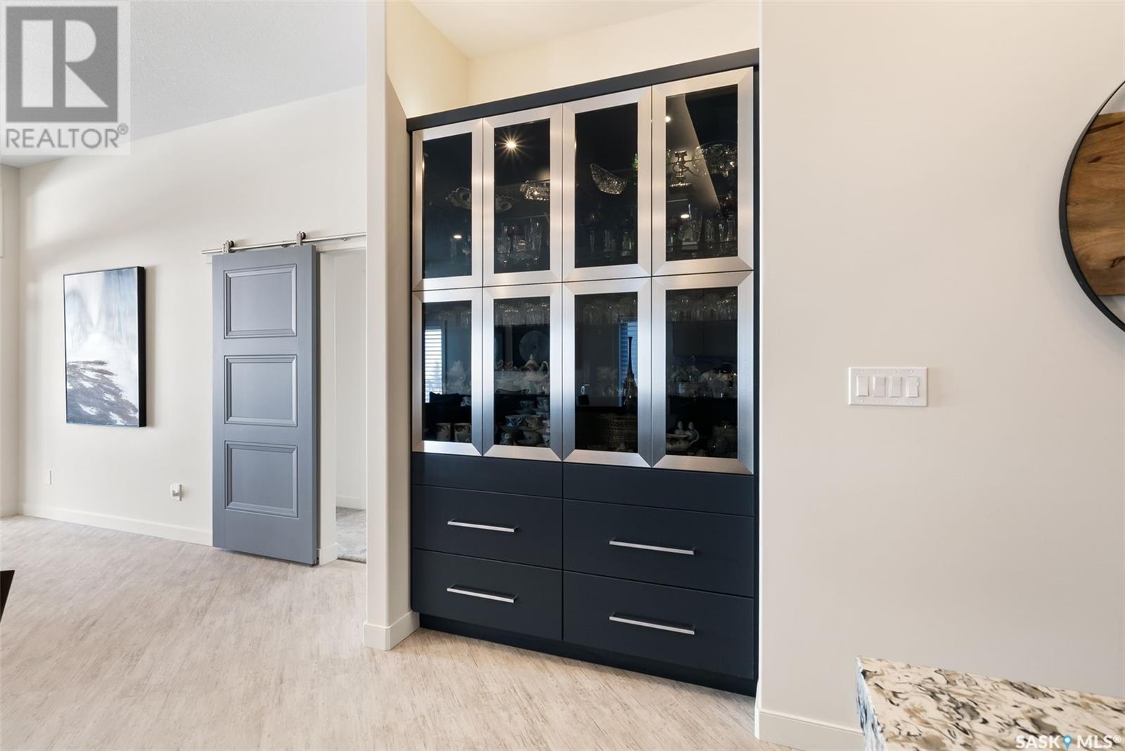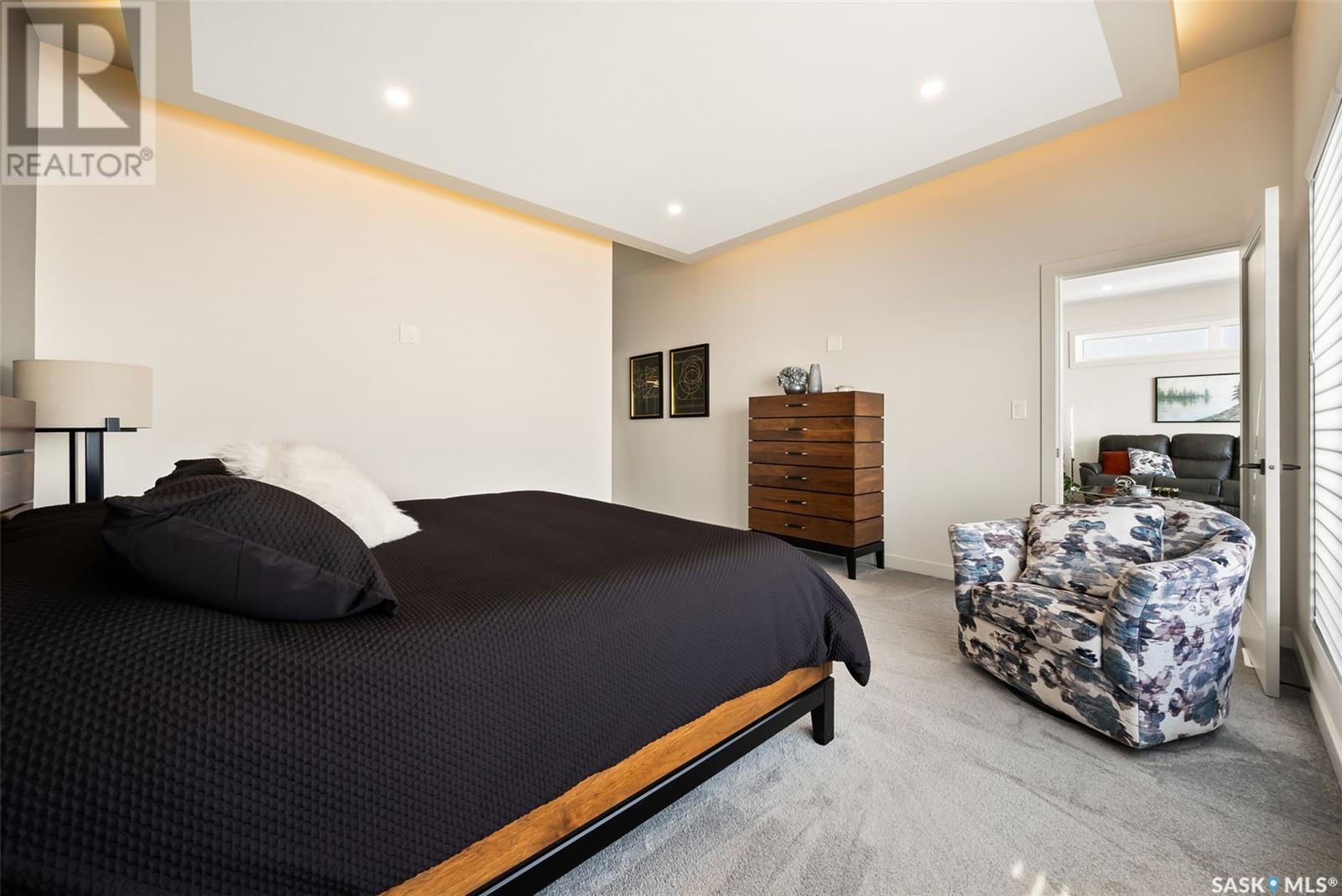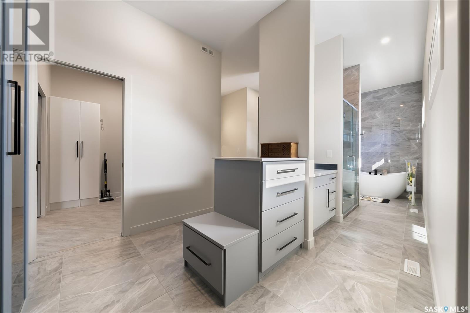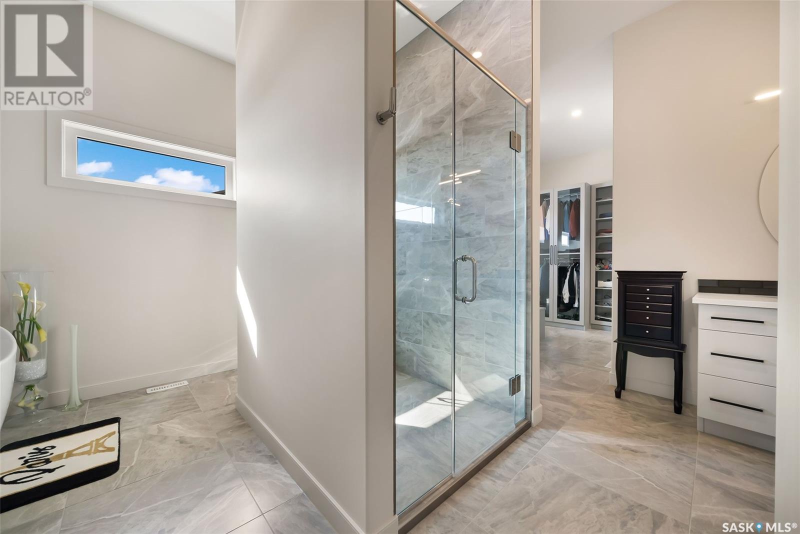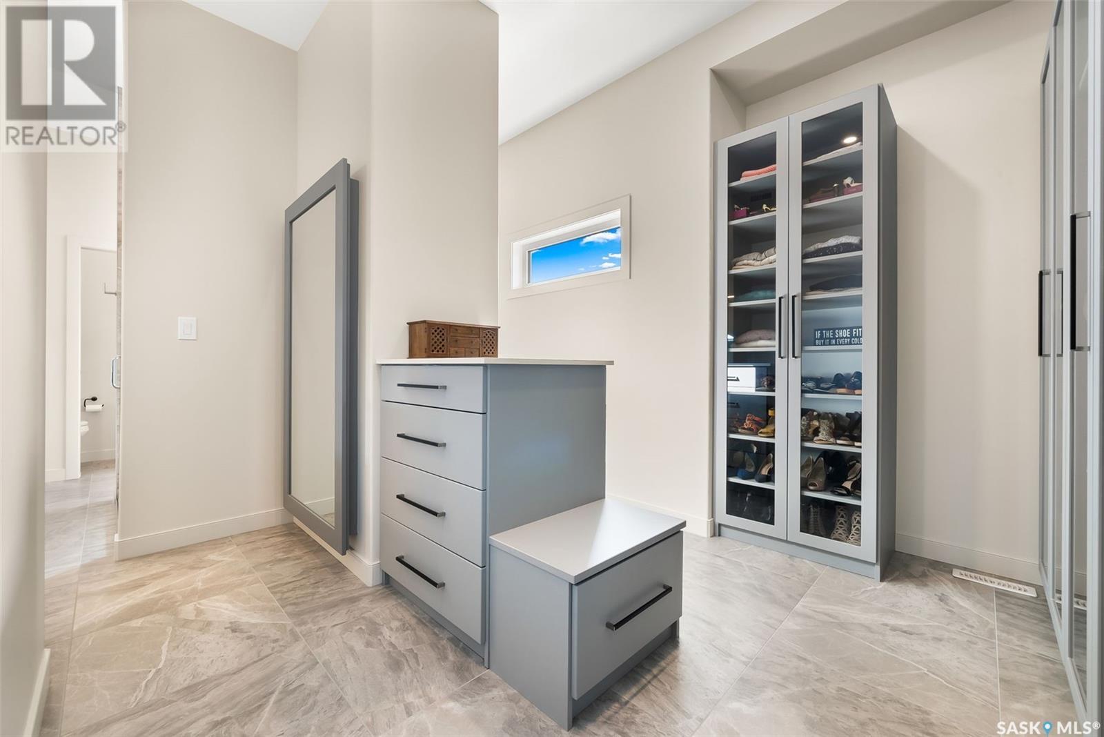 Welcome home to 4244 Sage Place perfectly positioned on a 7,798sqft lot backing the environmental reserve in our Creeks neighbourhood in Regina, SK. This extraordinary 5 bedroom & 3 bathroom award winning home was custom built in 2020 (occupied in 2022) by the original owners with one of our premier builders Gilroy Homes. The captivating curb appeal with a 9ft door opening into a foyer leading to an open concept main w/ 10’ ceilings throughout with oodles of custom touches – Hunter Douglas Blinds, accent ceiling design & niche cabinets with lighting to the upgraded tile/vinyl/carpet flooring & lighting throughout. The kitchen features two tone soft close cabinets (w/pull outs), undermount lighting, composite sink, & thick cut quartz waterfall island, accented w/tiled hood fan,+top tier appliances (Wolf Stove). Flowing seamlessly into the dining room that can comfortably host 12+ ppl for holiday gatherings hugs the living room w/a majestic gas FP, doors with custom etching of Prairie wheat frame Prairie views. The bonus room gives access to the deck thru dual sliding doors. The primary bedroom (greenspace views) encompasses a wing of the home w/ the spa like ensuite w/ in-floor heating, stand in + walk thru tiled shower, private water closet, freestanding soaker tub, adjacent to the enormous walk-in-closet (soft close custom closet). Completing the main floor are a comfortable laundry room w/built in cabinetry, 3PCE bathroom, & bedroom (closet & built-in cabinetry) currently an office. The recreation space delivers with wall lighting, to in floor heat, to built-in shelving for books/decor & wet bar area w/dual fridges. Maximizing space, 3 additional bedrooms & 3PCE bathroom, linen storage, finished utility room & storage space. The triple garage w/10FT ceilings+8FT doors, pull thru to yard, GarageLiving system w/ in-floor heating. More: 4 Zone Heating Control, Steel beam/On Piles, Landscaped, Fenced. Truly a magnificent family home that could be your home sweet home! (id:43042)