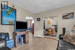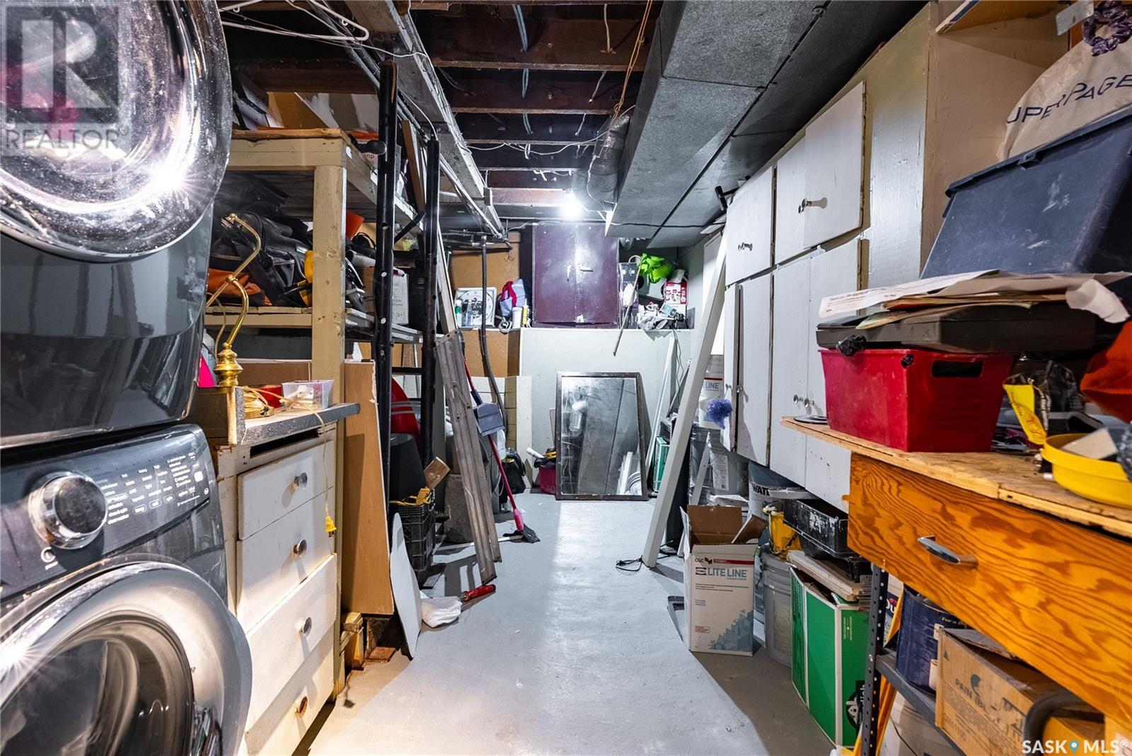 Must see this move in ready home located in Riverdale Neighbourhood of Saskatoon. Walking up to this 2 story home with great curb appeal you have nice Foyer and greeted with living room, nice sized dining area, main floor bedroom and a great sized kitchen for prepping family dinners or snacks for the game. New flooring throughout on main floor very durable linoleum that continues up the stairs. 2nd floor has 3 more bedrooms including a full bath with nice sized soaker tub. Moving to the basement we have full height with added bedroom, lots of storage, a den / office and nice sized family room, newer furnace and water heater. Moving out side you have nice yard space, patio and 1 parking stall. Phone your favourite Realtor® to view this great listing (id:43042)