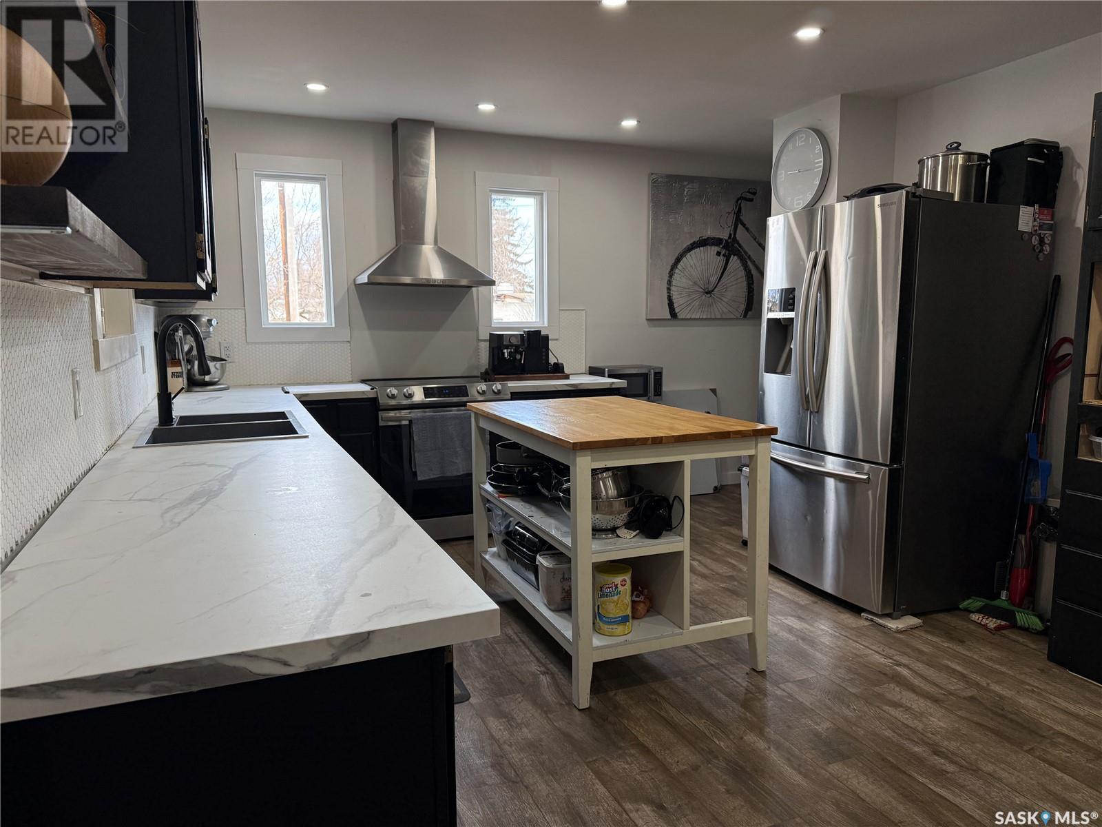 5-Bedroom Home in Craik – Move-In Ready! Welcome to this updated 1,237 sq. ft. family home located in Craik. Featuring 5 bedrooms (3up/2down) and 2 updated bathrooms, this property is perfect for growing families or those needing extra space. Step into a stylish interior with modern colors, vinyl flooring, and updated appliances—all included. Enjoy year-round comfort with an updated high-efficiency furnace and plenty of natural light from the updated double-pane windows. Living room is spacious for those family tv nights or for entertaining. Electric wall fireplace included. The 3-season sunroom and newer back deck provide the perfect spots to relax or entertain. Numerous upgrades completed between 2021-2025 include: framing (upstairs & downstairs), insulation & vapor barrier, double-pane windows, electrical and panel, shingles, HE furnace, 4 egress windows in the basement with window wells, vinyl siding, sod and perennials, 3 season sunroom & back deck, vinyl flooring, drywall & paint, interior doors replaced, 3-piece bathroom added in the basement. This move-in ready home blends comfort, modern updates, and space—all in a peaceful neighborhood. Don’t miss your chance to make it yours! (id:43042)