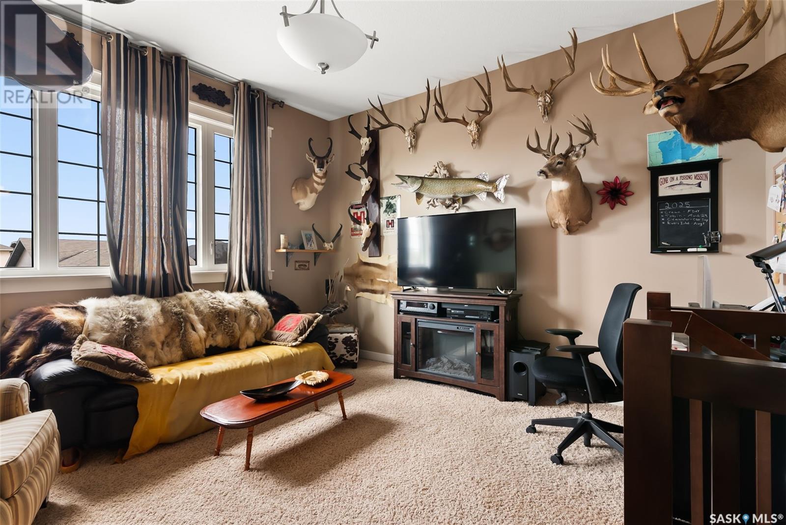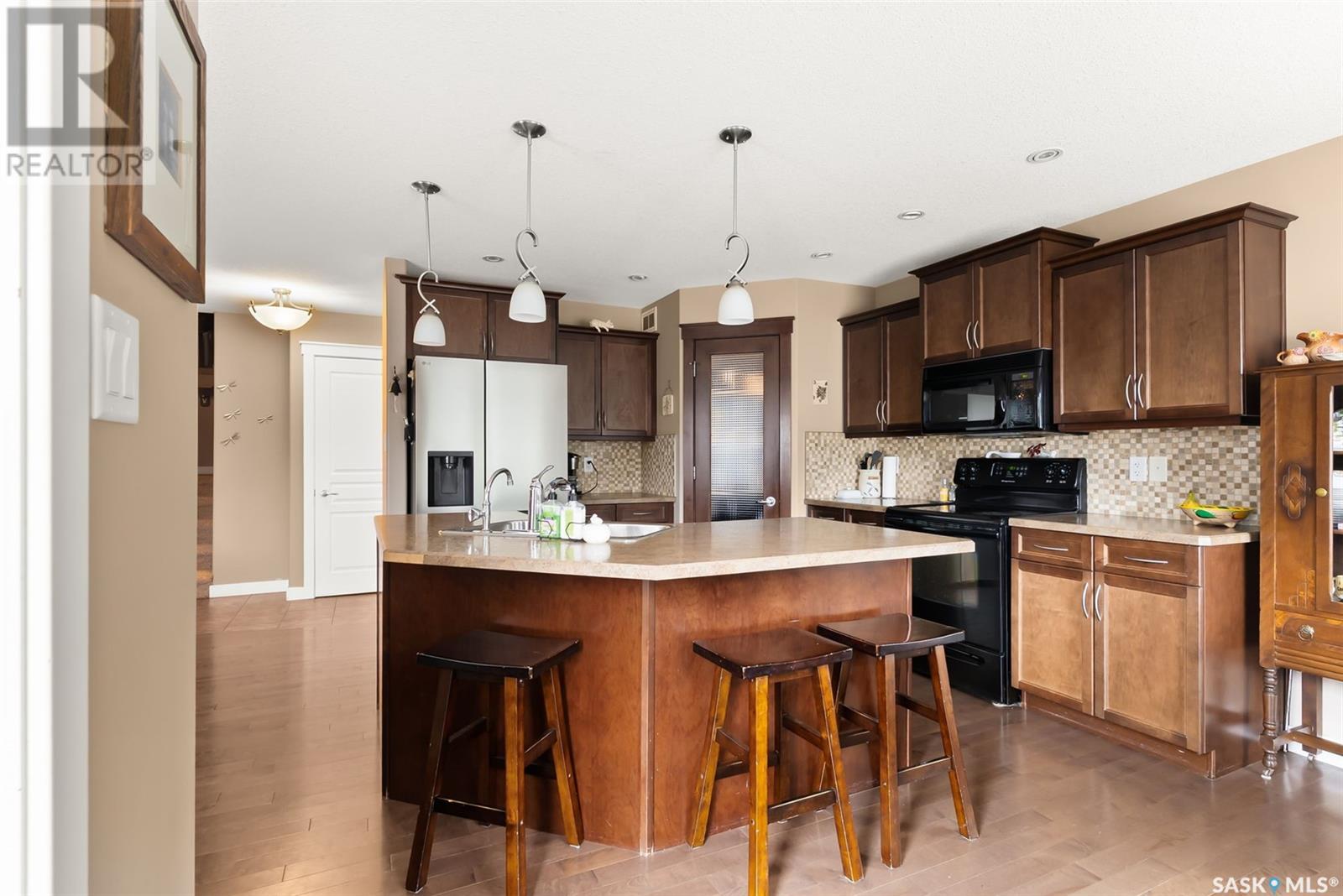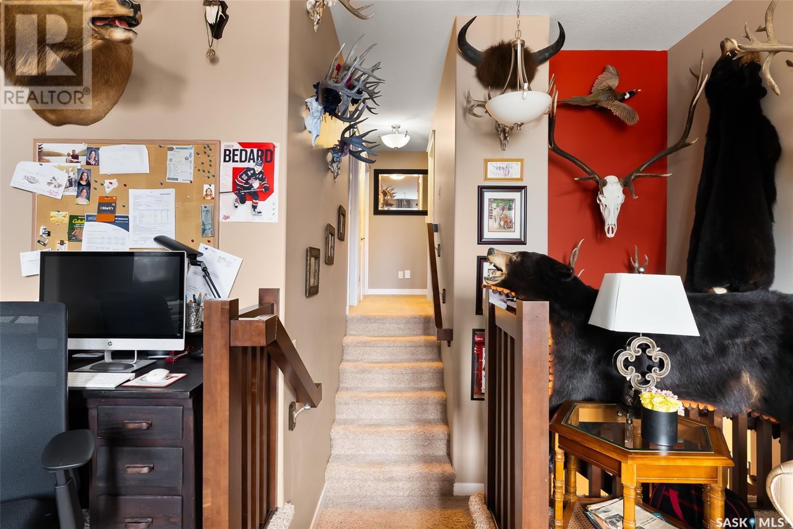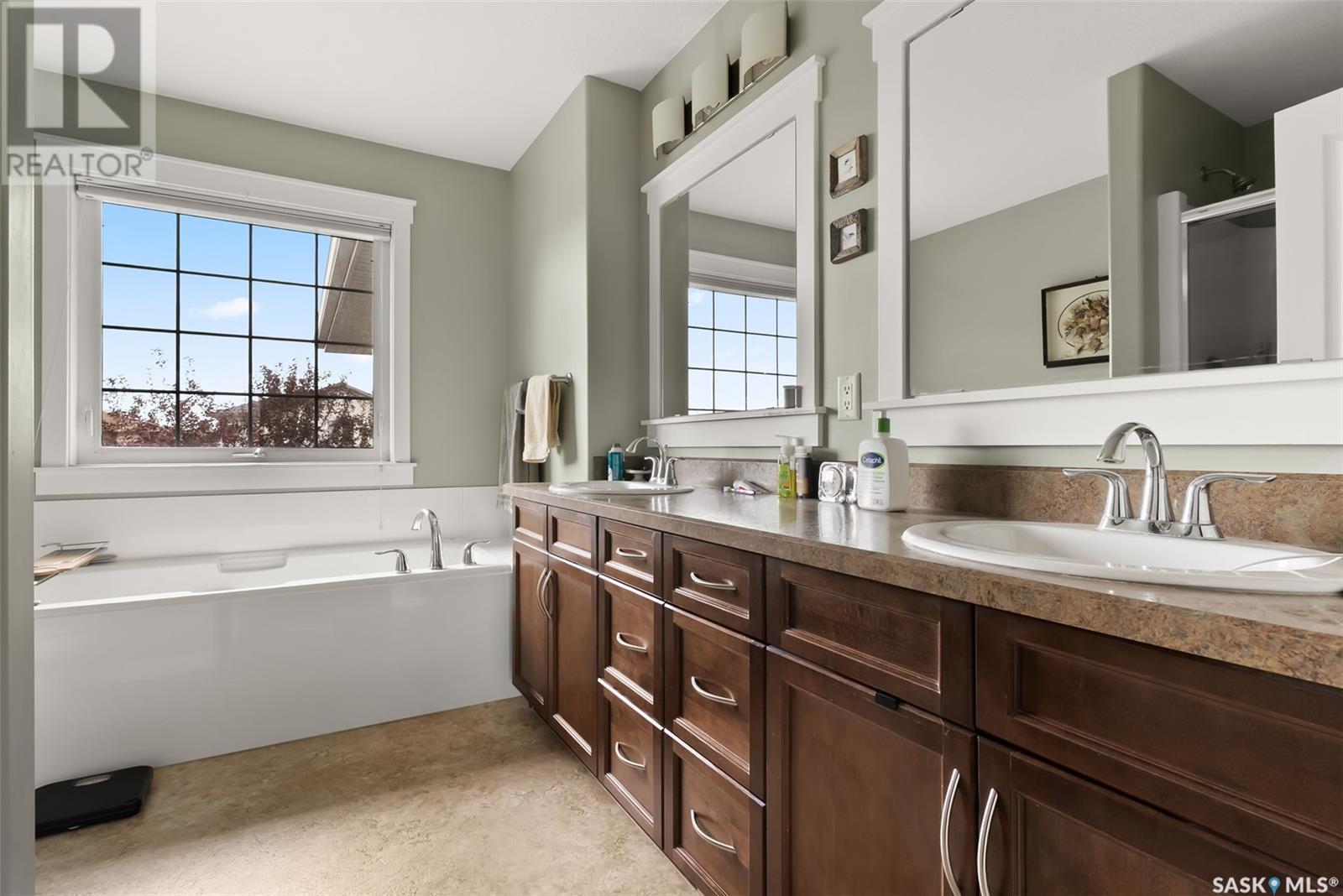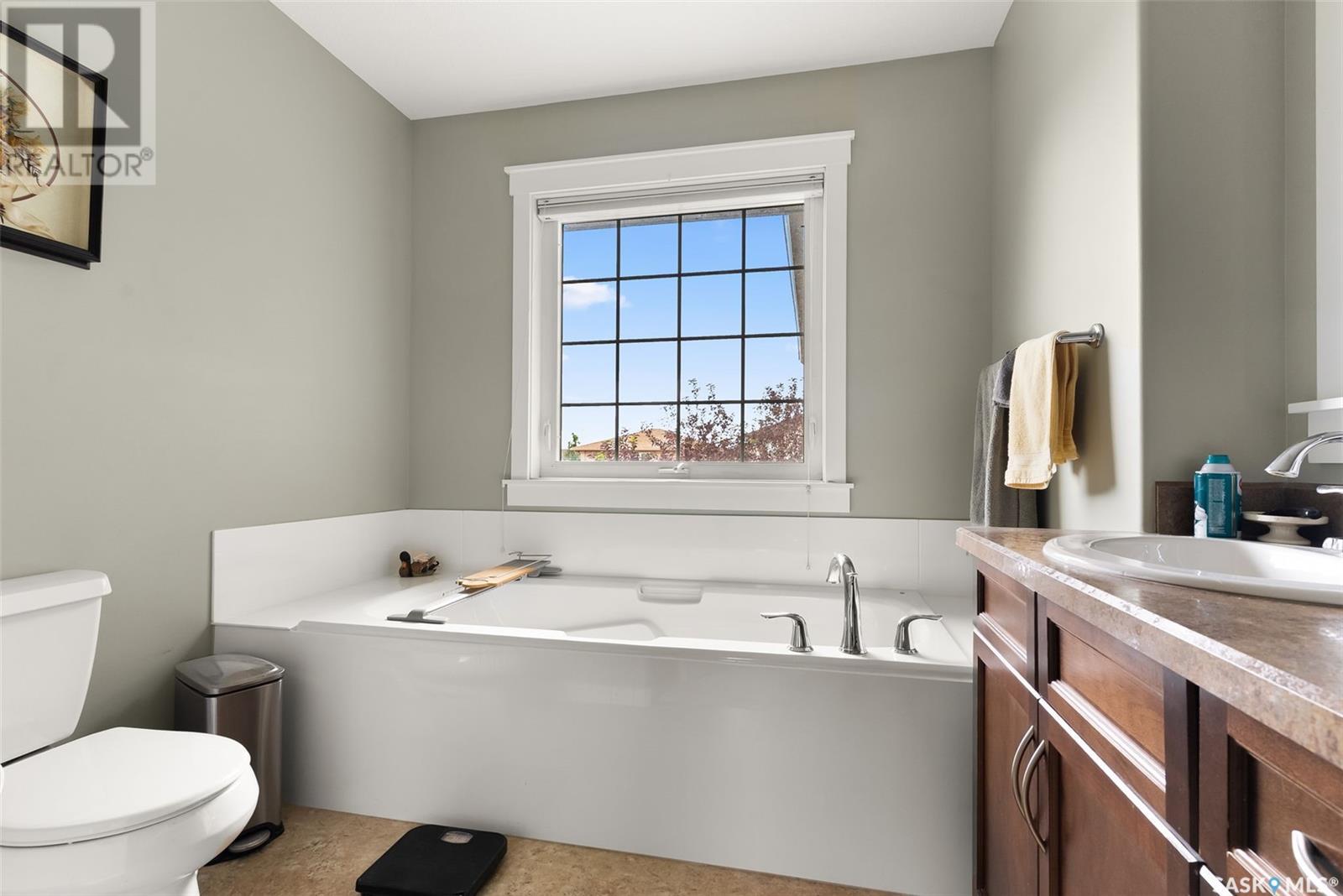 Welcome to 4519 McMillan Drive in desirable Lakeridge in the north end of Regina. This 1,797 sq ft former Trademark show home has been meticulously kept by the original owner. The exterior has wonderful street appeal with Xeriscape landscaping and an additional parking pad for extra driveway space. Upon entry, the spacious foyer exudes natural light from the large windows in the modern plan open living room, kitchen and dining area. The kitchen has an oversized sit up island, large pantry, stainless steel appliances and an array of cabinets and overlooks the living room with a gas fireplace and matching stained maple. The spacious dining area has a garden door that leads to the private deck and fully PVC fenced yard with underground sprinklers plus extra storage space between the houses. The 2 piece powder room, oversized laundry/mudroom leads to the attached insulated double garage. Up the stairs we have a good sized bonus room perfect for a TV room or play area and to the right we have 3 bedrooms. The primary bedroom has plenty of room for a king sized bed and the ensuite has his & her sinks, a standup shower and large jacuzzi soaker tub. The other 2 bedrooms are spacious enough for queen beds and the family bathroom completes this floor. Next is the professionally finished basement that includes a huge rec room, a 3 piece bathroom and a den room that could be an office space plus a large mechanical room. This home is turn key ready and waiting for it’s next family. Close to schools, shopping and all north end amenities. Upgrades: 2025 fridge and dishwasher and insulated garage, A/C 4 years old, parking pad, professionally finished basement.... As per the Seller’s direction, all offers will be presented on 2025-07-20 at 5:00 PM (id:43042)