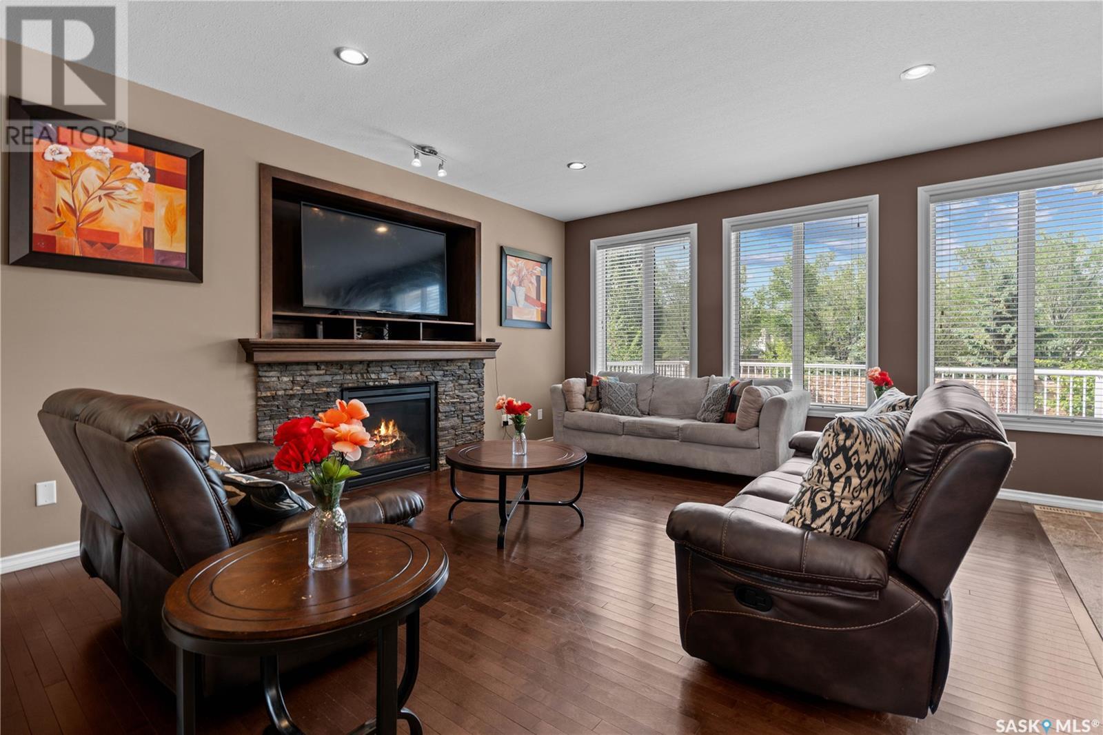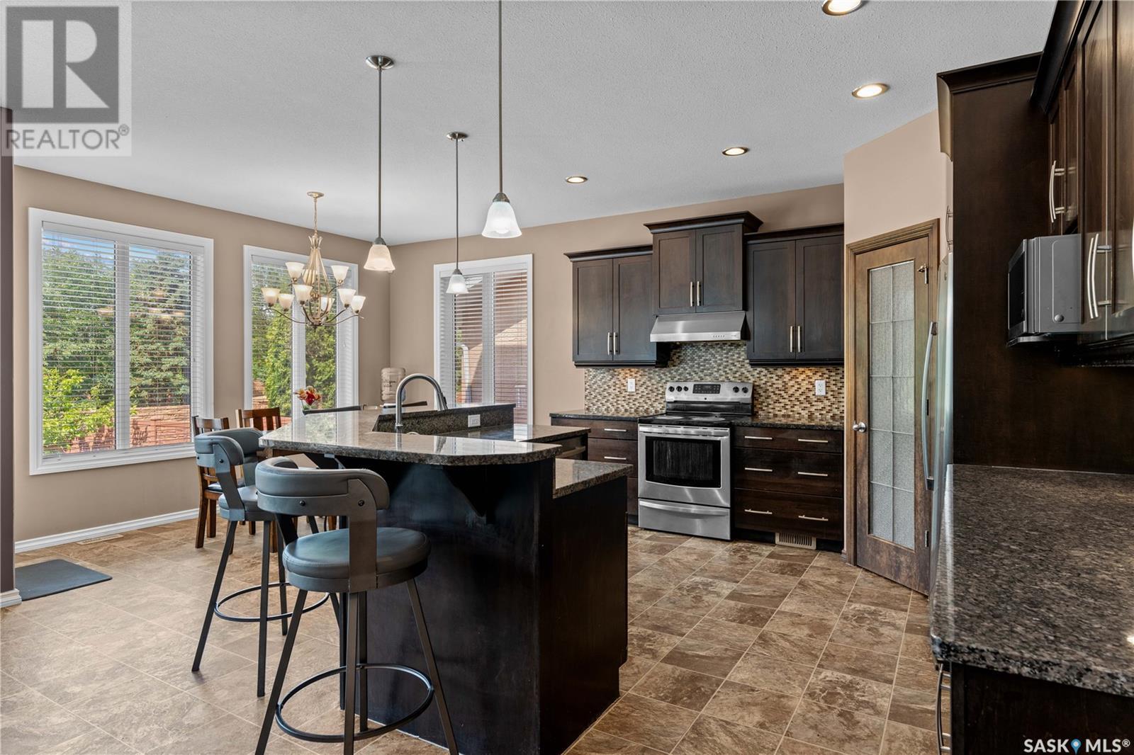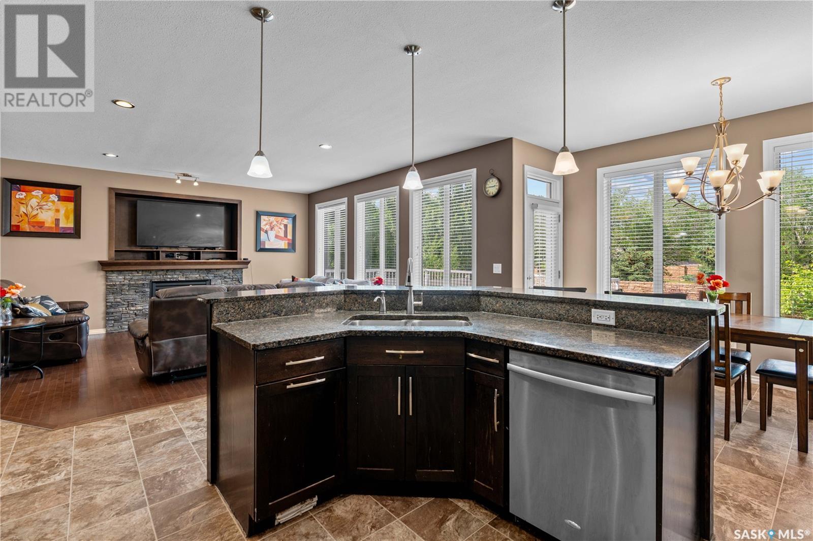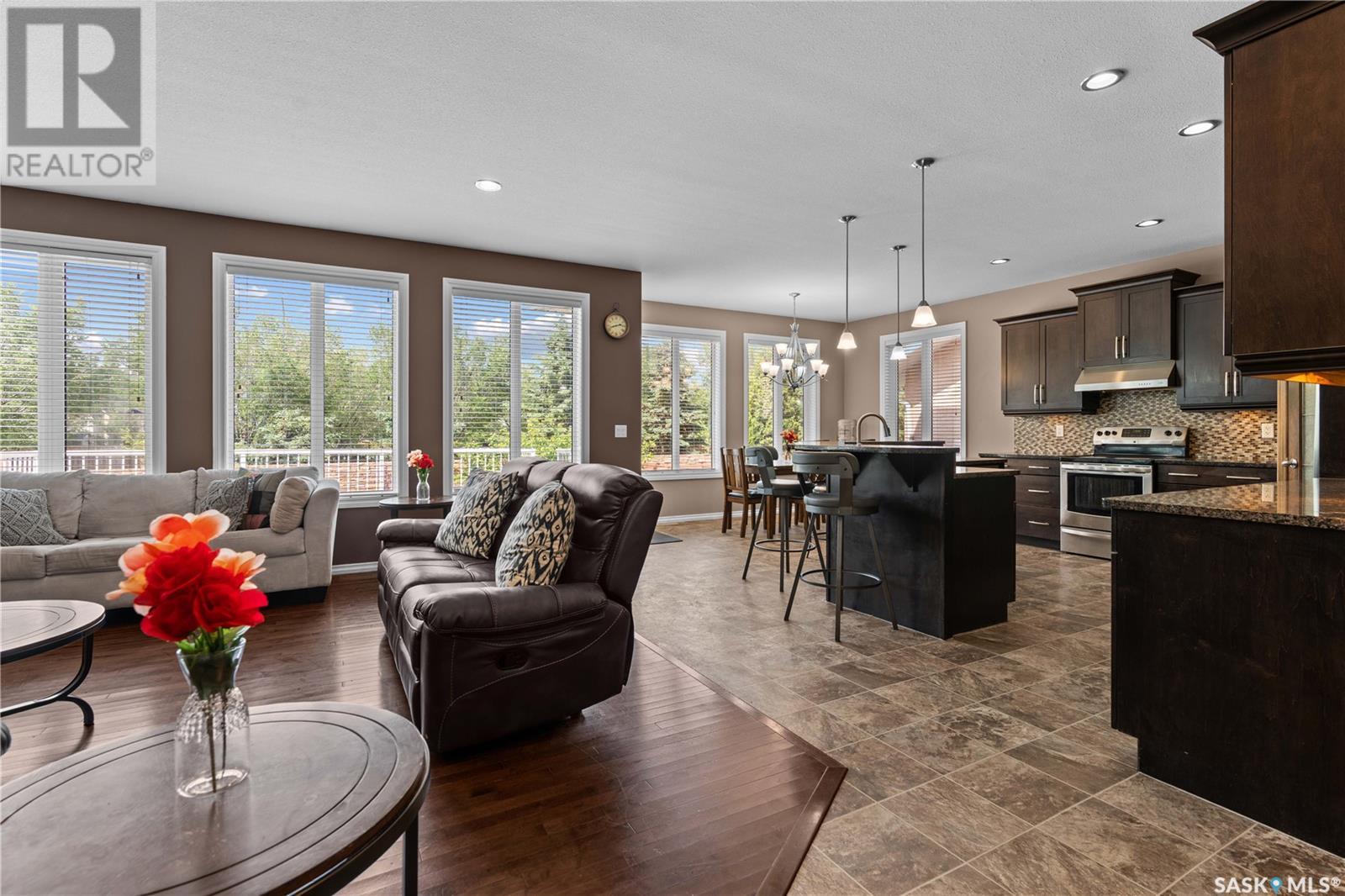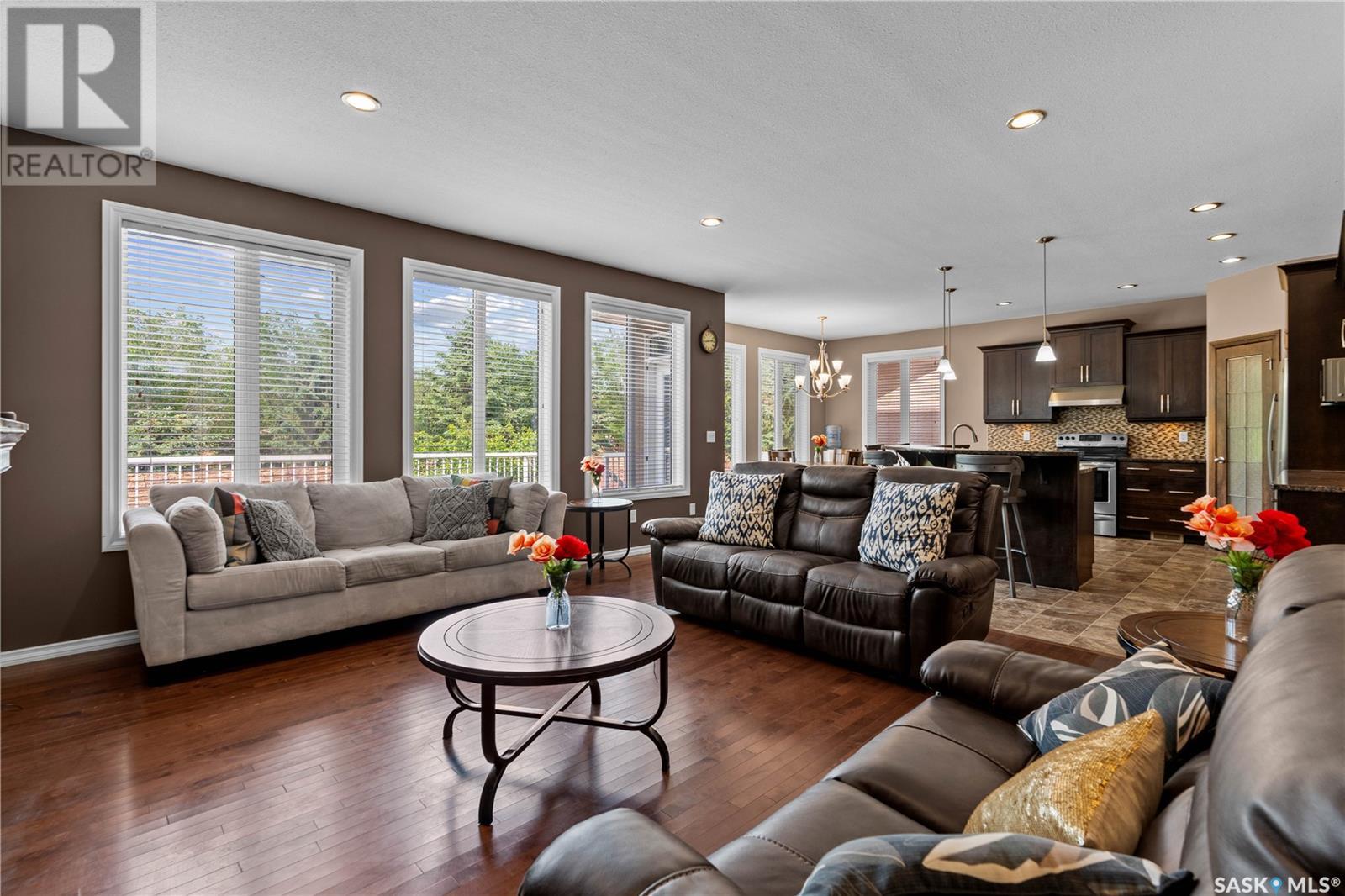 Schools, parks, shopping! Harbour Landing has it all! Including this over 2100 sq ft, 6 bedroom, 4 bathroom home. Welcome to 4521 Hames Cres! Large windows fill the home with natural light, complementing the 9 ft ceilings on the main level. The open-concept great room features a natural gas fireplace with stacked stone surround—perfect for cozy evenings. The kitchen is built for both style and function, with granite countertops, tiled backsplash, undermount lighting, corner pantry, and a large island with a sink and eat-up bar. A dedicated dining area off the kitchen provides the perfect space for family meals or entertaining guests. There is direct access to the attached garage and a convenient 2-pc powder room completes the main level. Upstairs, you’ll find 4 bedrooms, a bonus room (4th bedroom and bonus room have 9 ft ceilings), convenient second-floor laundry, and a 4-pc main bath. The primary suite includes a walk-in closet and a 4-pc en suite with a separate soaker tub and shower. The fully developed basement adds even more living space, featuring 2 additional bedrooms, another 4-pc bath, and is already set up for a second kitchen—a great opportunity for multi-generational living! Outside, the home offers excellent curb appeal with a stucco exterior and a fully landscaped front and back yard. Enjoy summer BBQs on the large back deck, which has direct access off the dining area. Notable highlights include underground sprinklers, a fully insulated and drywalled double car garage, and key updates including new shingles (2022), newer central A/C, and a freshly painted deck. If you or someone you know is looking for a large fully developed home in Regina’s desirable Harbour Landing neighbourhood, contact your REALTOR® to book your own private showing! (id:43042)