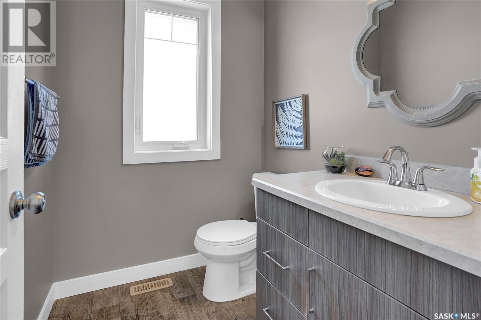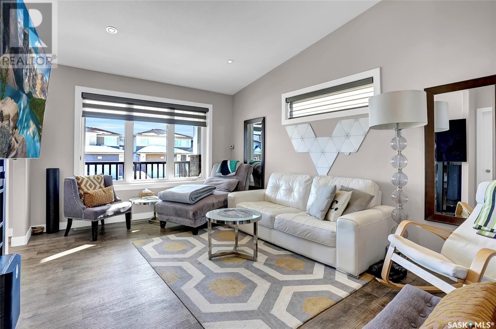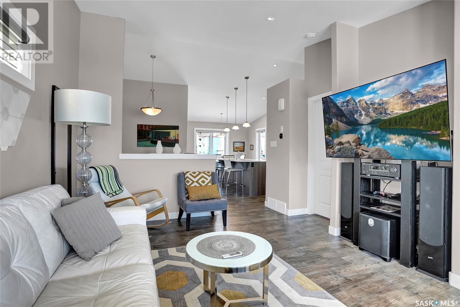 Excellently maintained former show home located in Harbour Landing. Three bedroom bungalow with a huge front foyer. Bright home with loads of natural light flooding into the home. The main floor is living space and the lower level is developed for your sleeping space. Open floor plan with vaulted ceilings in spacious living room, beautiful kitchen with vaulted ceilings, loads white shaker style cabinets, quartz counter tops, corner walk-in pantry, huge island with accent darker cabinets, undermount sink, built-in microwave and SS appliances. Half bath completes the main floor. Bright lower level features three bedrooms, full 5 piece bathroom with dual sinks, and laundry room. Basement has spray foam insulation. Gorgeous backyard that is nicely landscaped with a great deck & lawn area. Double detached garage off back lane is insulated, heated, and has a NEMA 14-50 plug for electric vehicle. Underground sprinklers in front and side yard. PVC fencing. Truly a great place to call home! (id:43042)