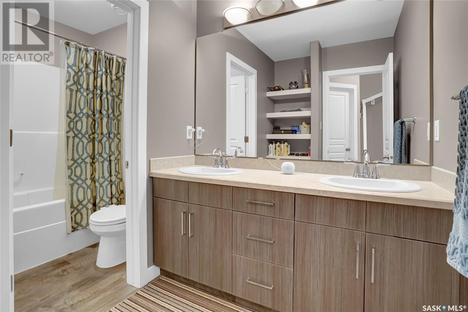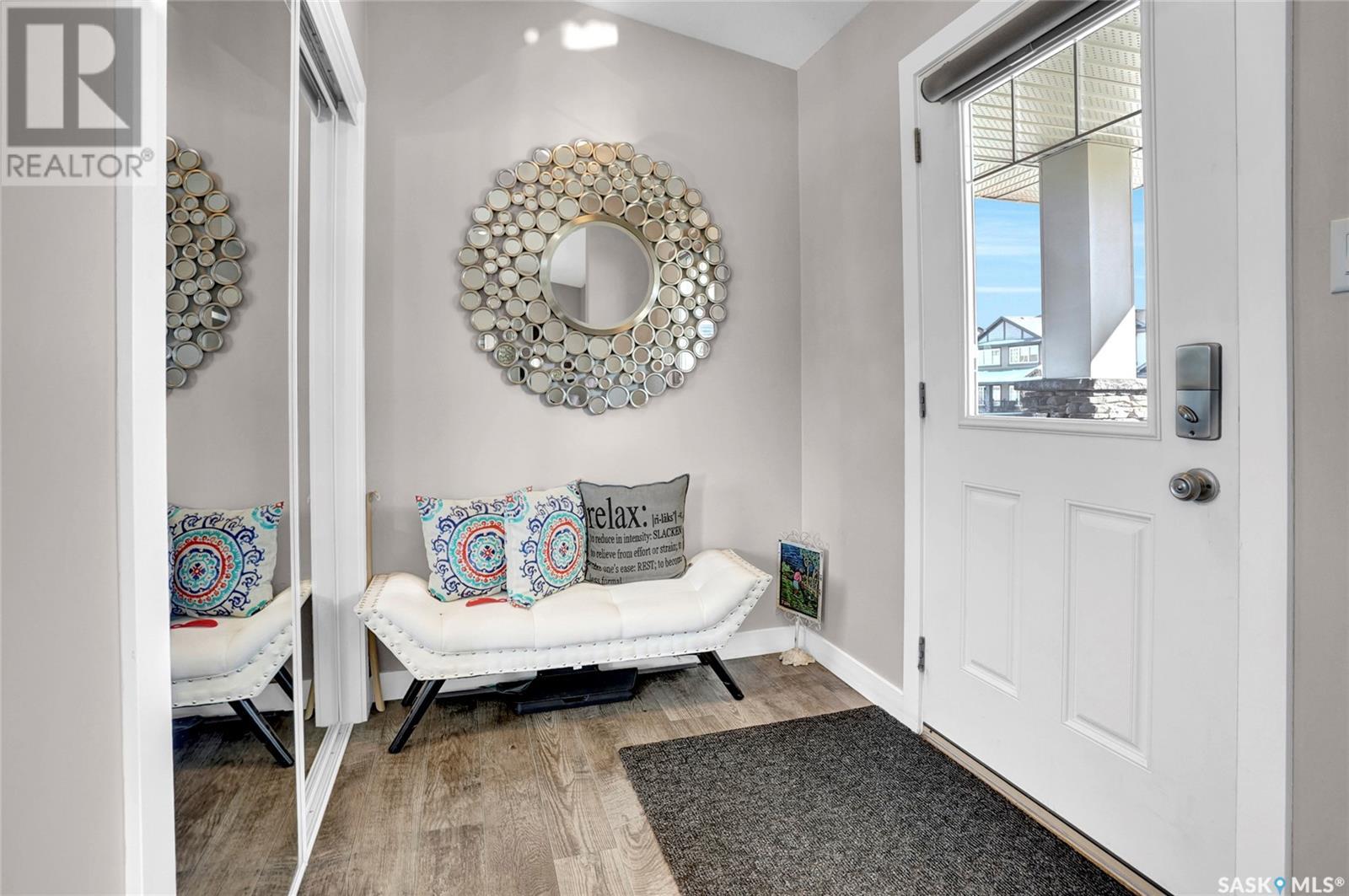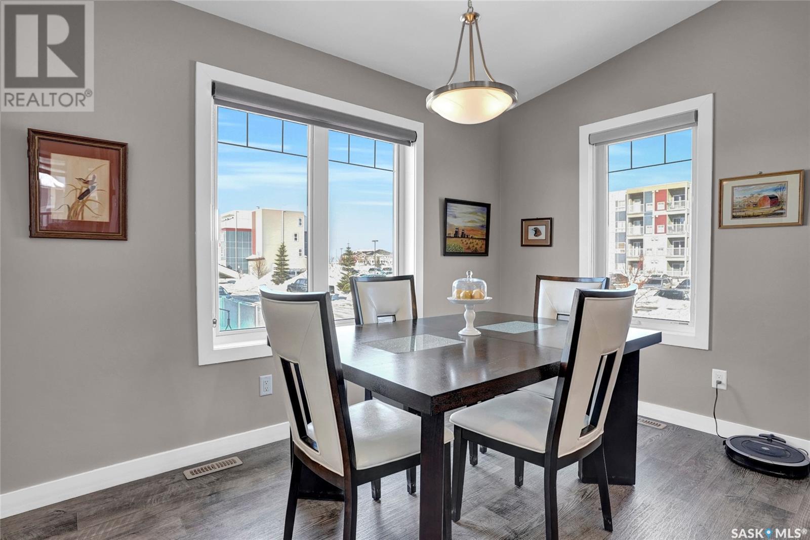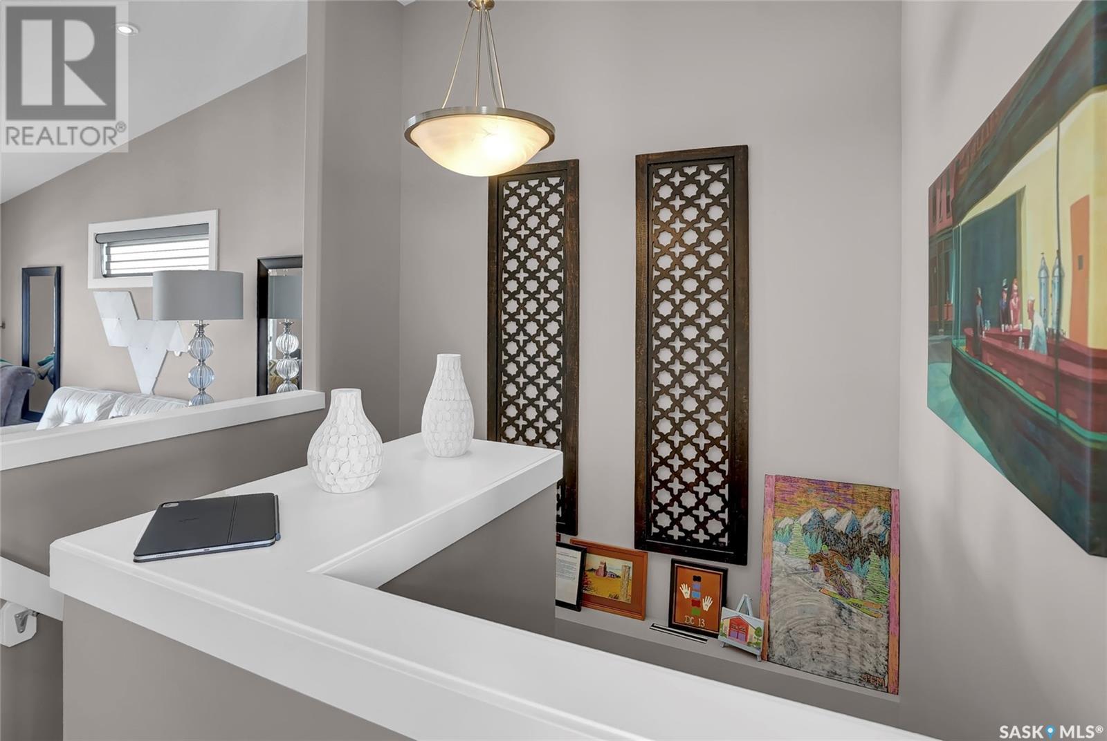 Excellently maintained former show home located in Harbour Landing. Three bedroom bungalow with a huge front foyer. Bright home with loads of natural light flooding into the home. The main floor is living space and the lower level is developed for your sleeping space. Open floor plan with vaulted ceilings in spacious living room, beautiful kitchen with vaulted ceilings, loads white shaker style cabinets, quartz counter tops, corner walk-in pantry, huge island with accent darker cabinets, undermount sink, built-in microwave and SS appliances. Half bath completes the main floor. Bright lower level features three bedrooms, full 5 piece bathroom with dual sinks, and laundry room. Basement has spray foam insulation. Gorgeous backyard that is nicely landscaped with a great deck & lawn area. Double detached garage off back lane is insulated, heated, and has a NEMA 14-50 plug for electric vehicle. Underground sprinklers in front and side yard. PVC fencing. Truly a great place to call home! (id:43042)