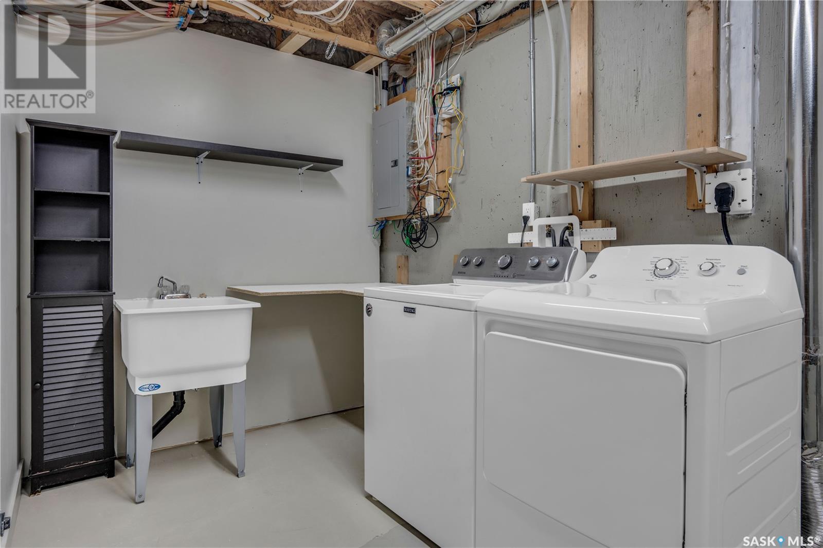 Well taken care of 2004 built 2 bedroom, 2 bathroom, 1008 sq ft townhouse in the Garden Ridge area of North Regina is move-in ready! Bright kitchen & dining area overlooking your back patio and common greenspace. The 2nd floor offers two large bedrooms, office/reading nook & a full bath. The basement is partially developed with a 3 pc bath, unfinished rec room area and laundry area with included washer, dryer and laundry sink. Right outside the front door are the 2 included parking stalls. (id:43042)