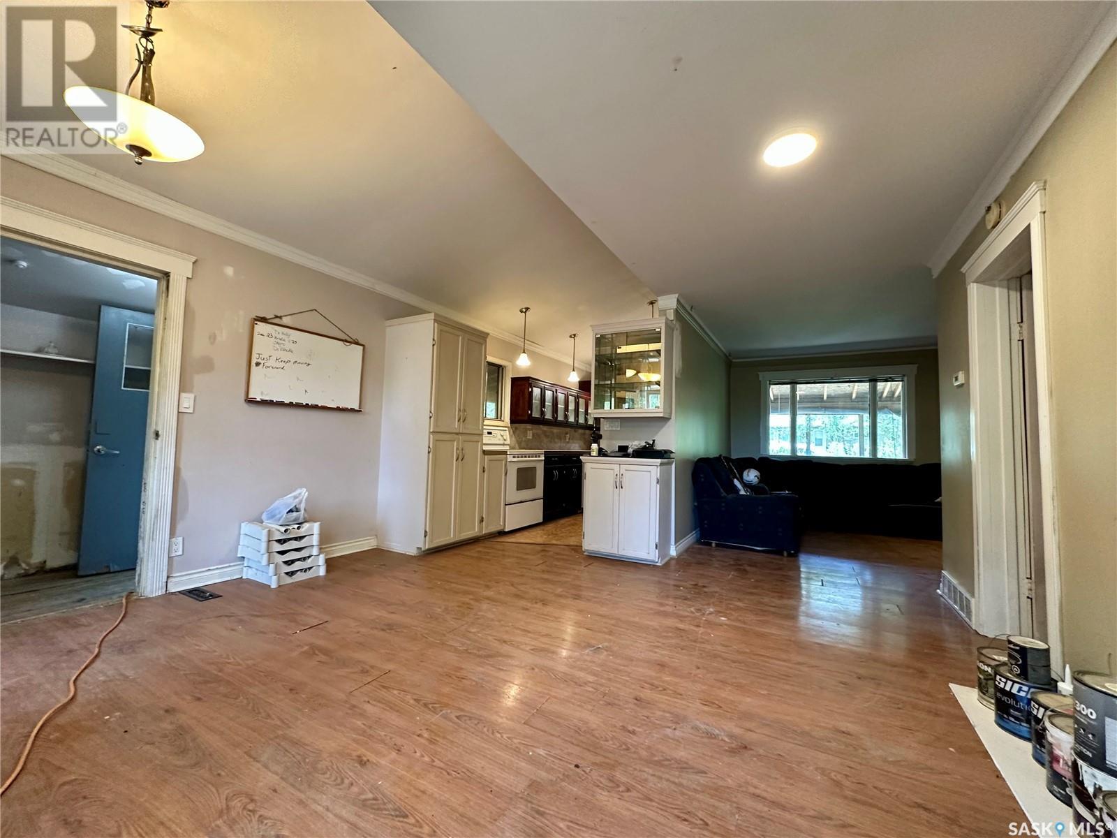 This charming home is ideal for first-time buyers or those looking to downsize, featuring recent updates like a custom espresso kitchen with glass cabinet inserts, marble tile countertops and backsplashes, upgraded fixtures, laminate flooring, and a vaulted ceiling in the kitchen and dining area. The primary bedroom includes a walk-through closet, and you'll love the added bonus of a sunroom, covered walkway, and front veranda. Key updates include shingles, windows, and a back door (all in 2009), plus a coverall garage for extra storage. Situated on a double lot with 100 feet of frontage, this property offers room to expand or build — a rare opportunity with endless potential. (id:43042)