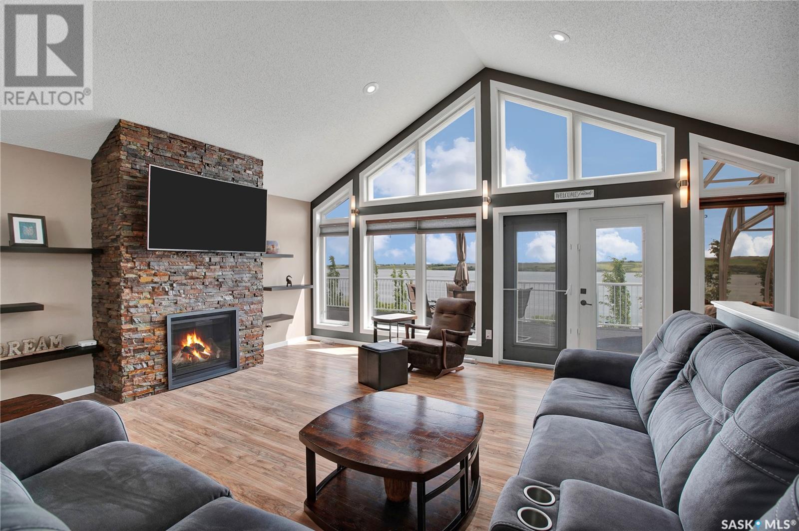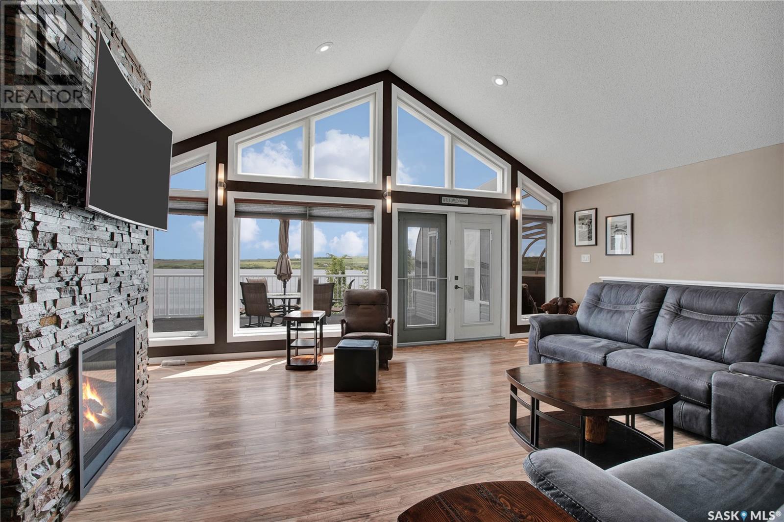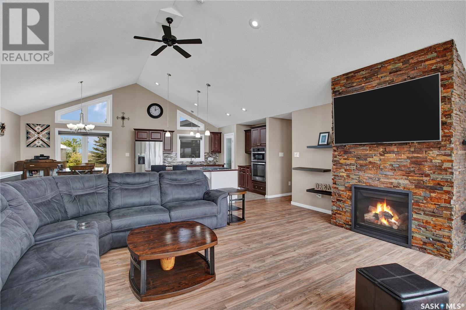 One of a Kind Custom built home overlooking Blackstrap Lake. This home offers 1568 sq. ft., 3 Bedrooms, 3 bathrooms, man cave directly off of the attached triple garage(36x30), Large Kitchen with open concept, Vaulted ceilings with a Feature Window wall overlooking the lake, Gas fireplace, Stainless steel appliances and Main floor laundry. The Master bedroom features a large walk in closet, Custom bathroom with tile and rain shower, direct access to the deck , Solarium and Hot tub. Outside offers a Large raised Deck overlooking the lake, Triple attached garage plus Detached heated shop. Guaranteed access to the lake and available dock permits out front with application to town. The home is fully serviced with Public water and Sewer in the community of shields. Don’t miss this one! (id:43042)