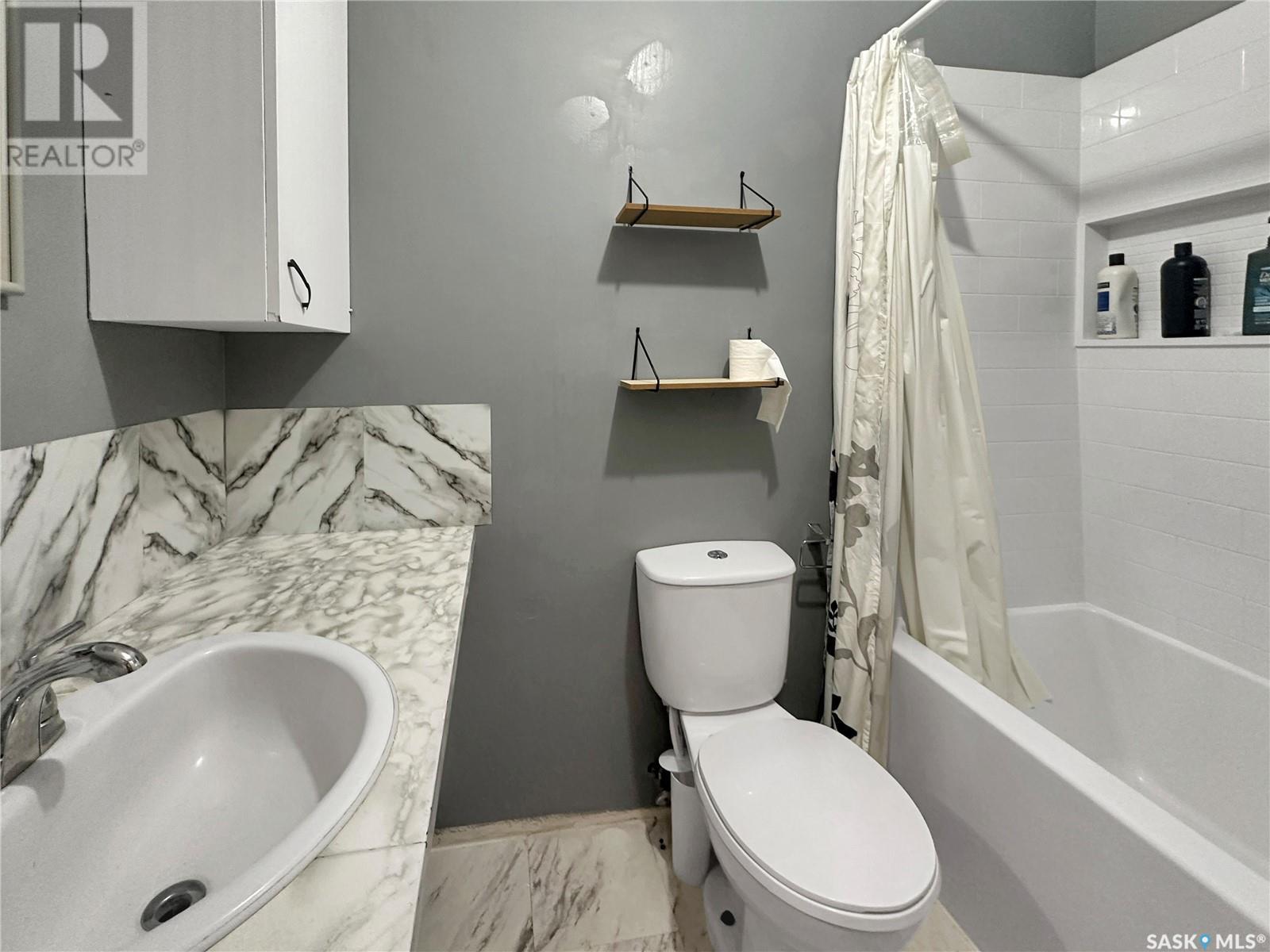 This mint red roofed beauty on the northern edge of Montmatre packs a punch. With just about as much garage space as main floor sq ft this home is primarily for someone WANTING IT ALL! A large lot, large garage, large opportunity to own a home with huge potential. Solid tin roof protects you from the top down, main floor bath, large entry and tons of natural light all fist pump worthy for a new owner! A feature wall, the cutest basement bath and basement office/windowless "bedroom" all are ready for the next owners tweaking or move in and settle down. The basement also has in house laundry, and a large developable space for rec area or more bedrooms! The yard is copious insize with some mature trees for privacy. The oversized garage is insulated, concrete floor and ready for your winter heat & projects! Dive into this doozy today! (id:43042)