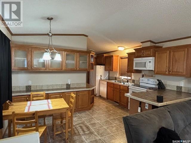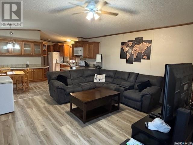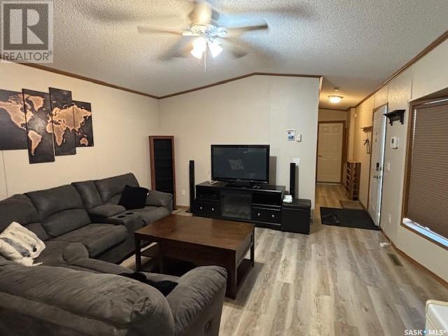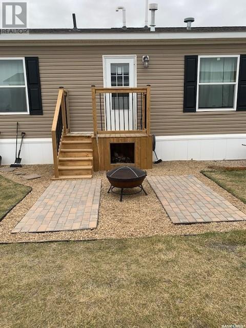 Affordable Comfort on Owned Lot – 501 Stockton Ave, Carlyle Welcome to 501 Stockton—a 2014 Friendship home offering the perfect blend of space, style, and function on a fully owned lot. This 3-bedroom, 2-bath home features a bright open floor plan with vaulted ceilings, making it feel spacious and airy throughout. The primary bedroom is a true retreat with a walk-in closet and a luxurious 5-piece ensuite complete with a jetted tub. Enjoy the convenience of main floor laundry and a fully applianced kitchen, plus a solid setup with a permanent steel pile foundation, heat-taped water lines, and insulated skirting for peace of mind year-round. Step outside to a beautifully landscaped, fully fenced yard featuring walkways, a cozy fire pit area, and a grade-level deck with pergola—ideal for gatherings with family and friends. Parking is no issue here with space for up to 4 vehicles out front. Whether you're starting out, settling down, or investing smart, affordability and comfort meet right here. Call realtors to schedule a viewing. (id:43042)