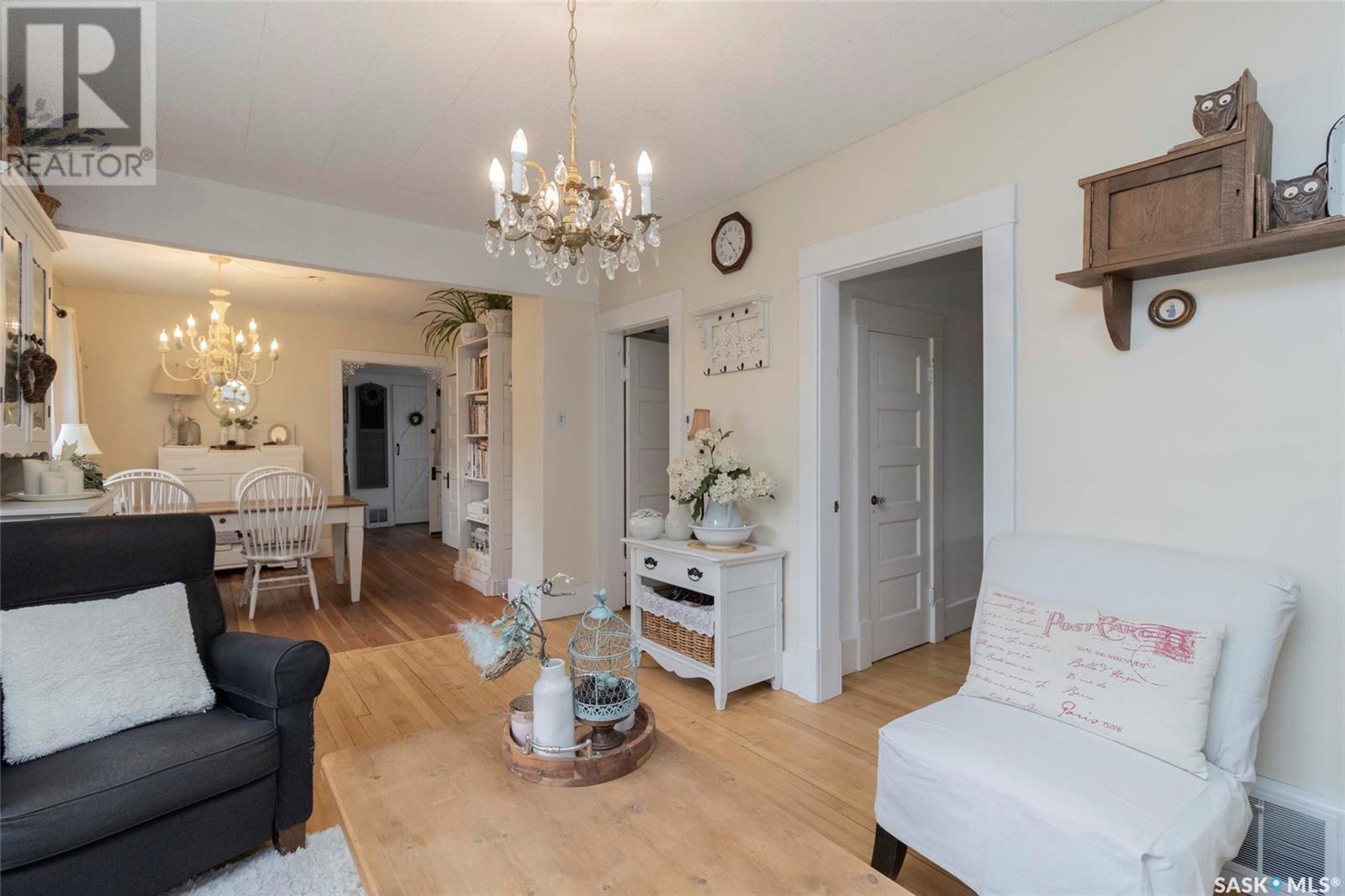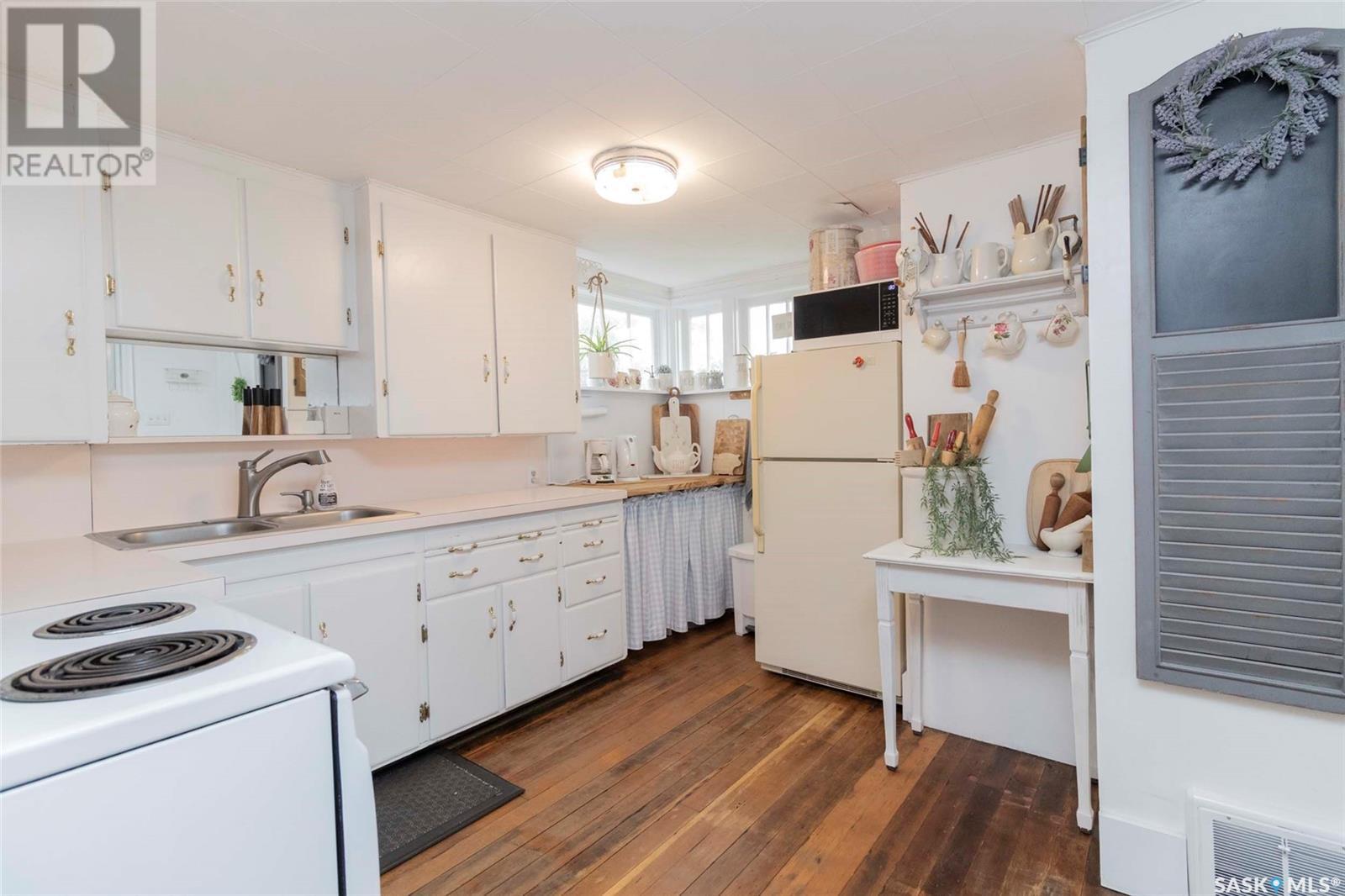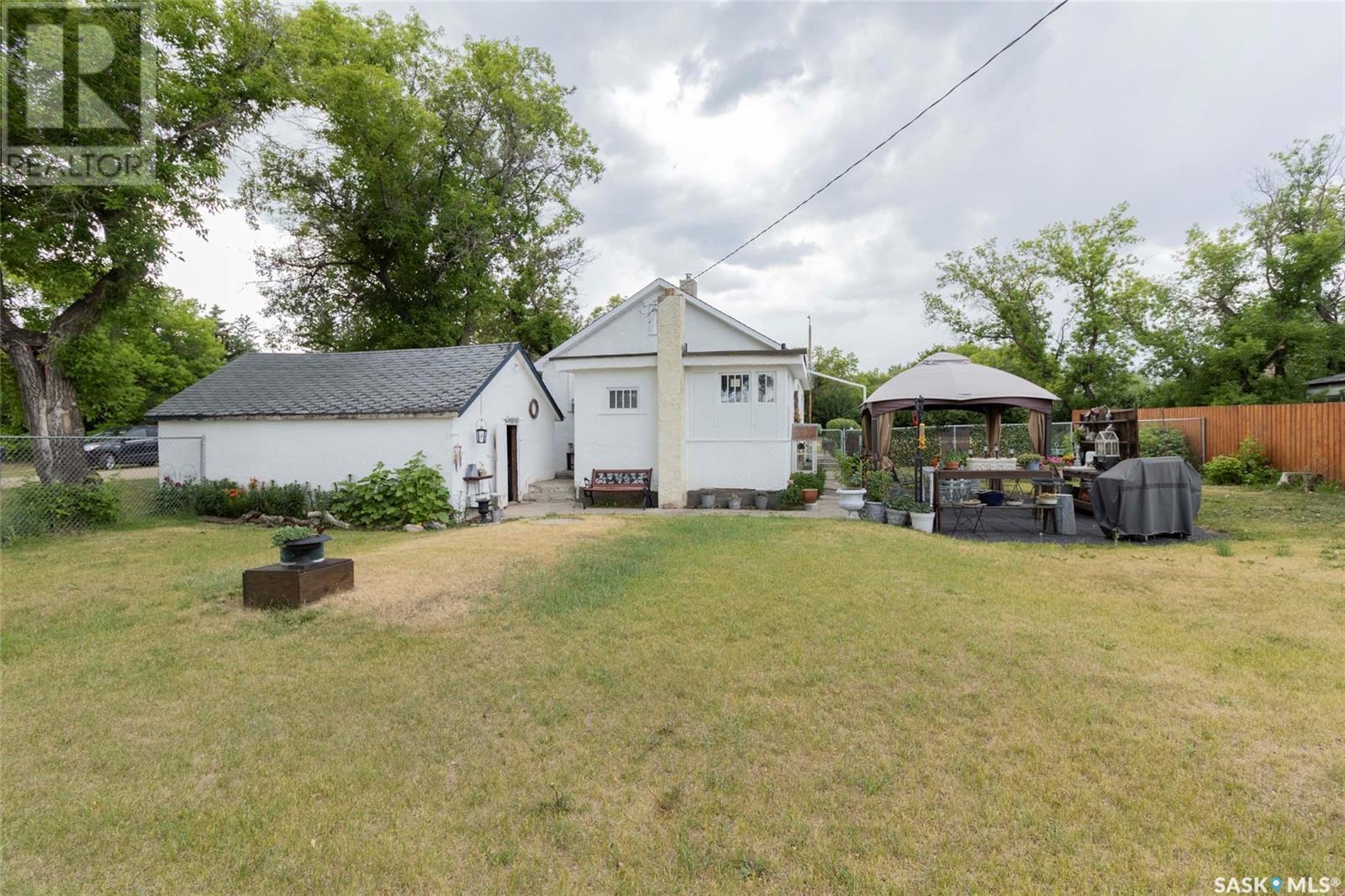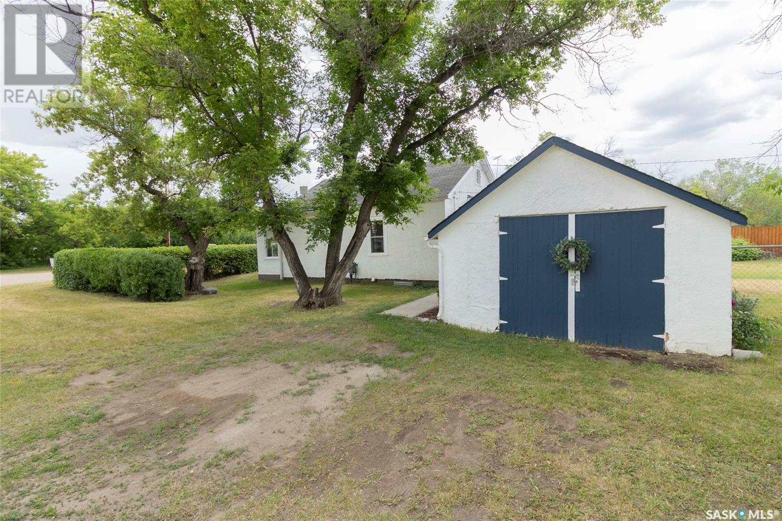 Welcome to this cozy and well-maintained 3-bedroom, 1-bathroom bungalow located in the quiet community of Kinley. Sitting on a generous 75' x 150' lot, this home offers plenty of outdoor space for gardening, entertaining, or future development. With 880 sq ft of living space, the home features a functional layout that includes a bright living room, a kitchen with ample space, and three comfortable bedrooms — perfect for a young family, downsizers, or first-time buyers. The home is situated on a mature lot with established trees and plenty of room for kids or pets to play. Additional highlights include a single detached garage, back alley access, and room to park extra vehicles, an RV, or a trailer. Located just 30 minutes west of Saskatoon, Kinley offers the peace of small-town living with convenient access to city amenities. Don’t miss this affordable opportunity to own a charming home on a large lot! (id:43042)