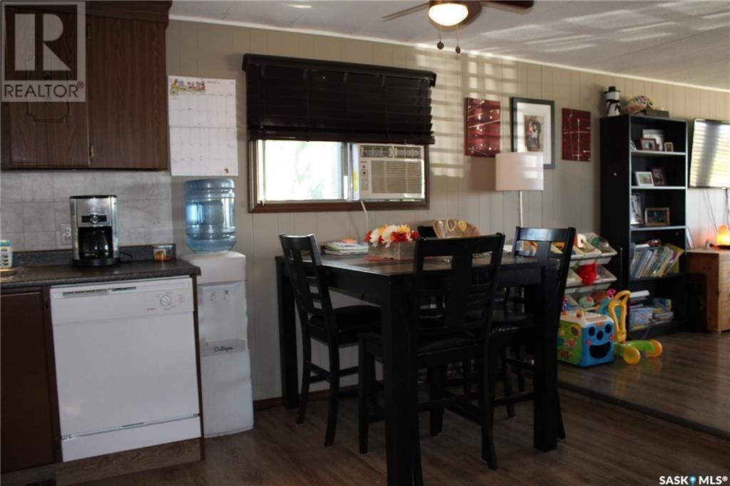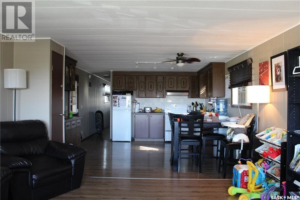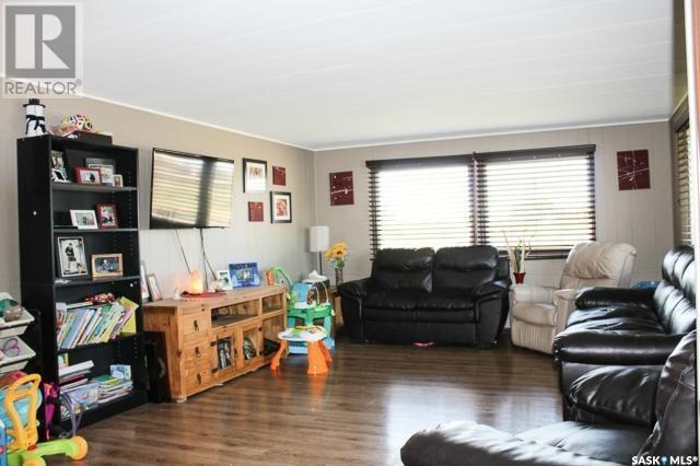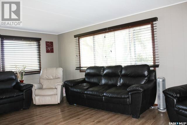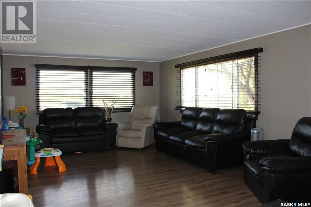This 1048 sq foot mobile home is very well kept and located just 30 minutes outside of Estevan. This home is on a mature lot and has many upgrades like a metal roof and beautiful laminate flooring throughout. The main living area has an open concept vibe that is great for entertaining. There are 3 bedrooms located at the back of the home along with laundry and a 4 piece bath. Off of the kitchen a large porch has been added for extra storage space! Lampman is a vibrant community that has a beautiful school, outdoor pool, rink, as well as a grocery and gas store. Call me today to take a look! (id:43042)