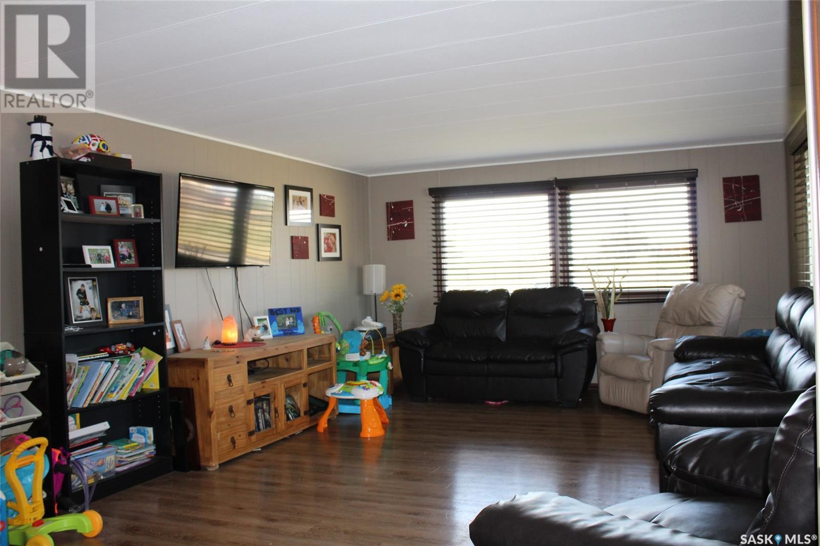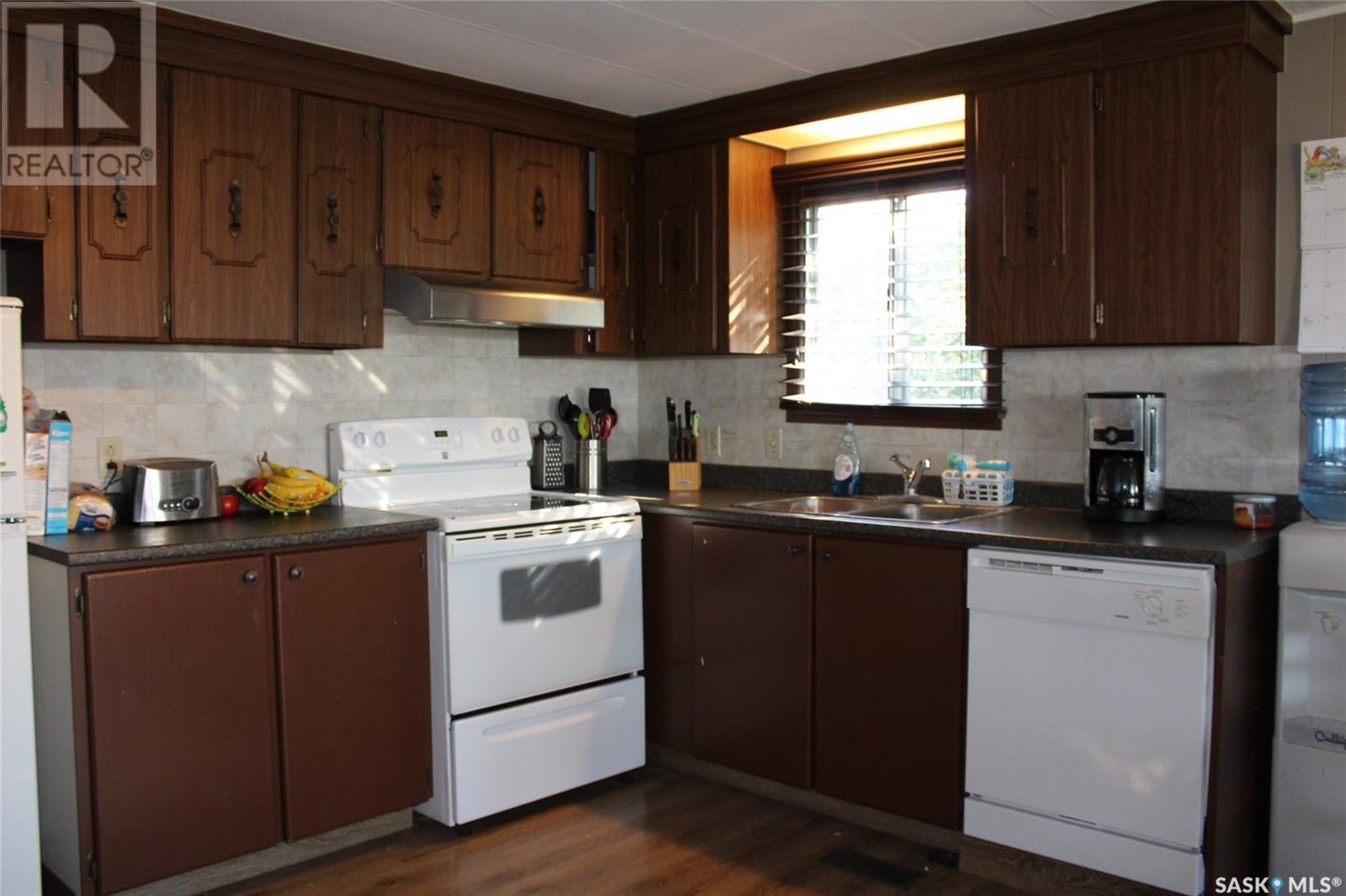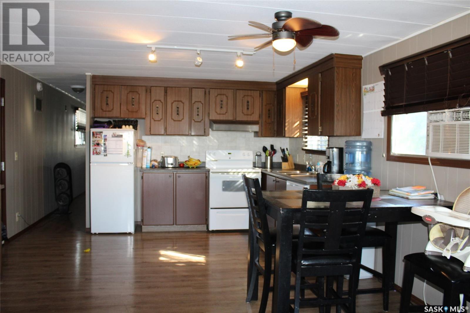 This 1048 sq foot mobile home is very well kept and located just 30 minutes outside of Estevan. This home is on a mature lot and has many upgrades like a metal roof and beautiful laminate flooring throughout. The main living area has an open concept vibe that is great for entertaining. There are 3 bedrooms located at the back of the home along with laundry and a 4 piece bath. Off of the kitchen a large porch has been added for extra storage space! Lampman is a vibrant community that has a beautiful school, outdoor pool, rink, as well as a grocery and gas store. Call me today to take a look! (id:43042)