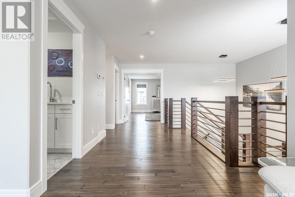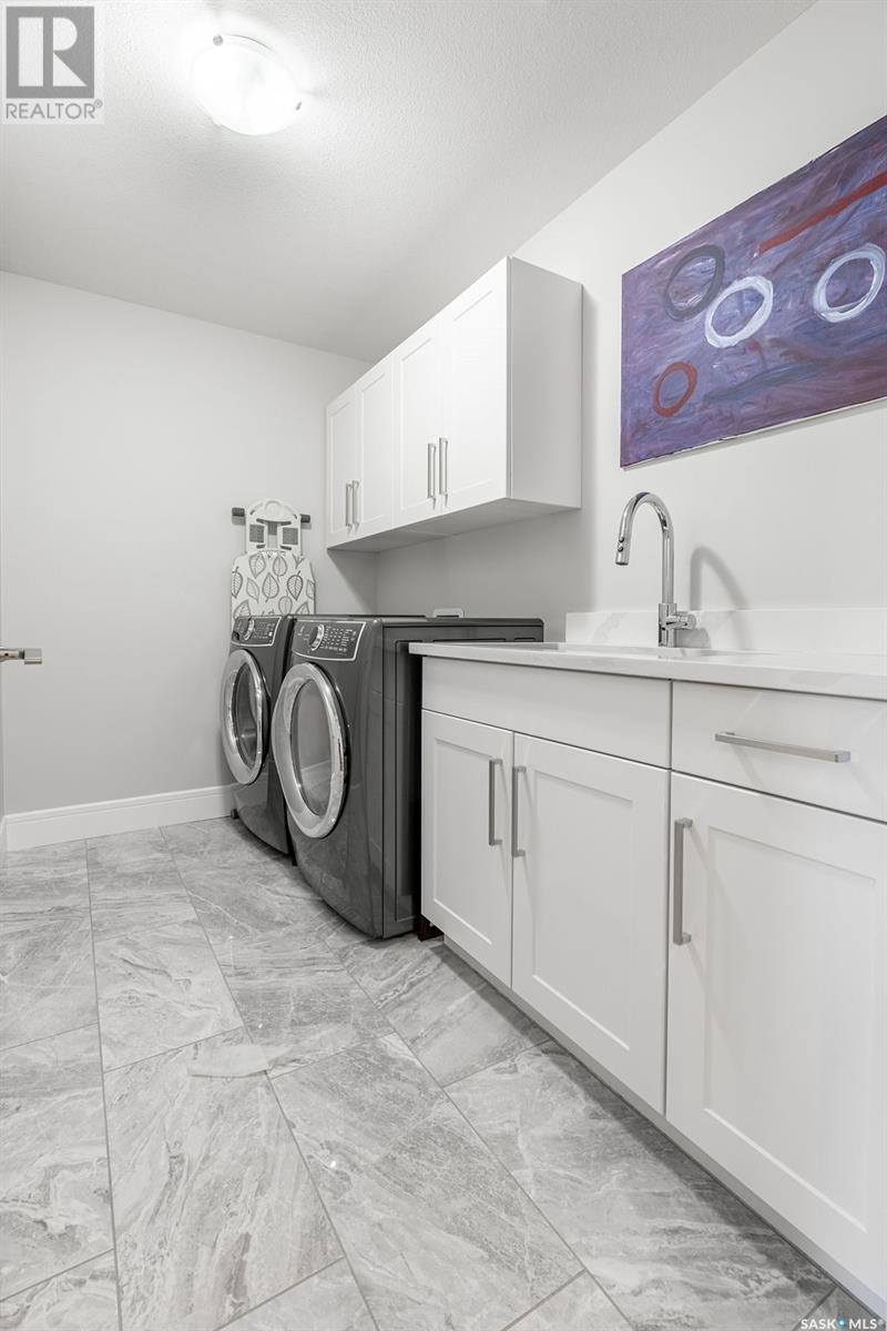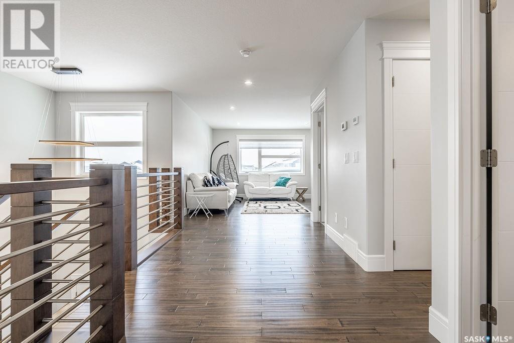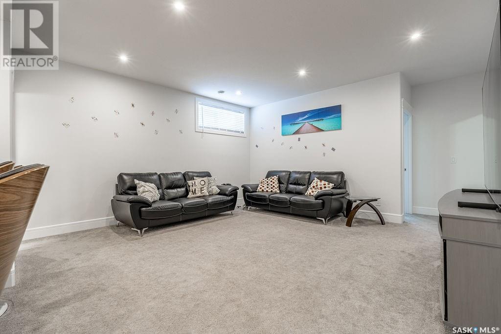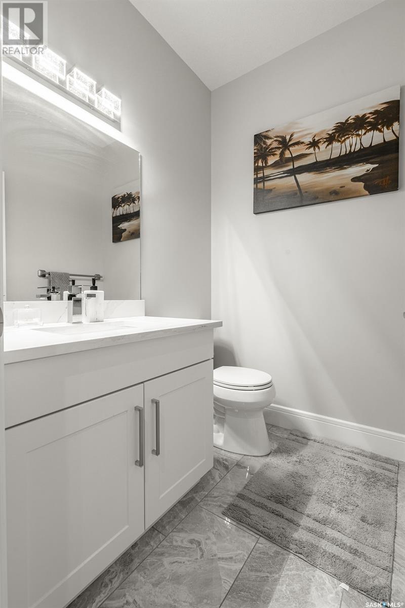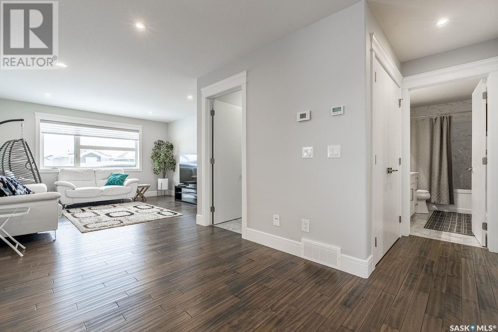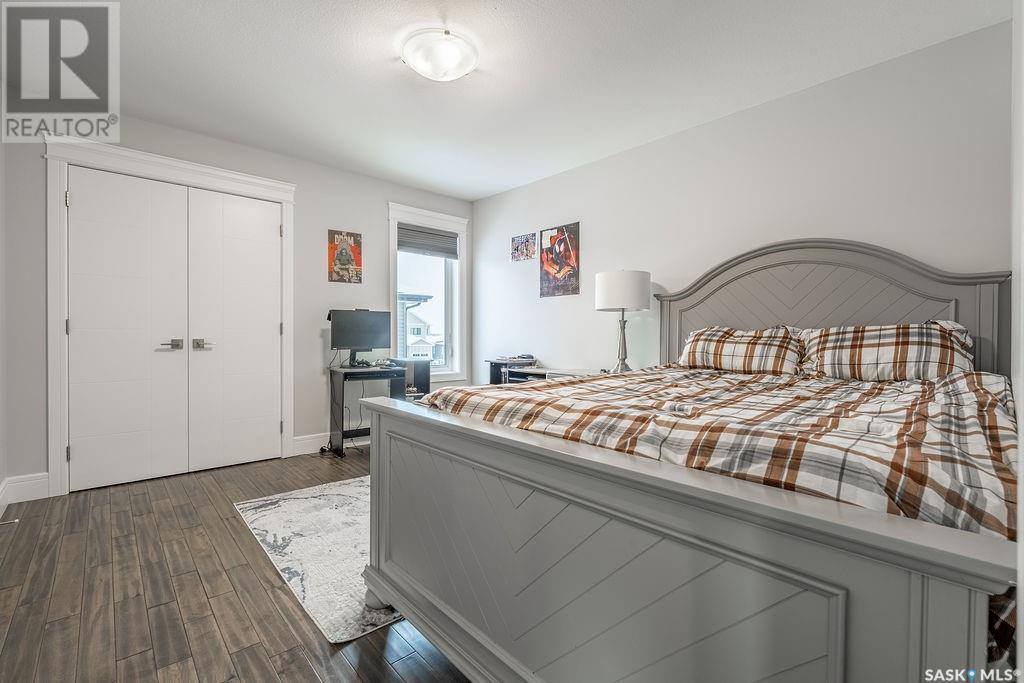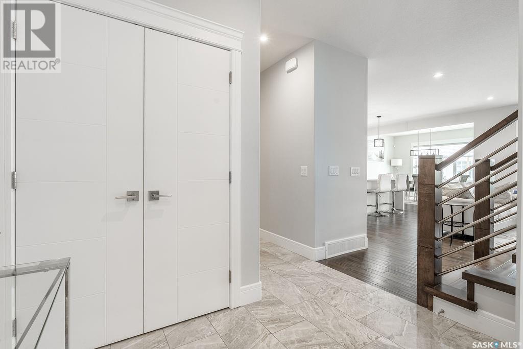 Elegance and function- Are you looking for the full package!? Extra-large 4 car garage, luxury finishes, bonus room, finished basement, oversized en suite and primary bedroom! Look no further, welcome to 515 Kenaschuk Way! No expense has been spared on this luxurious large fully-finished two-story. Porcelain tile and hand scraped hardwood throughout. Walk into a soaring two-story front entryway leading into your open concept main floor. The living room has a beautiful electric fireplace with a stone and live edge mantle and large windows overlooking the covered deck. The kitchen has an 11 foot eat-up island, full height white cabinets, professional-style appliances including induction cooktop and separate full-sized side-by-side fridge & freezer, wall oven, and walk-through pantry. The dining area has a wall of windows overlooking the backyard. Mudroom area to the garage and 2-piece powder room round out this floor. The open staircase over-looks the foyer and leads you to the spacious 2nd floor where you will find a large bonus room, three bedrooms, two bathrooms and a gorgeous laundry room. The primary en-suite has an elegant freestanding tub, walk-in glass shower, marble porcelain tile, in floor heat, a vanity with two sinks, a walk-in closet with fitted drawers and shelving. The basement includes two more bedrooms, family room, perfect wet bar for entertaining, utility room and another four piece bathroom. The backyard is fully fenced and has trees, lawn and a garden. The massive four car heated garage has a door that drives right through to the backyard. This house has been outfitted with blinds, air conditioning and beautiful landscaping. Close to all amenities and easy access to the Chief Mistawasis bridge. Call your agent for your showing today. (id:43042)