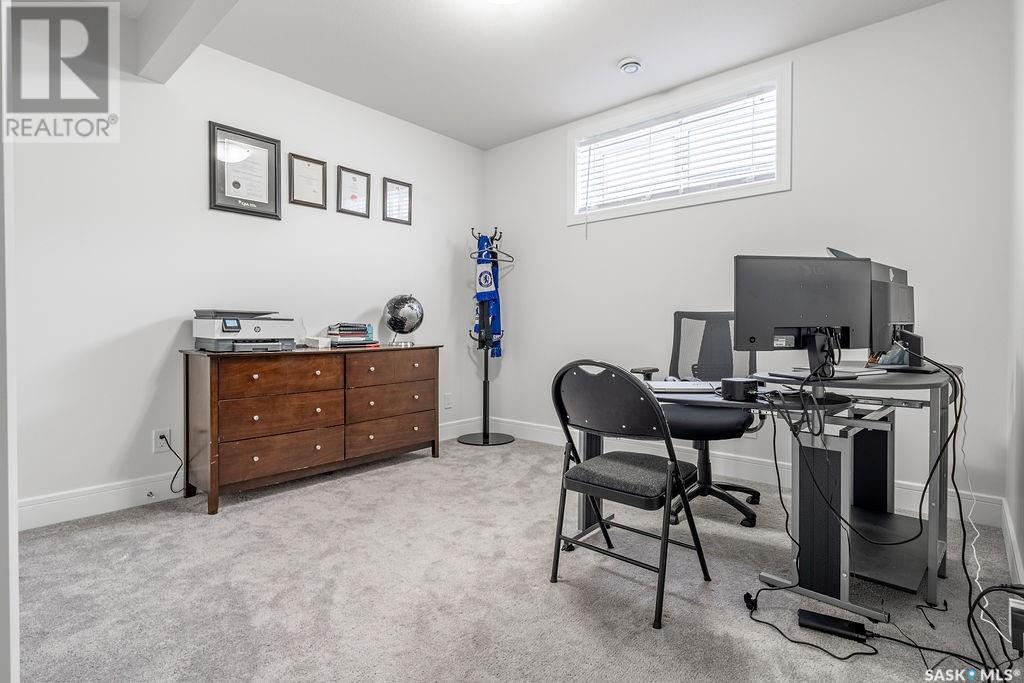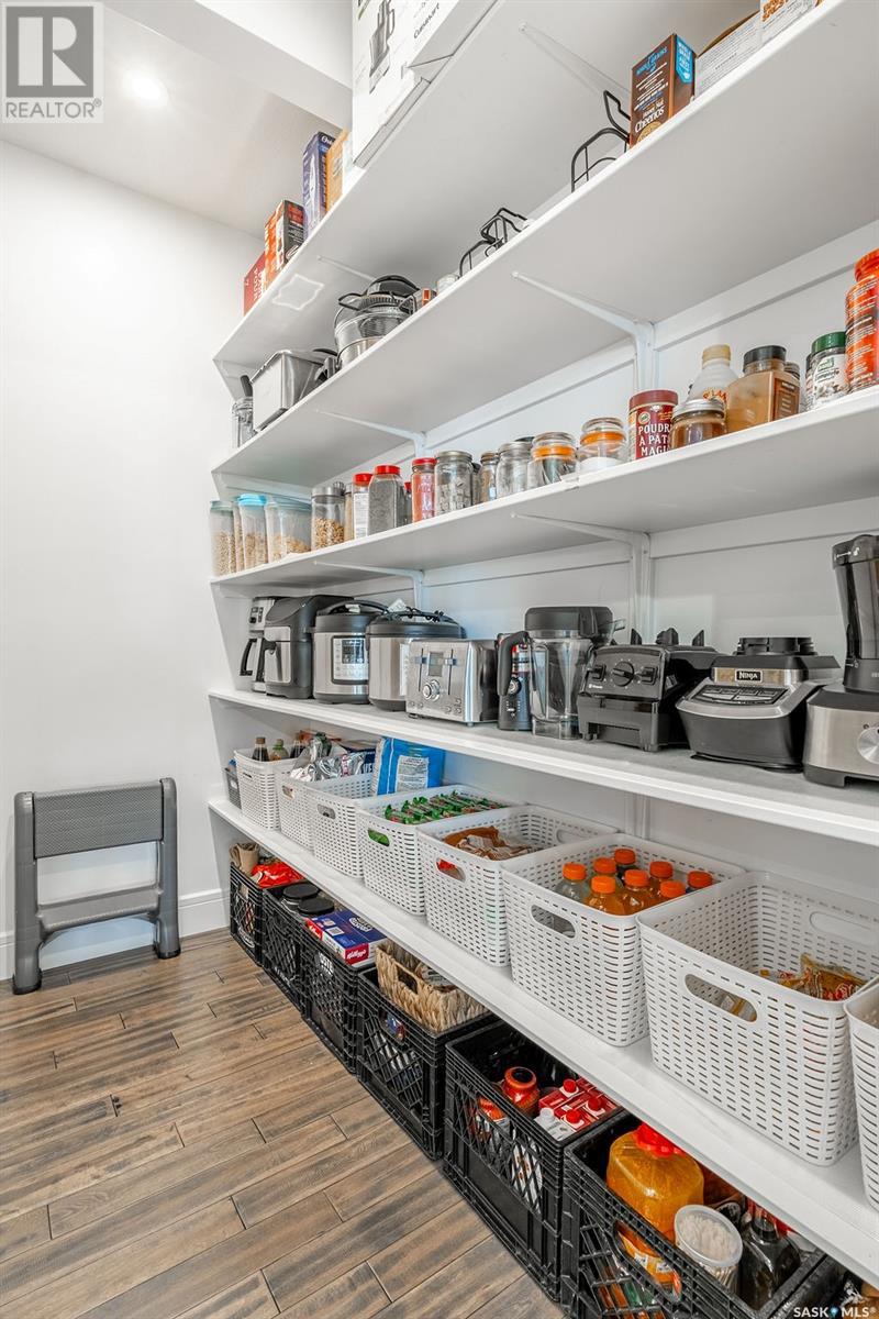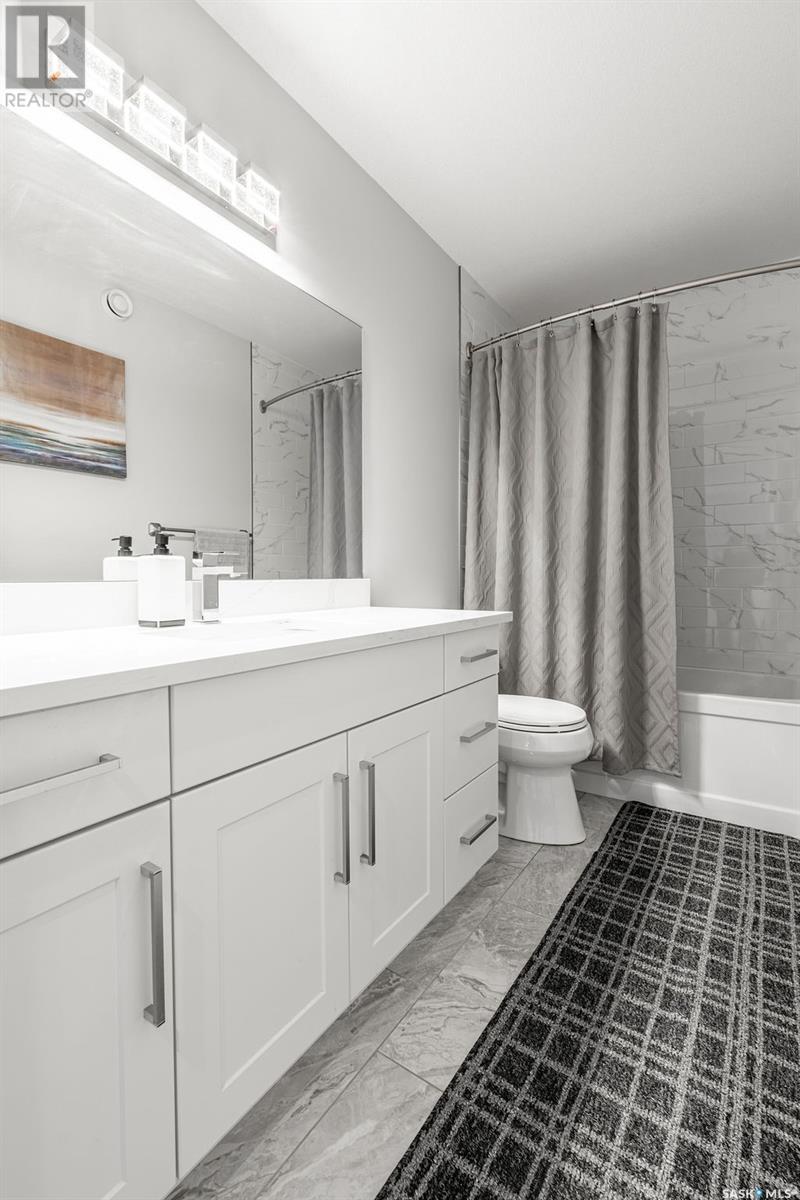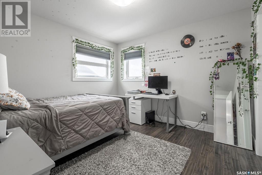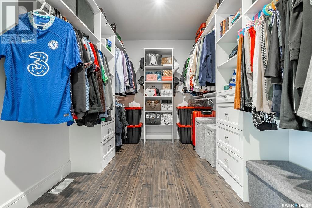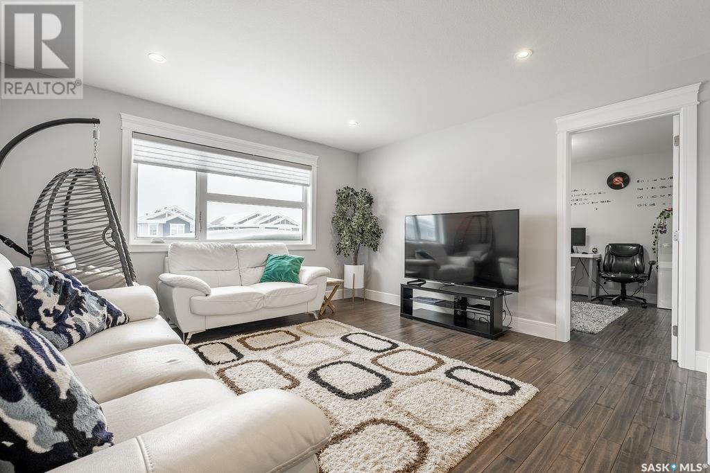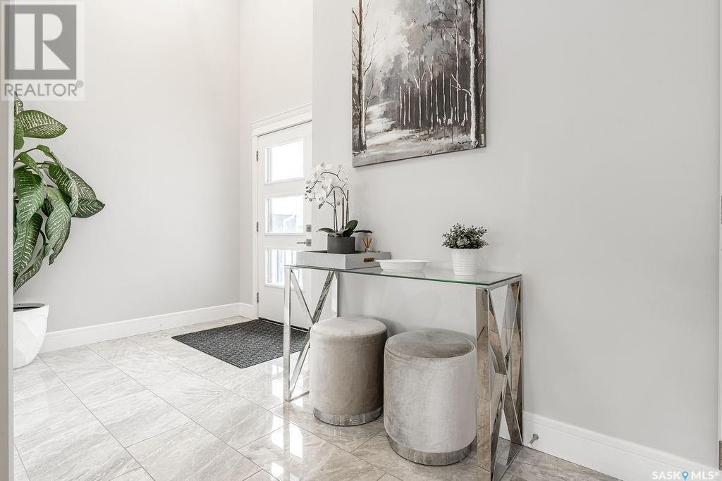 Elegance and function- Are you looking for the full package!? Extra-large 4 car garage, luxury finishes, bonus room, finished basement, oversized en suite and primary bedroom! Look no further, welcome to 515 Kenaschuk Way! No expense has been spared on this luxurious large fully-finished two-story. Porcelain tile and hand scraped hardwood throughout. Walk into a soaring two-story front entryway leading into your open concept main floor. The living room has a beautiful electric fireplace with a stone and live edge mantle and large windows overlooking the covered deck. The kitchen has an 11 foot eat-up island, full height white cabinets, professional-style appliances including induction cooktop and separate full-sized side-by-side fridge & freezer, wall oven, and walk-through pantry. The dining area has a wall of windows overlooking the backyard. Mudroom area to the garage and 2-piece powder room round out this floor. The open staircase over-looks the foyer and leads you to the spacious 2nd floor where you will find a large bonus room, three bedrooms, two bathrooms and a gorgeous laundry room. The primary en-suite has an elegant freestanding tub, walk-in glass shower, marble porcelain tile, in floor heat, a vanity with two sinks, a walk-in closet with fitted drawers and shelving. The basement includes two more bedrooms, family room, perfect wet bar for entertaining, utility room and another four piece bathroom. The backyard is fully fenced and has trees, lawn and a garden. The massive four car heated garage has a door that drives right through to the backyard. This house has been outfitted with blinds, air conditioning and beautiful landscaping. Close to all amenities and easy access to the Chief Mistawasis bridge. Call your agent for your showing today. (id:43042)