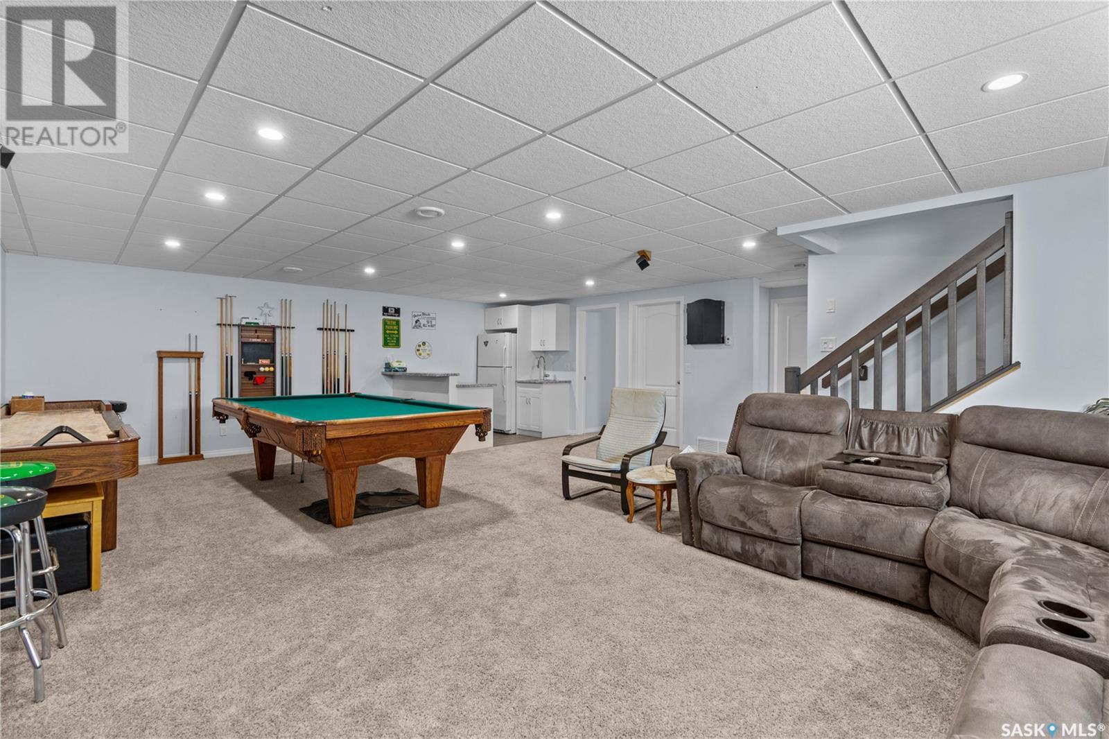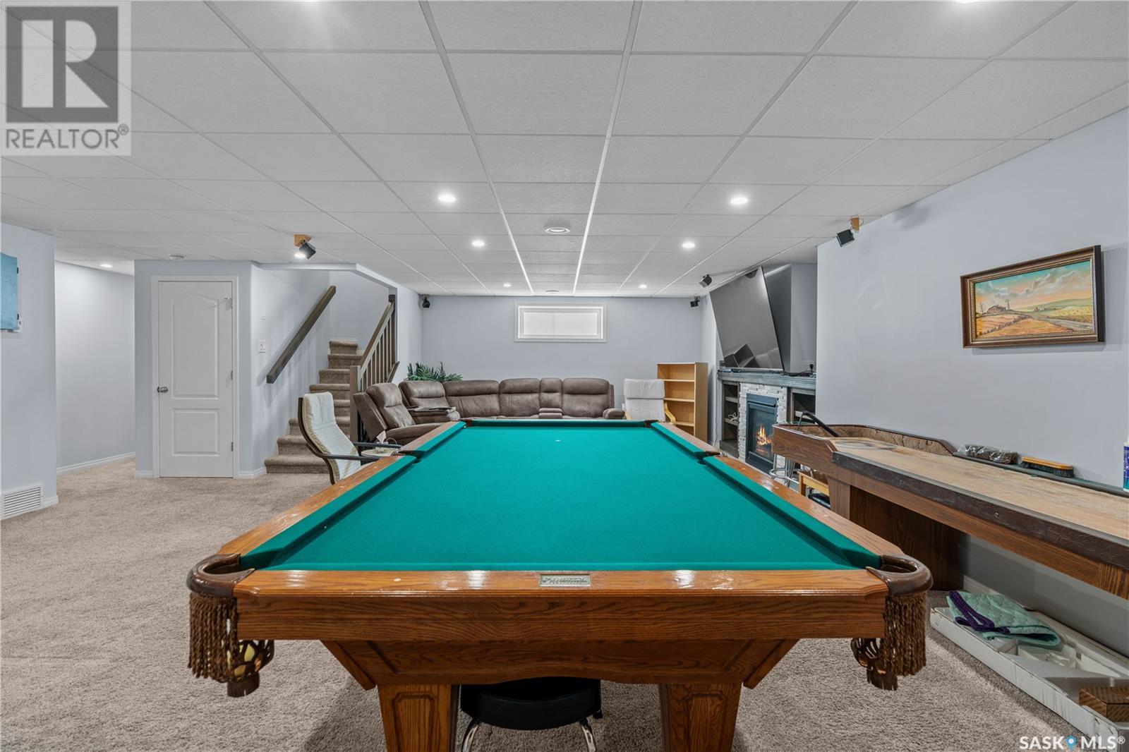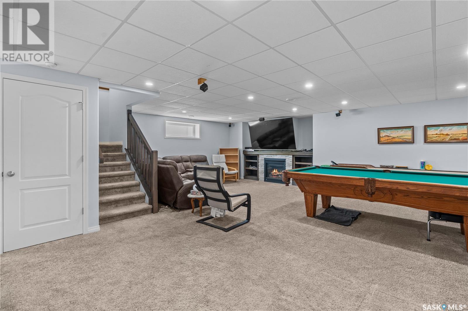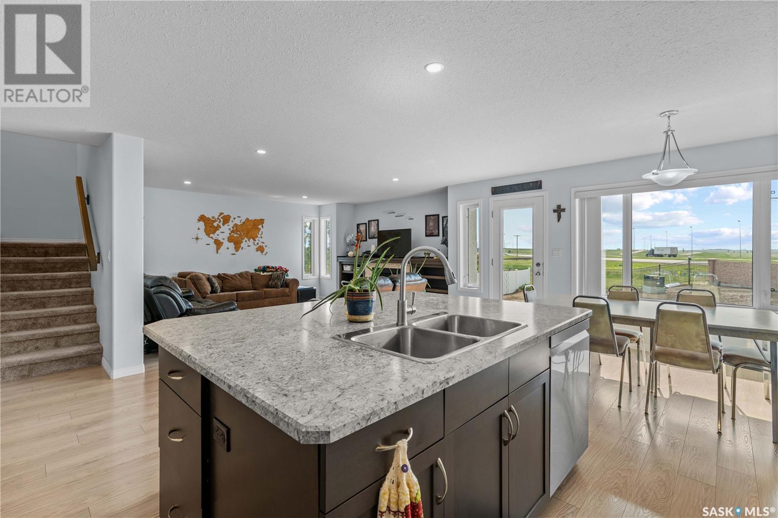 A beautiful, custom built home, made for a large and growing family. Welcome to 5172 Crane Crescent. This huge wedge shaped lot in Harbour Landing is maximized with this custom floorplan to accommodate your family. Upon entering the home you are welcomed with a large entrance and convenient access to a huge (10 x17'6") home office off the front entrance. In further is a beautiful great room with a custom kitchen that entertains a large island, convenient pantry and plenty of room to host meals and gatherings. The living room is centered around a gas fireplace and the dining area can accommodate a large dining room table with easy access to the deck and back yard. Off the front entrance is a convenient powder room and main floor laundry. Upstairs has a rare 5 bedrooms! All of them large in size. The huge (almost 18x13') primary bedroom easily hosts a king size bed and oversized furniture. The ensuite follows suit with dual sinks and a walk-in shower. The rest of the 2nd floor has 4 more large bedrooms and the main 4-piece bath. Downstairs was made for entertaining. Here you will find a large game room that can house a pool table, shuffleboard or what ever games you play. A 2nd gas fireplace makes for a comfortable TV area for family movie night. A wet-bar keeps drinks and snacks convenient for all festivities. Another bedroom and 3 piece bath round out the rest of the basement. Mechanically you will find a high-efficiency furnace, on demand hot water heater and central air. The oversized garage (24'6"x26) adds a 3rd tandem bay down the side of the house. The whole house is placed on a huge (11,787 sq.ft.) lot in Harbour Landing backing onto green space. The yard is fully fenced and ready for family pets but currently unlandscaped and ready for your own design. A recently built, multi-tiered composite deck is ready for your next bbq and family gathering. Book your private viewing today! (id:43042)