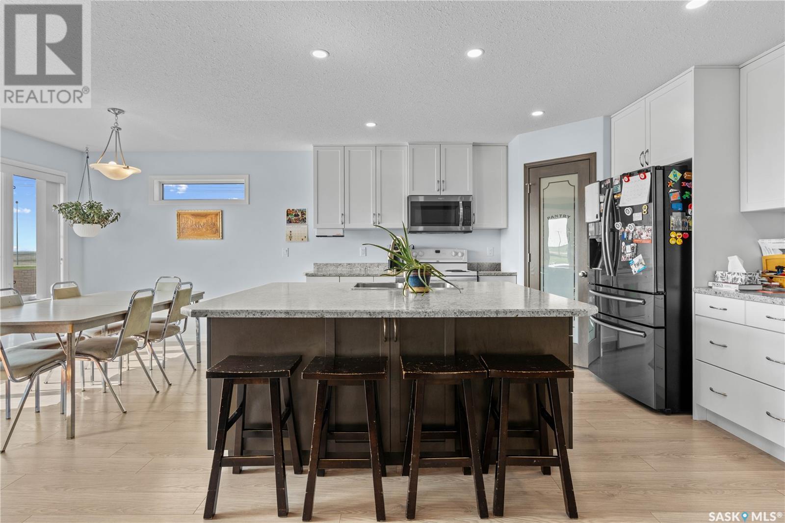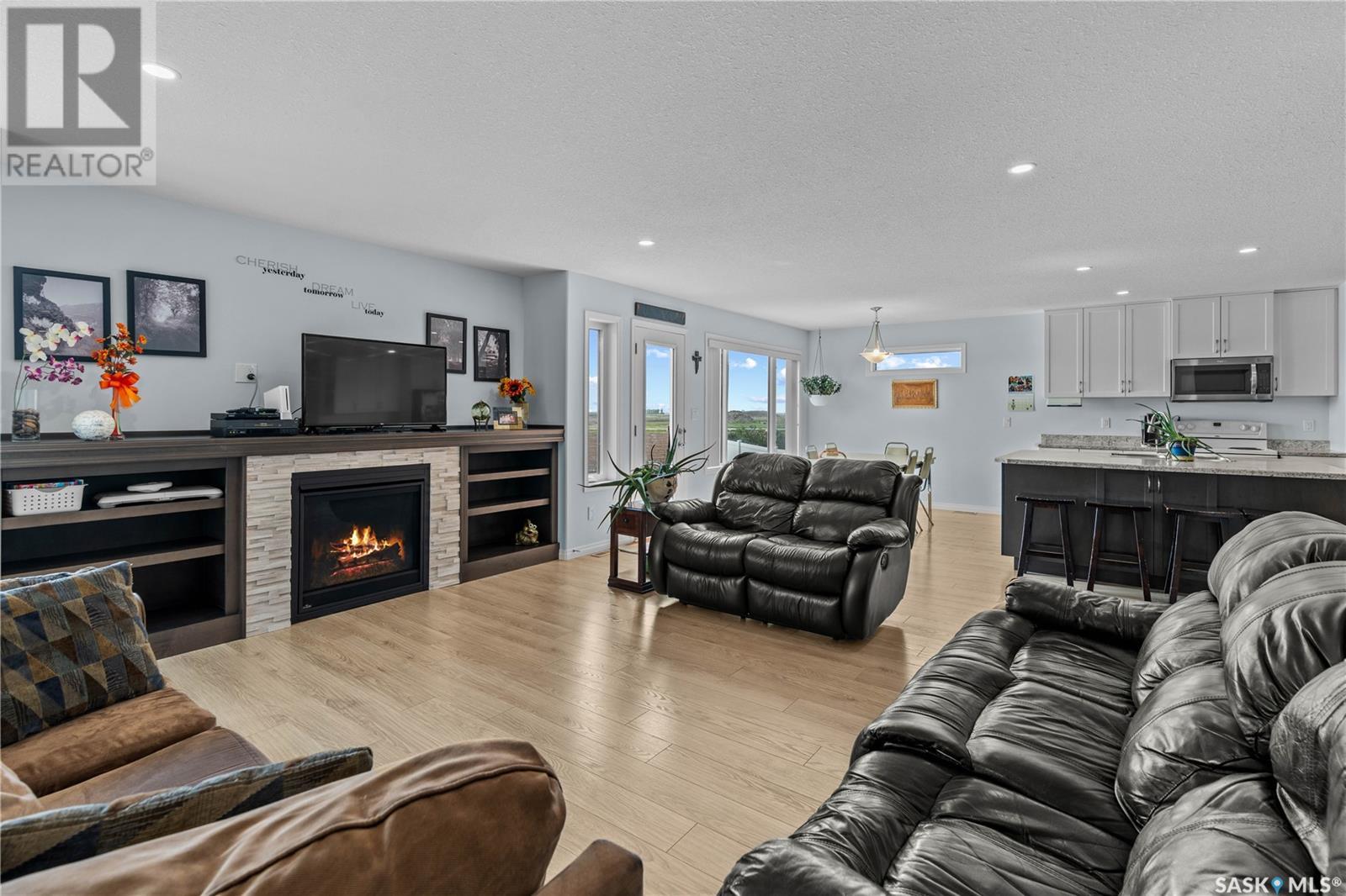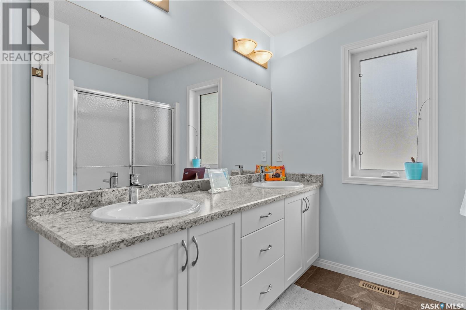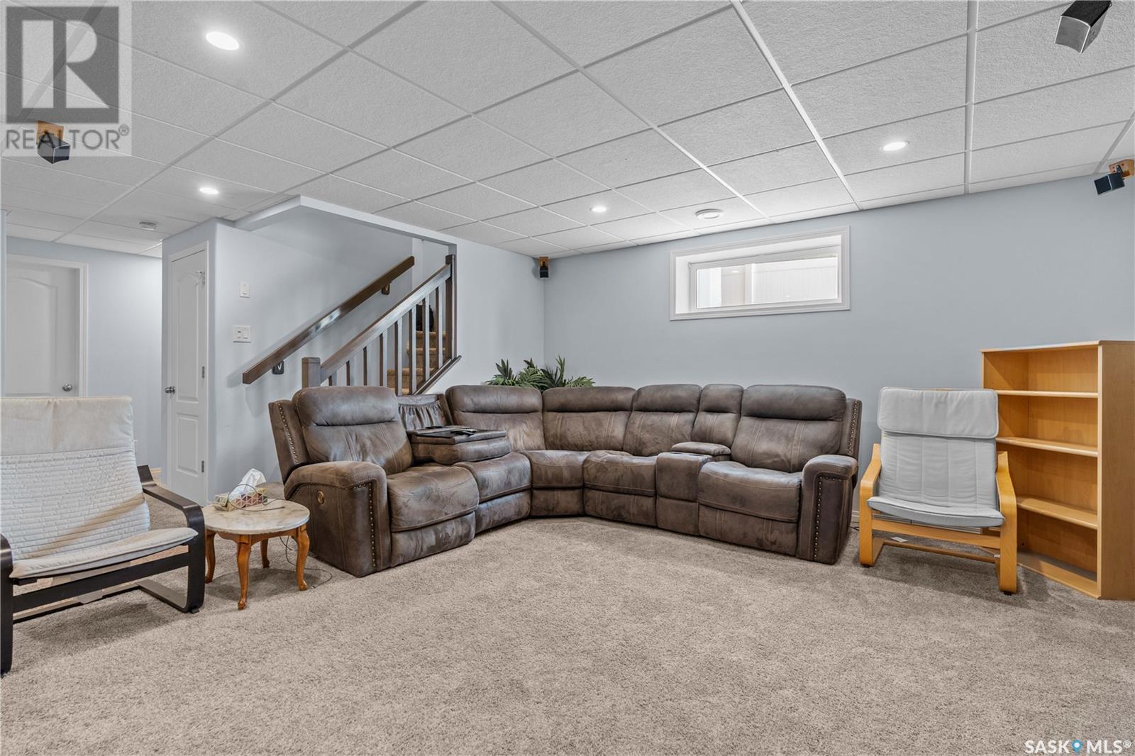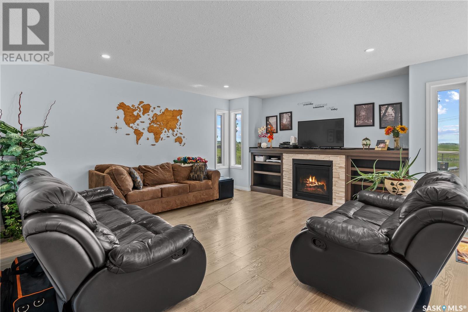 A beautiful, custom built home, made for a large and growing family. Welcome to 5172 Crane Crescent. This huge wedge shaped lot in Harbour Landing is maximized with this custom floorplan to accommodate your family. Upon entering the home you are welcomed with a large entrance and convenient access to a huge (10 x17'6") home office off the front entrance. In further is a beautiful great room with a custom kitchen that entertains a large island, convenient pantry and plenty of room to host meals and gatherings. The living room is centered around a gas fireplace and the dining area can accommodate a large dining room table with easy access to the deck and back yard. Off the front entrance is a convenient powder room and main floor laundry. Upstairs has a rare 5 bedrooms! All of them large in size. The huge (almost 18x13') primary bedroom easily hosts a king size bed and oversized furniture. The ensuite follows suit with dual sinks and a walk-in shower. The rest of the 2nd floor has 4 more large bedrooms and the main 4-piece bath. Downstairs was made for entertaining. Here you will find a large game room that can house a pool table, shuffleboard or what ever games you play. A 2nd gas fireplace makes for a comfortable TV area for family movie night. A wet-bar keeps drinks and snacks convenient for all festivities. Another bedroom and 3 piece bath round out the rest of the basement. Mechanically you will find a high-efficiency furnace, on demand hot water heater and central air. The oversized garage (24'6"x26) adds a 3rd tandem bay down the side of the house. The whole house is placed on a huge (11,787 sq.ft.) lot in Harbour Landing backing onto green space. The yard is fully fenced and ready for family pets but currently unlandscaped and ready for your own design. A recently built, multi-tiered composite deck is ready for your next bbq and family gathering. Book your private viewing today! (id:43042)