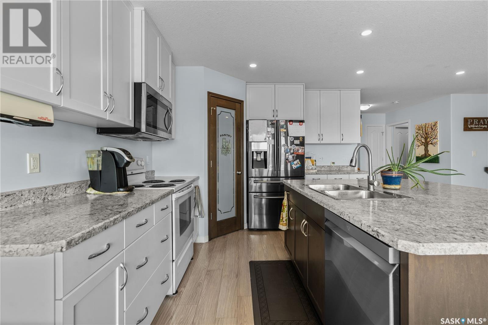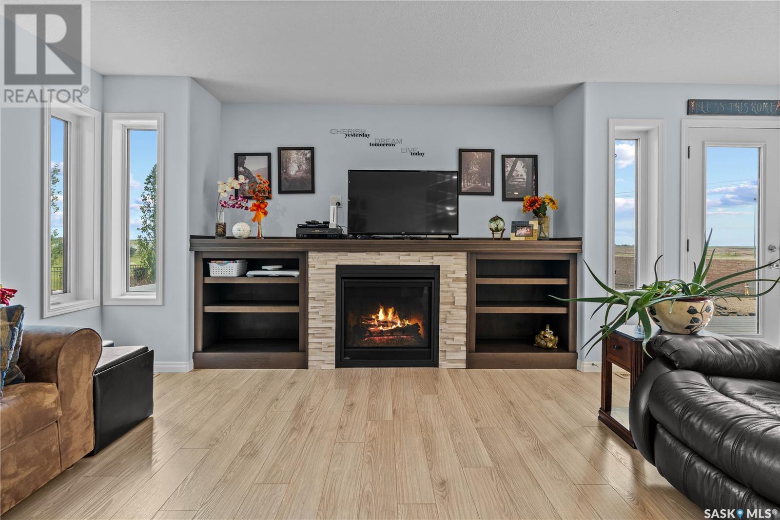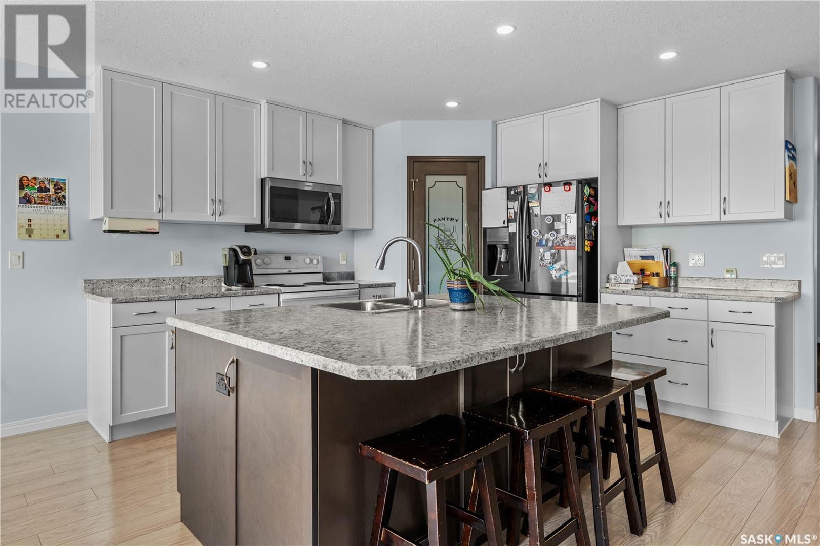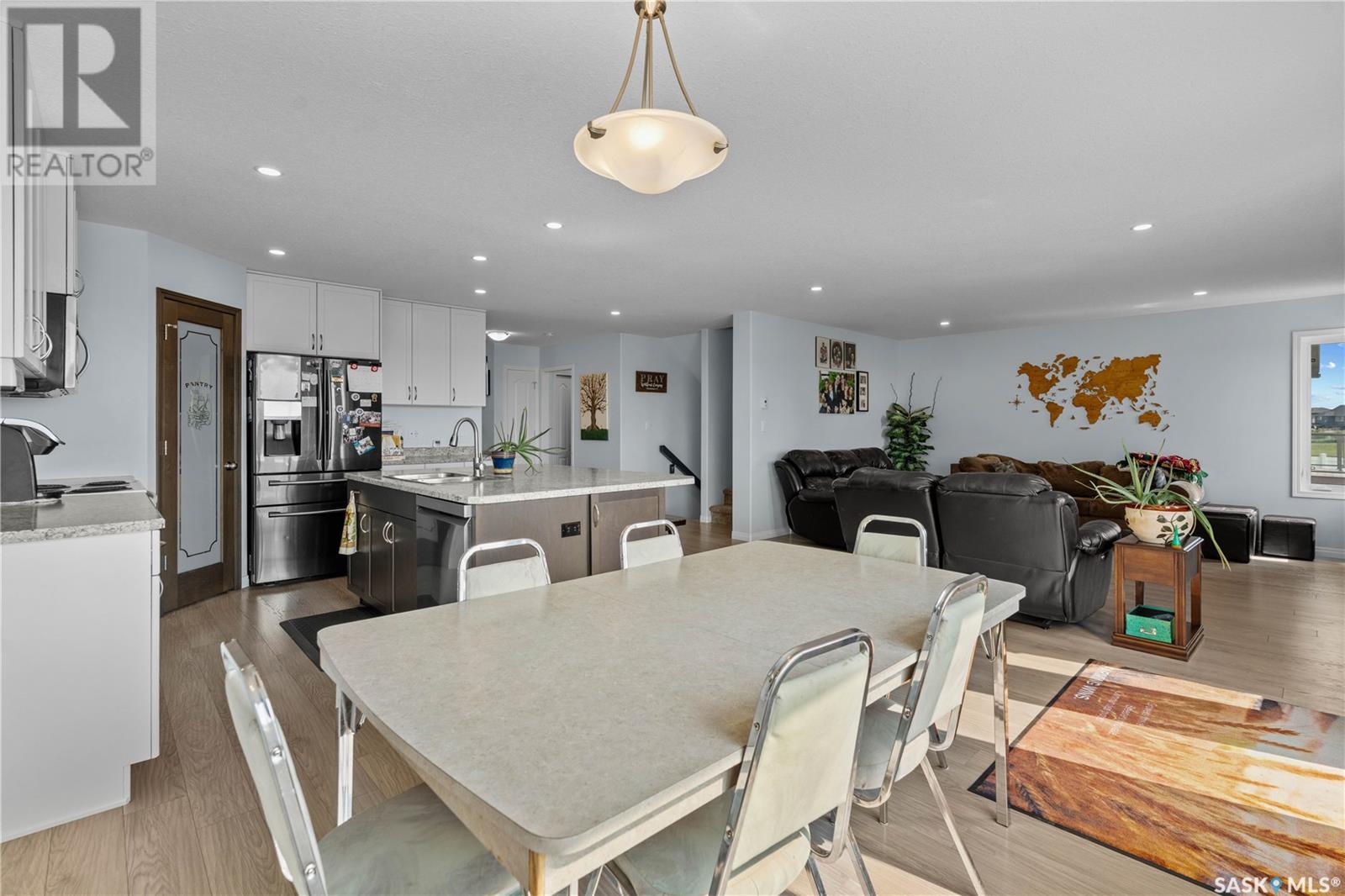 A beautiful, custom built home, made for a large and growing family. Welcome to 5172 Crane Crescent. This huge wedge shaped lot in Harbour Landing is maximized with this custom floorplan to accommodate your family. Upon entering the home you are welcomed with a large entrance and convenient access to a huge (10 x17'6") home office off the front entrance. In further is a beautiful great room with a custom kitchen that entertains a large island, convenient pantry and plenty of room to host meals and gatherings. The living room is centered around a gas fireplace and the dining area can accommodate a large dining room table with easy access to the deck and back yard. Off the front entrance is a convenient powder room and main floor laundry. Upstairs has a rare 5 bedrooms! All of them large in size. The huge (almost 18x13') primary bedroom easily hosts a king size bed and oversized furniture. The ensuite follows suit with dual sinks and a walk-in shower. The rest of the 2nd floor has 4 more large bedrooms and the main 4-piece bath. Downstairs was made for entertaining. Here you will find a large game room that can house a pool table, shuffleboard or what ever games you play. A 2nd gas fireplace makes for a comfortable TV area for family movie night. A wet-bar keeps drinks and snacks convenient for all festivities. Another bedroom and 3 piece bath round out the rest of the basement. Mechanically you will find a high-efficiency furnace, on demand hot water heater and central air. The oversized garage (24'6"x26) adds a 3rd tandem bay down the side of the house. The whole house is placed on a huge (11,787 sq.ft.) lot in Harbour Landing backing onto green space. The yard is fully fenced and ready for family pets but currently unlandscaped and ready for your own design. A recently built, multi-tiered composite deck is ready for your next bbq and family gathering. Book your private viewing today! (id:43042)