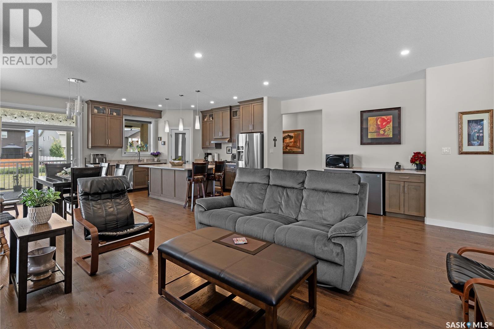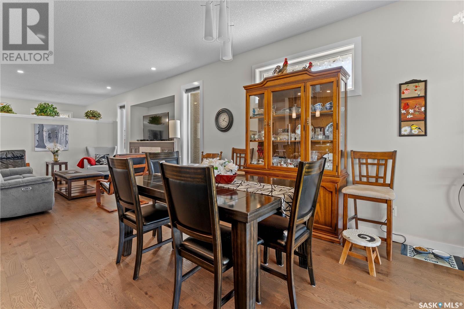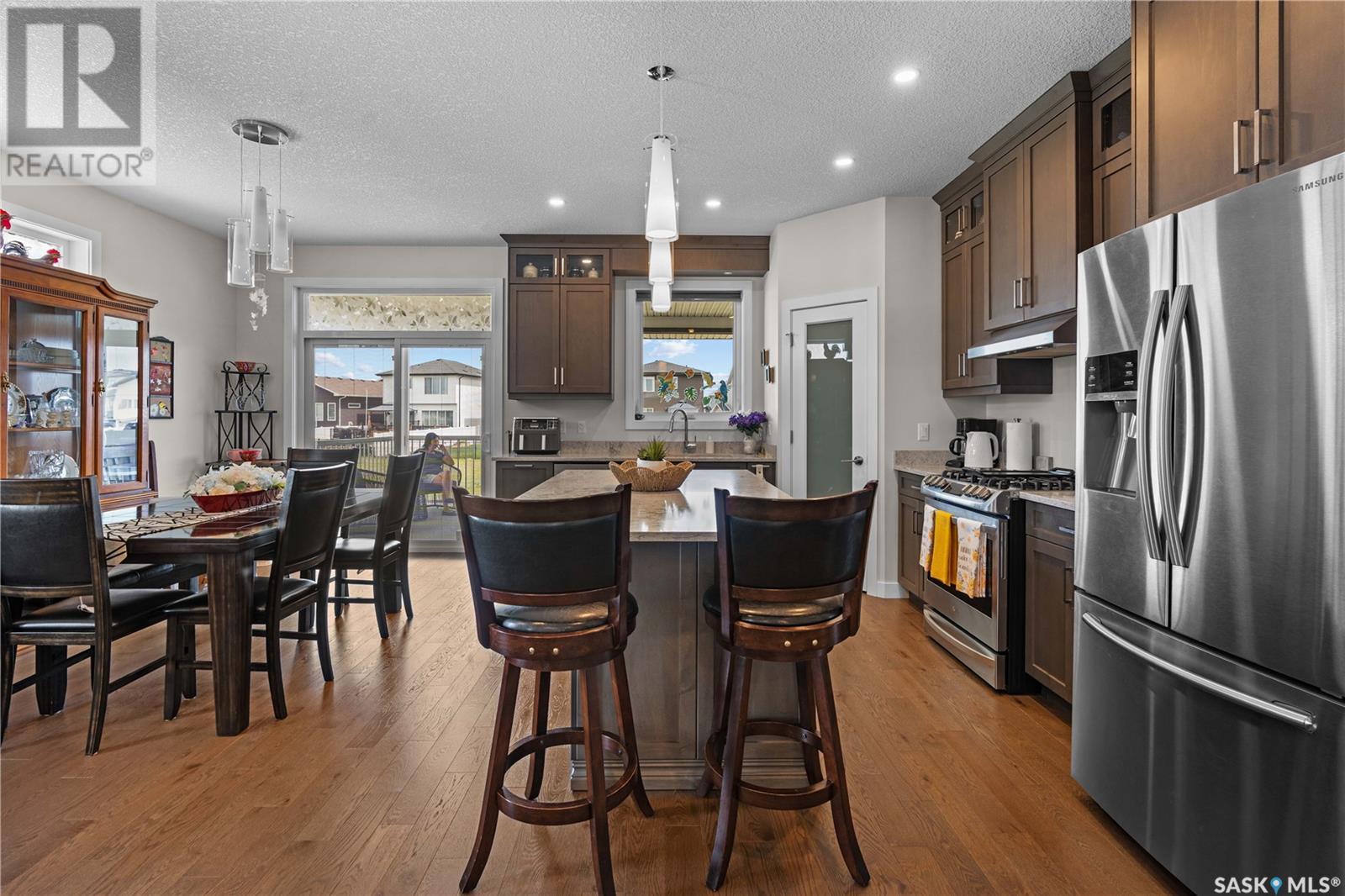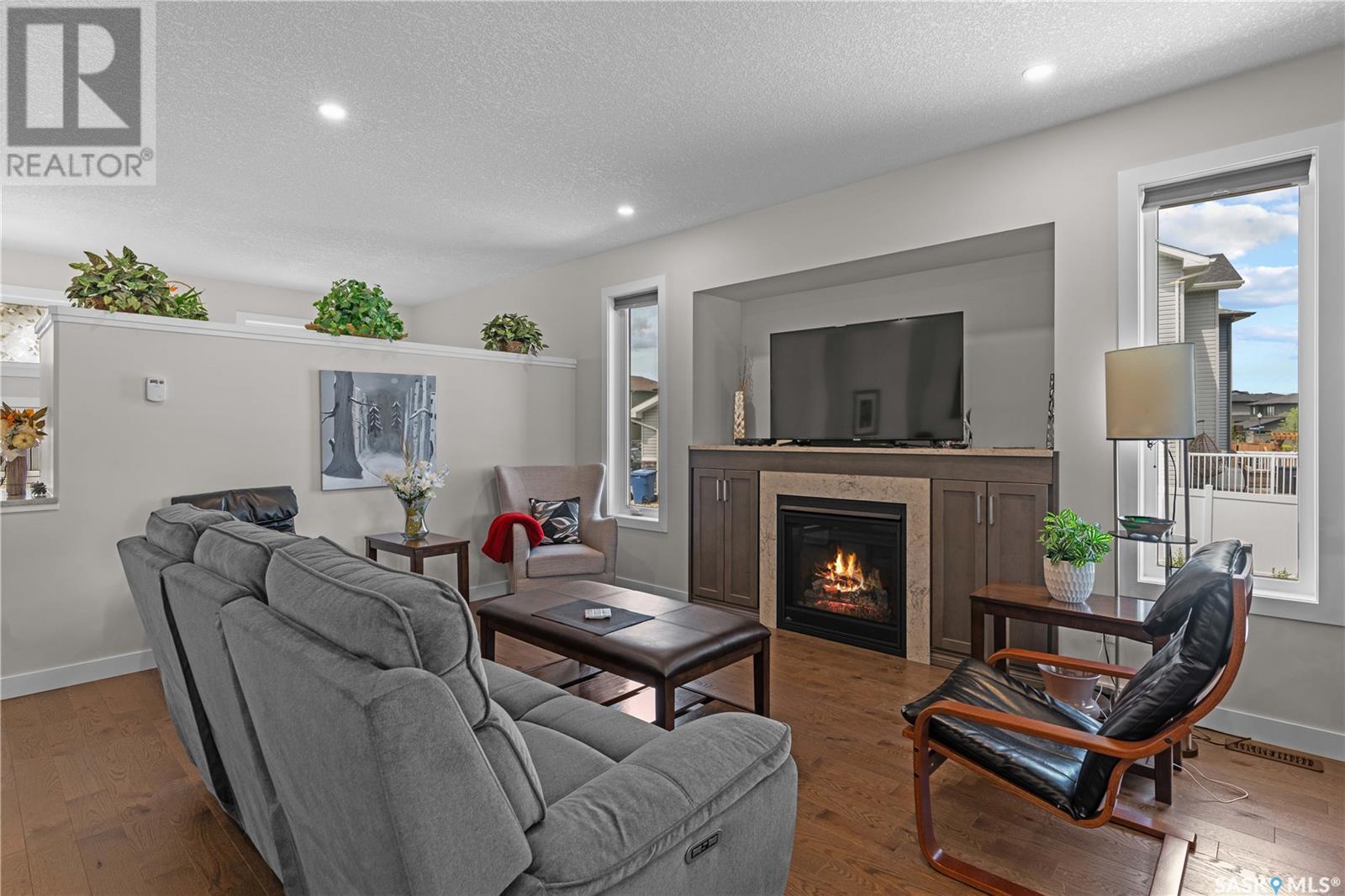 Welcome to 5206 Green Cr E. This spacious and beautiful bungalow is located in the Greens on Gardiner. The home is approximately 1610 square feet and is welcoming and bright from the moment you enter into the large foyer area! This home has been built with pride and has many wonderful features including quartz countertops that match the gas fireplace and gorgeous hardwood flooring throughout most of the main level. From the front entrance you come into a very large great room area that is open to the beautiful kitchen and adjoining dining area. From the dining area you can exit onto the covered deck that is completely maintenance free and is constructed with dura deck covering and metal railings. This is a wonderful place to have morning coffee and the best part is that it backs onto the walking path. Back inside, you find 3 good sized bedrooms. The master is a good size and has a 4 piece ensuite and walk-in closet! The main floor bathroom and separate laundry area complete this level of the home. There is direct entry to the fully insulated and heated over sized double garage. The basement is fully finished with large rec-room, wet bar, 3 nice sized bedrooms 4pc bathroom and generous storage room. This home has high end finishings throughout and is ready for its new family. It is close to all amenities and children can take the walking path to school! A must see! (id:43042)