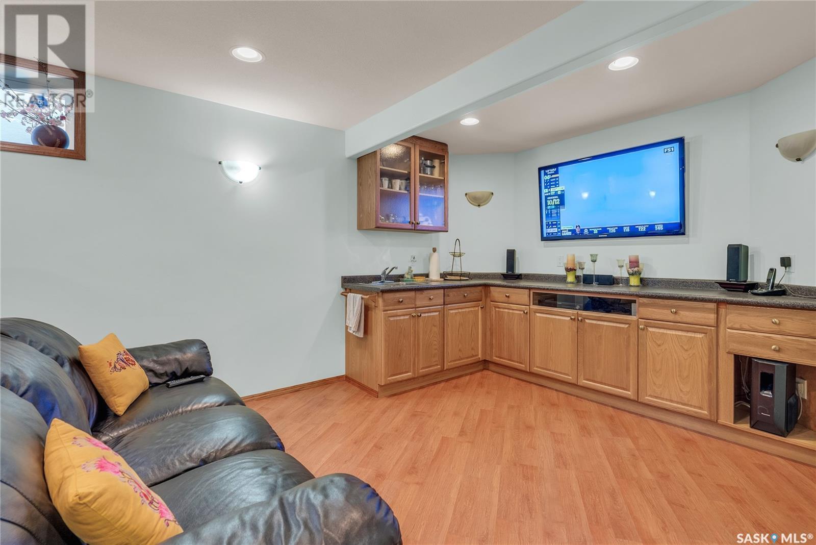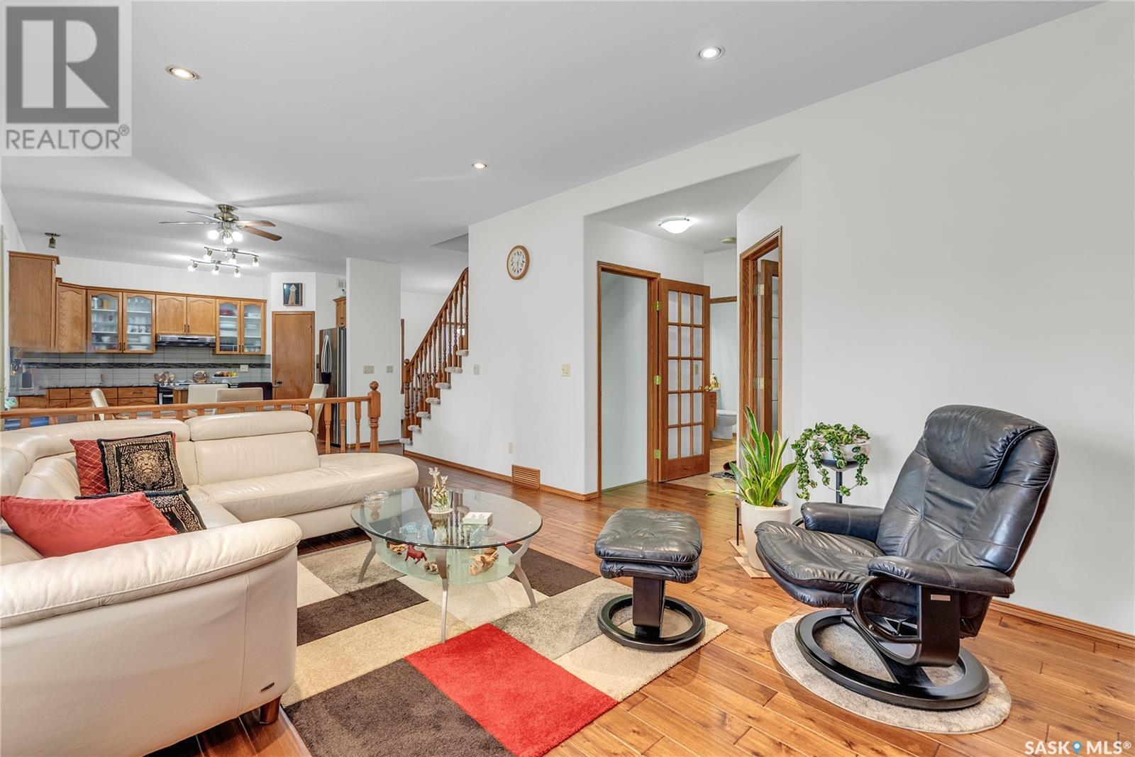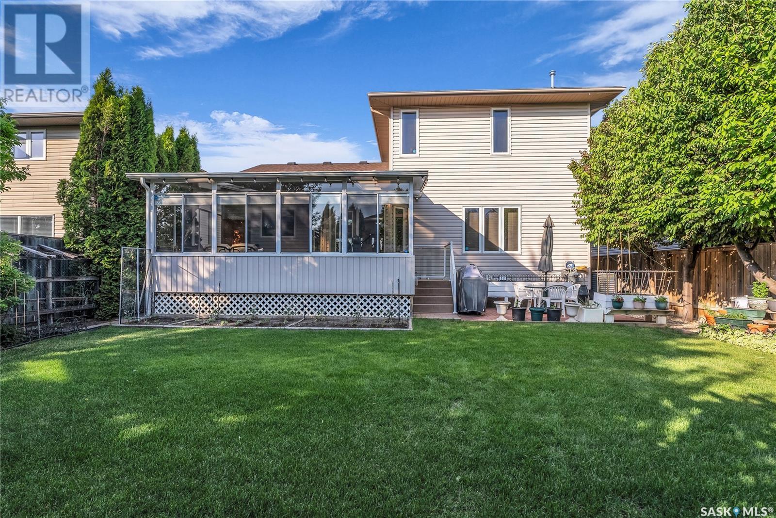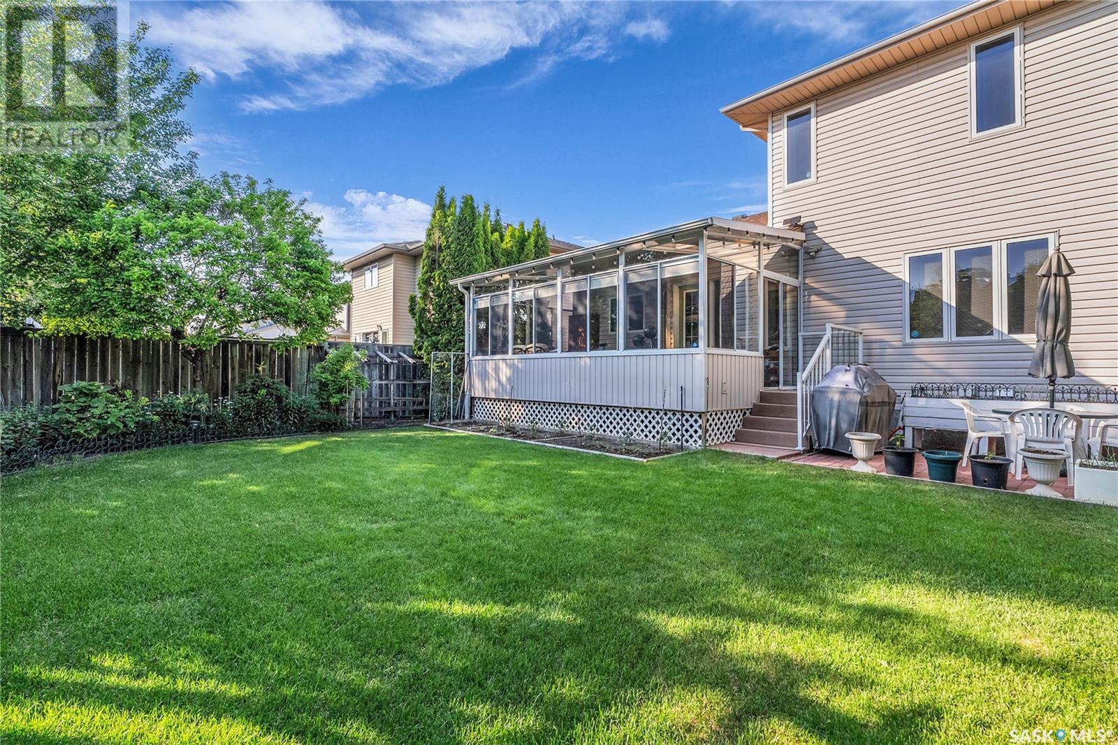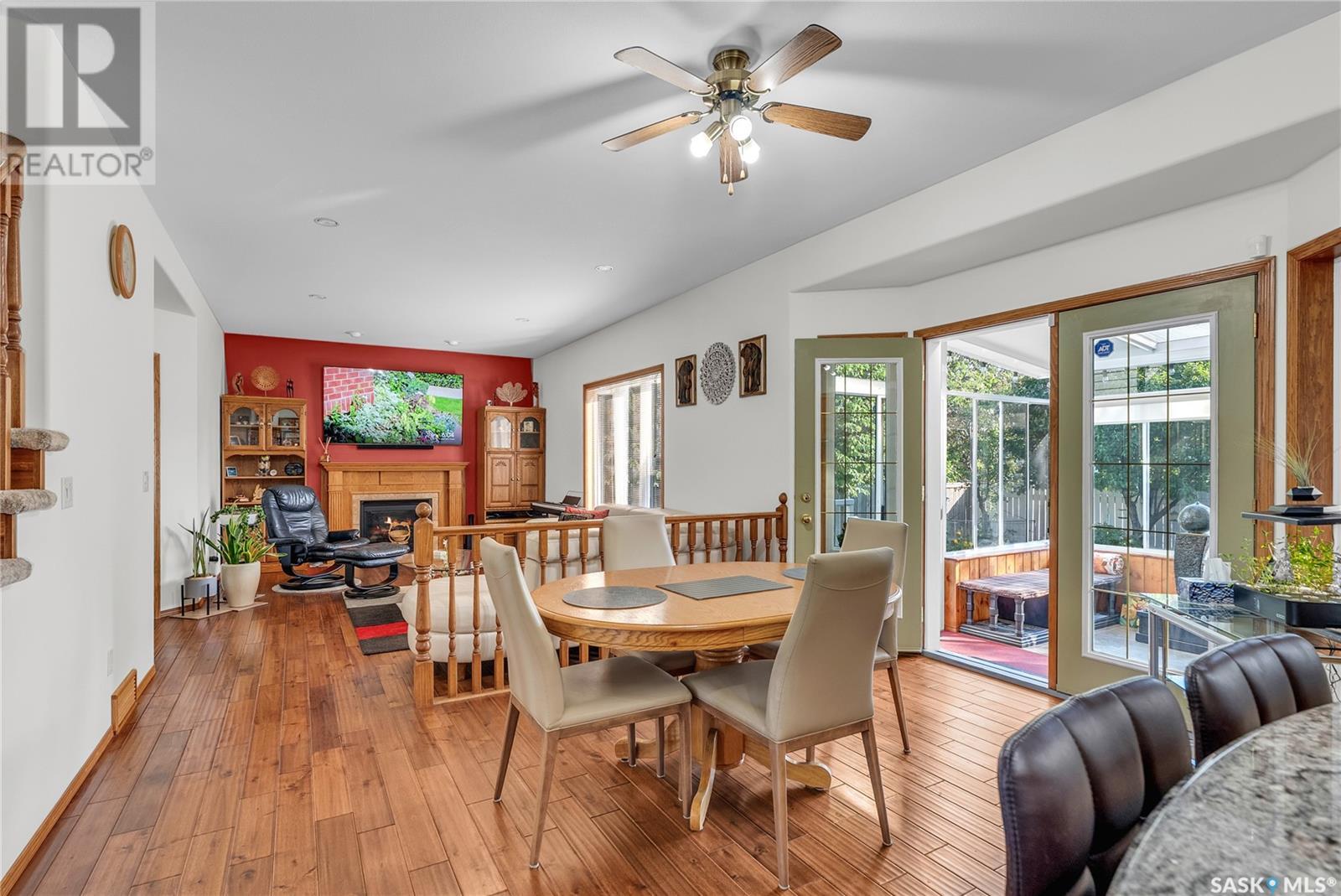 Welcome to 531 Kucey Crescent – A Beautifully Updated Family Home in Arbor Creek. Ideally located in the highly sought-after neighborhood of Arbor Creek, this spacious 1,893 sq ft two-storey split is just steps from Arbor Creek Park. Inside, you're greeted by a bright and spacious foyer that flows into a bayed front living room and a formal dining area—perfect for entertaining. The main floor showcases beautiful hardwood and tile flooring throughout. The oak kitchen offers both style and functionality, featuring granite countertops, a Sil-Granite sink, tiled backsplash, ample cabinetry (including frosted glass accents), an island with seating and pendant lighting, plus stove, dishwasher, fridge & hood fan. Enjoy casual meals in the bayed dining nook with direct access to the sunroom and mature backyard—complete with a brick patio, and lush landscaping. The cozy family room features a gas fireplace with oak mantle and tiled hearth, recessed lighting, and a welcoming ambiance. A main-floor den, 2-piece powder room, and a laundry room with pocket door and built-in shelving round out the main level.Upstairs, the primary suite offers hardwood floors, a walk-in closet, and a 3-piece ensuite with a tile and glass shower featuring a body sprayer. Two additional bedrooms and a beautifully updated 3-piece main bath—with a 5-foot tile and glass shower also equipped with a body sprayer—complete the upper level. The fully developed basement provides even more space with a large family room with wet bar, games area, two additional bedrooms, a 3-piece bath with jetted tub and handheld shower, plus dedicated storage and utility room. Additional features include a 24x22 attached garage, central air conditioning, central vac, window treatments, and great curb appeal. (id:43042)