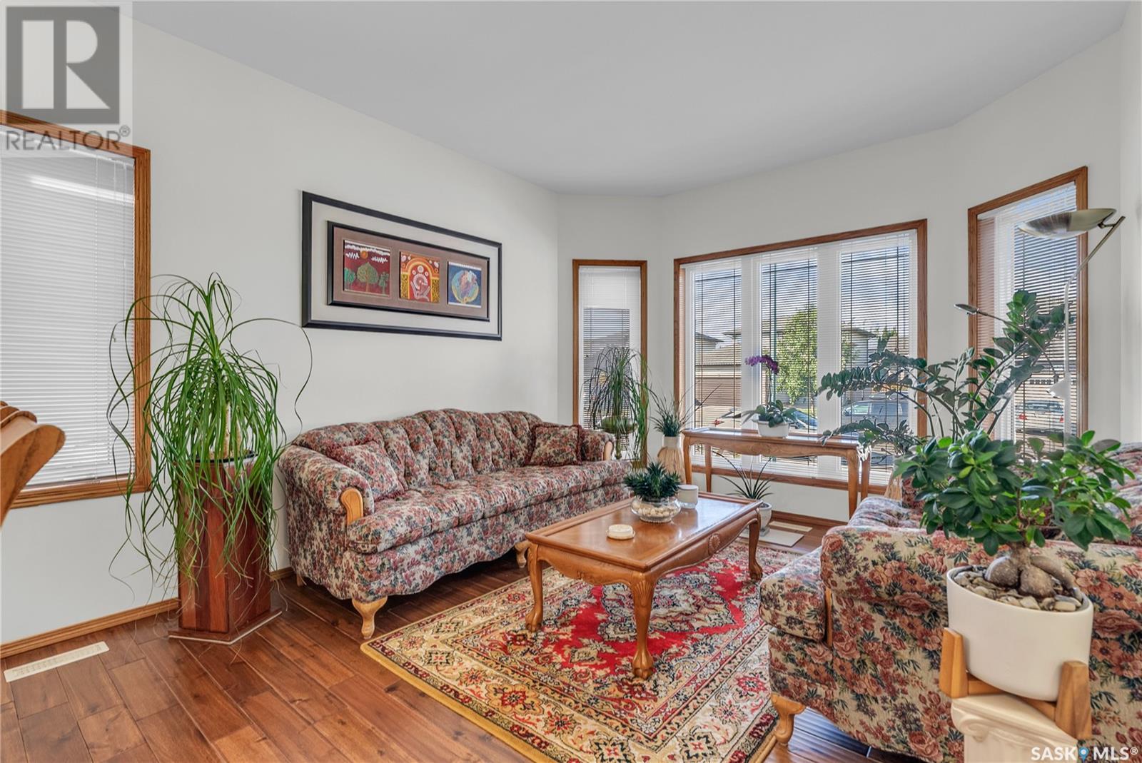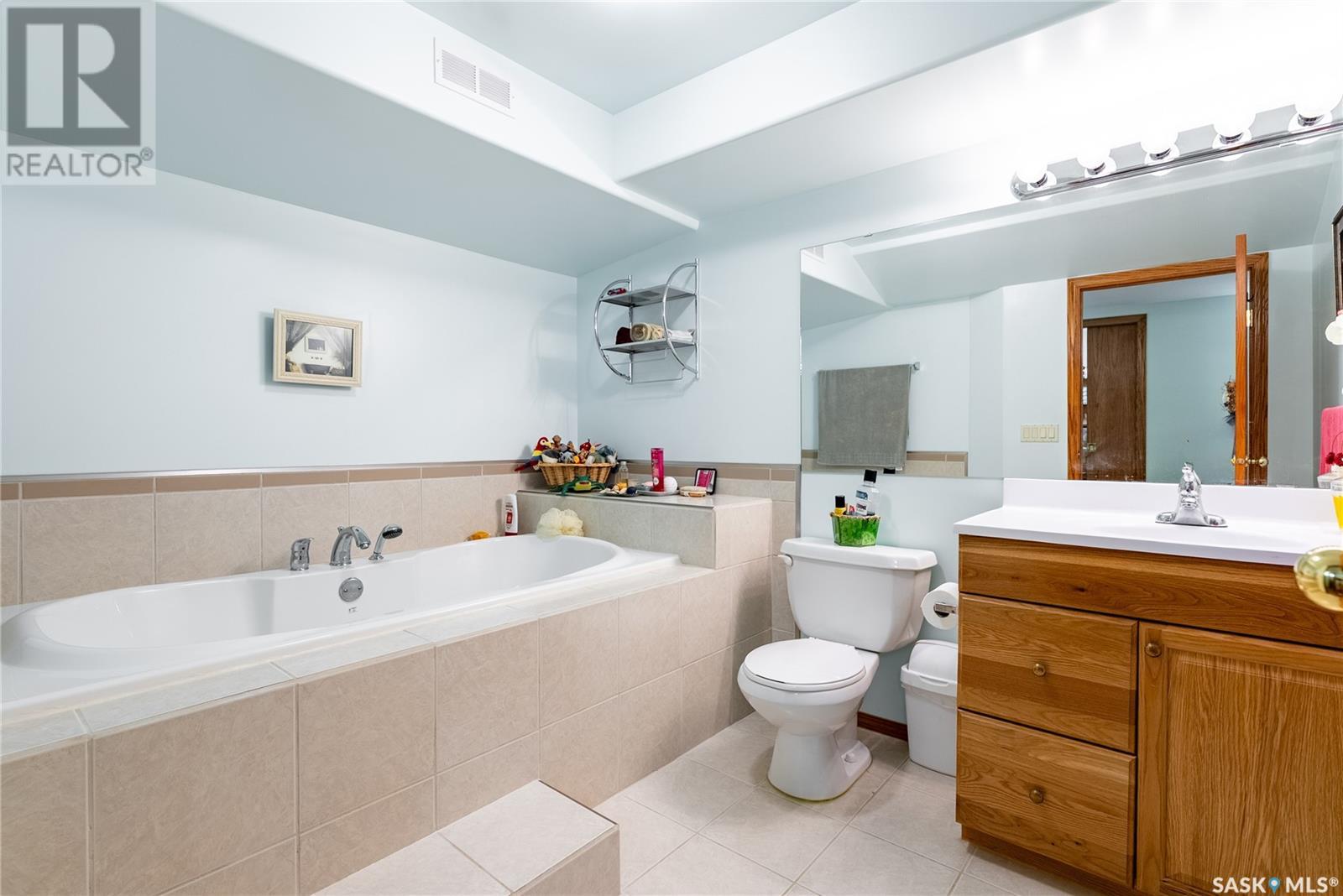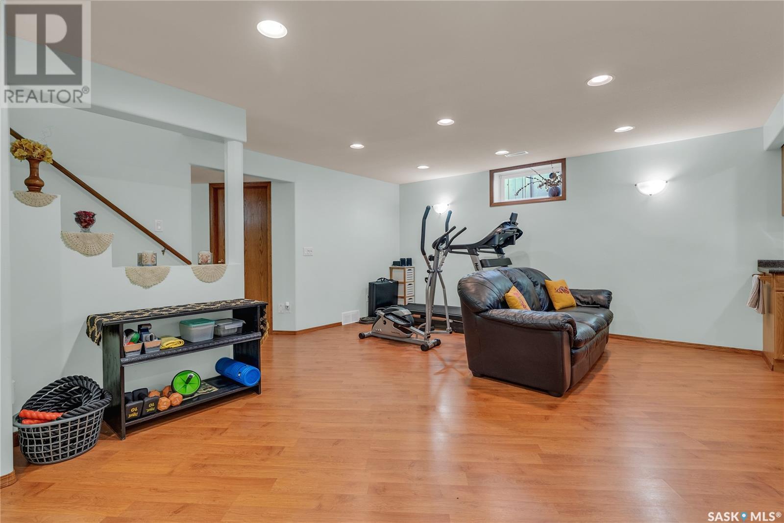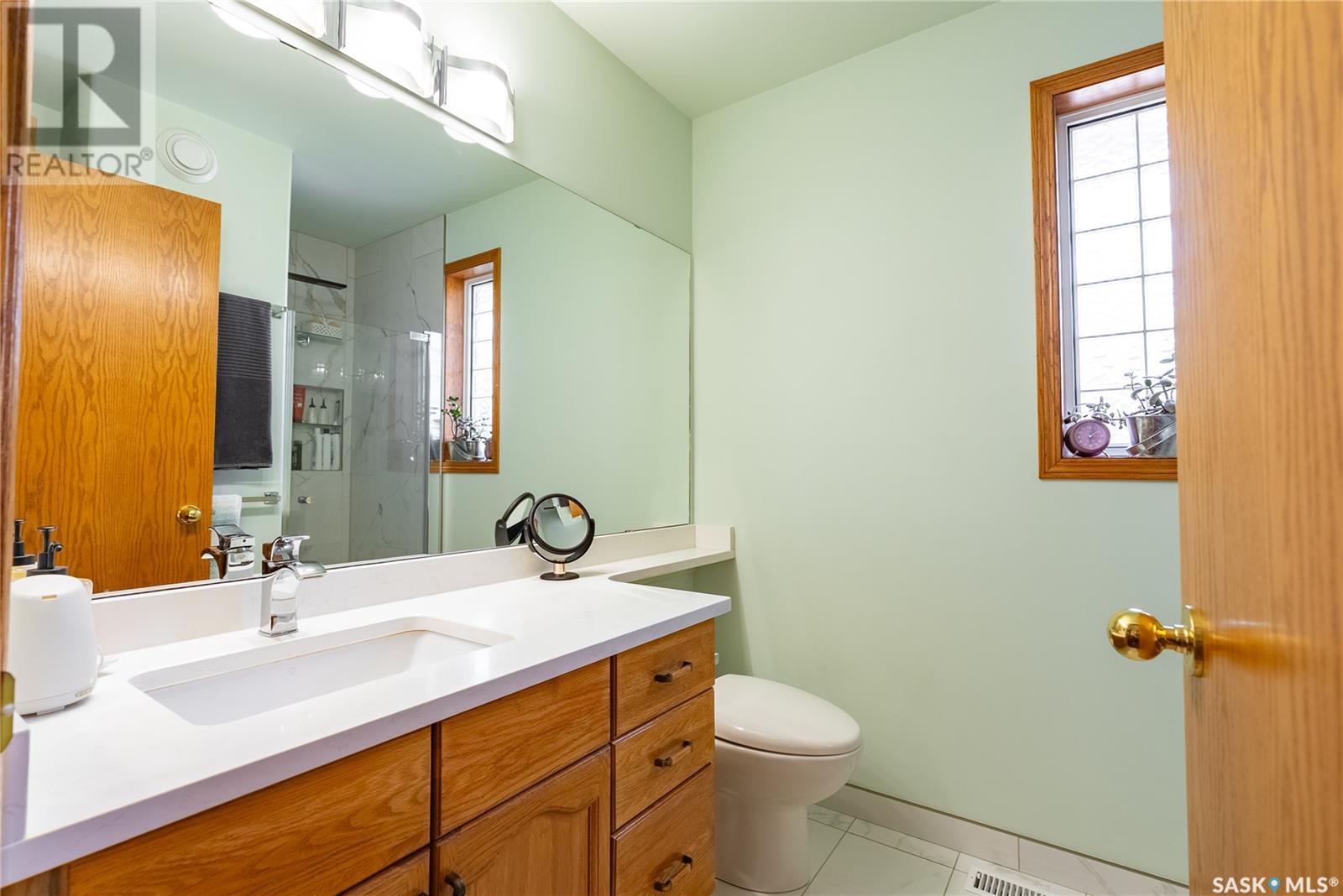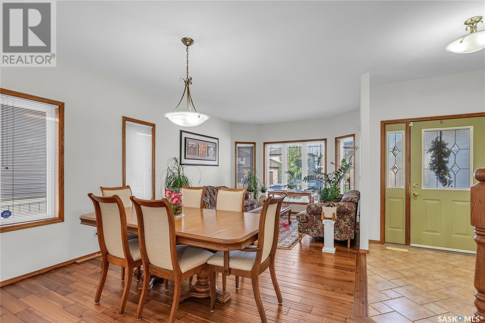 Welcome to 531 Kucey Crescent – A Beautifully Updated Family Home in Arbor Creek. Ideally located in the highly sought-after neighborhood of Arbor Creek, this spacious 1,893 sq ft two-storey split is just steps from Arbor Creek Park. Inside, you're greeted by a bright and spacious foyer that flows into a bayed front living room and a formal dining area—perfect for entertaining. The main floor showcases beautiful hardwood and tile flooring throughout. The oak kitchen offers both style and functionality, featuring granite countertops, a Sil-Granite sink, tiled backsplash, ample cabinetry (including frosted glass accents), an island with seating and pendant lighting, plus stove, dishwasher, fridge & hood fan. Enjoy casual meals in the bayed dining nook with direct access to the sunroom and mature backyard—complete with a brick patio, and lush landscaping. The cozy family room features a gas fireplace with oak mantle and tiled hearth, recessed lighting, and a welcoming ambiance. A main-floor den, 2-piece powder room, and a laundry room with pocket door and built-in shelving round out the main level.Upstairs, the primary suite offers hardwood floors, a walk-in closet, and a 3-piece ensuite with a tile and glass shower featuring a body sprayer. Two additional bedrooms and a beautifully updated 3-piece main bath—with a 5-foot tile and glass shower also equipped with a body sprayer—complete the upper level. The fully developed basement provides even more space with a large family room with wet bar, games area, two additional bedrooms, a 3-piece bath with jetted tub and handheld shower, plus dedicated storage and utility room. Additional features include a 24x22 attached garage, central air conditioning, central vac, window treatments, and great curb appeal. (id:43042)