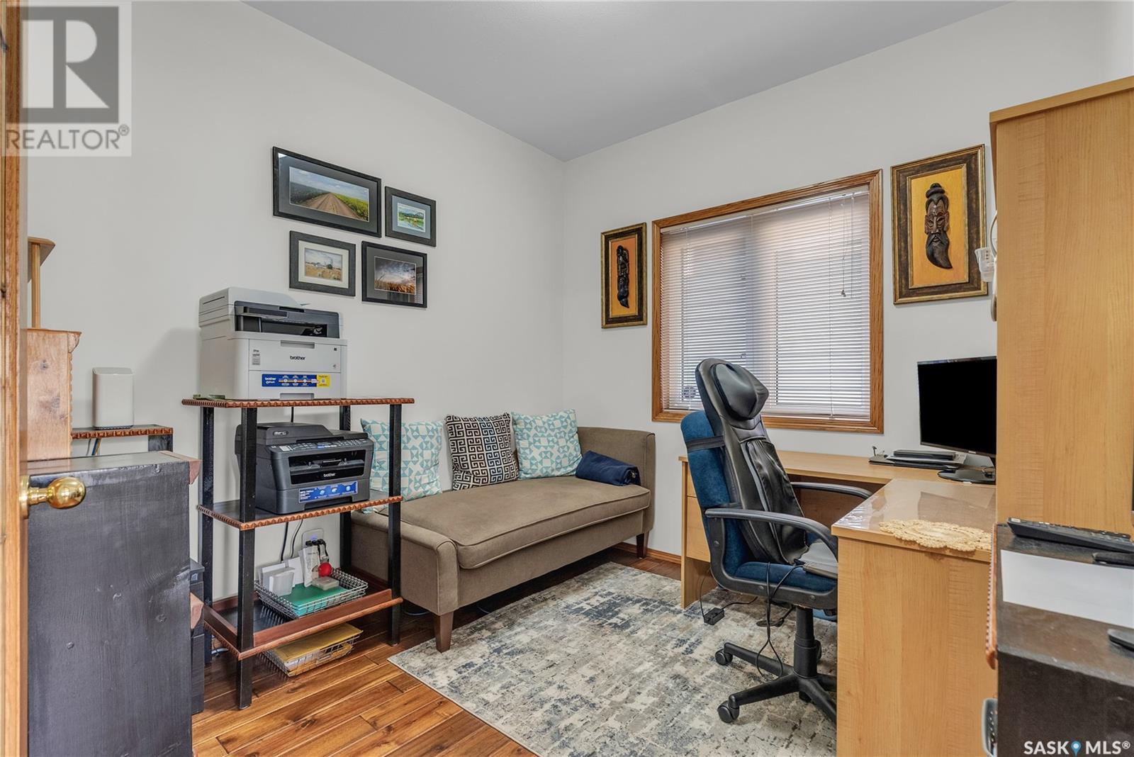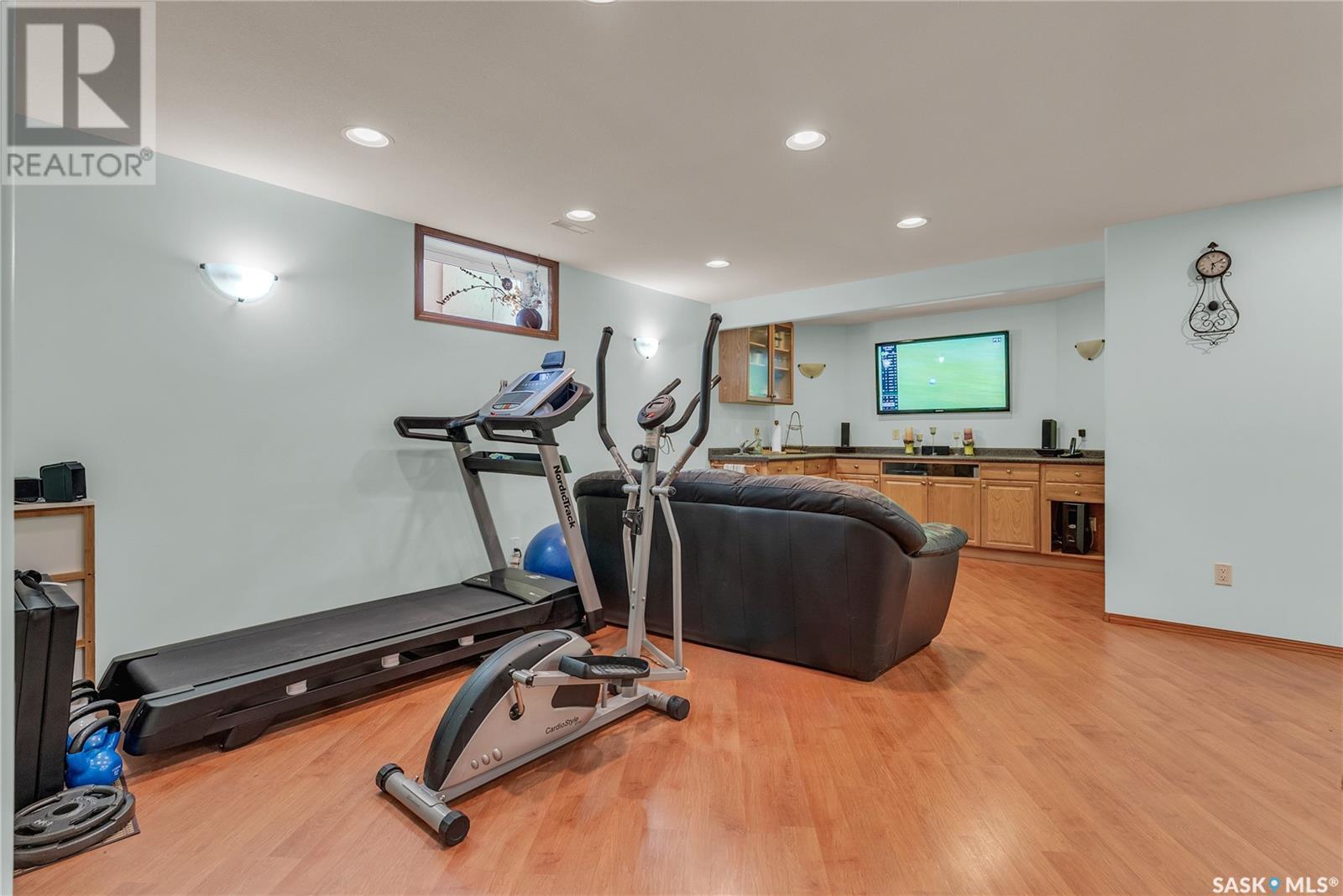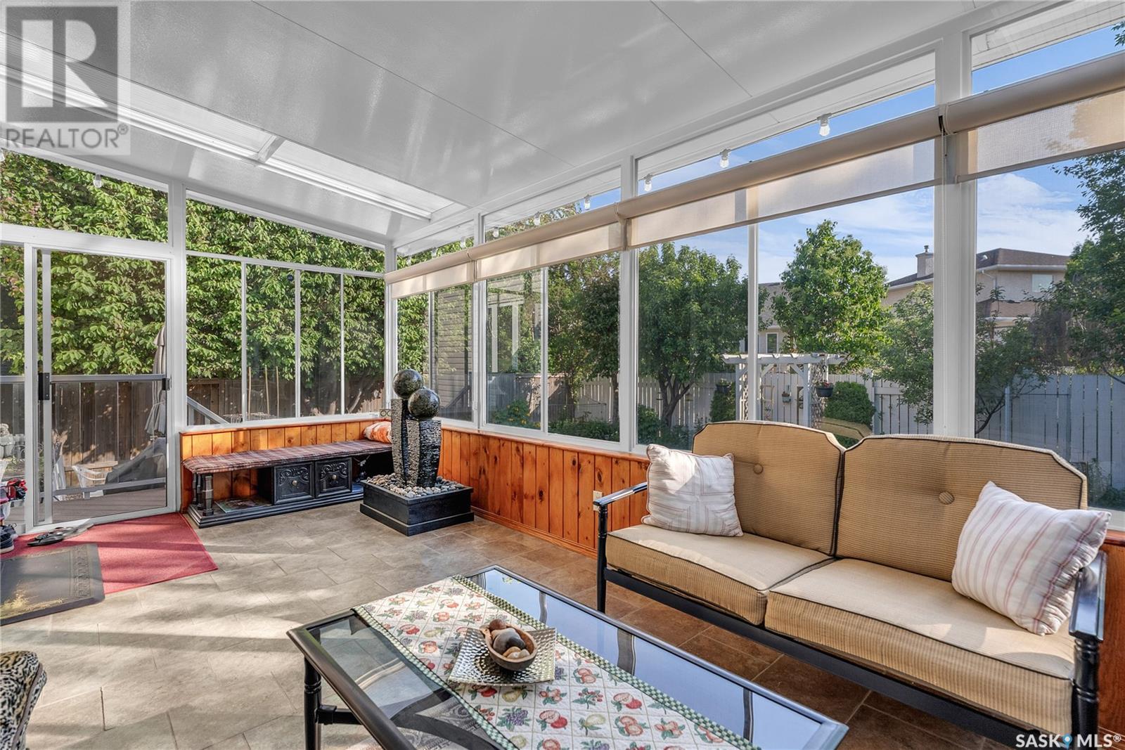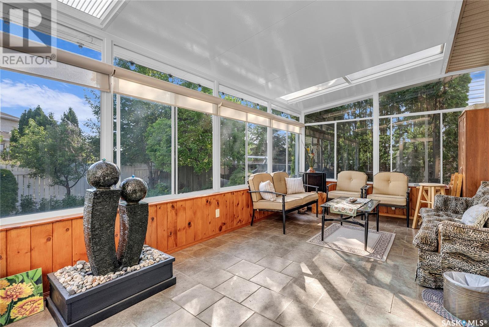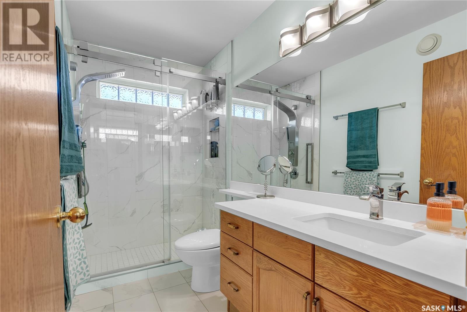 Welcome to 531 Kucey Crescent – A Beautifully Updated Family Home in Arbor Creek. Ideally located in the highly sought-after neighborhood of Arbor Creek, this spacious 1,893 sq ft two-storey split is just steps from Arbor Creek Park. Inside, you're greeted by a bright and spacious foyer that flows into a bayed front living room and a formal dining area—perfect for entertaining. The main floor showcases beautiful hardwood and tile flooring throughout. The oak kitchen offers both style and functionality, featuring granite countertops, a Sil-Granite sink, tiled backsplash, ample cabinetry (including frosted glass accents), an island with seating and pendant lighting, plus stove, dishwasher, fridge & hood fan. Enjoy casual meals in the bayed dining nook with direct access to the sunroom and mature backyard—complete with a brick patio, and lush landscaping. The cozy family room features a gas fireplace with oak mantle and tiled hearth, recessed lighting, and a welcoming ambiance. A main-floor den, 2-piece powder room, and a laundry room with pocket door and built-in shelving round out the main level.Upstairs, the primary suite offers hardwood floors, a walk-in closet, and a 3-piece ensuite with a tile and glass shower featuring a body sprayer. Two additional bedrooms and a beautifully updated 3-piece main bath—with a 5-foot tile and glass shower also equipped with a body sprayer—complete the upper level. The fully developed basement provides even more space with a large family room with wet bar, games area, two additional bedrooms, a 3-piece bath with jetted tub and handheld shower, plus dedicated storage and utility room. Additional features include a 24x22 attached garage, central air conditioning, central vac, window treatments, and great curb appeal. (id:43042)