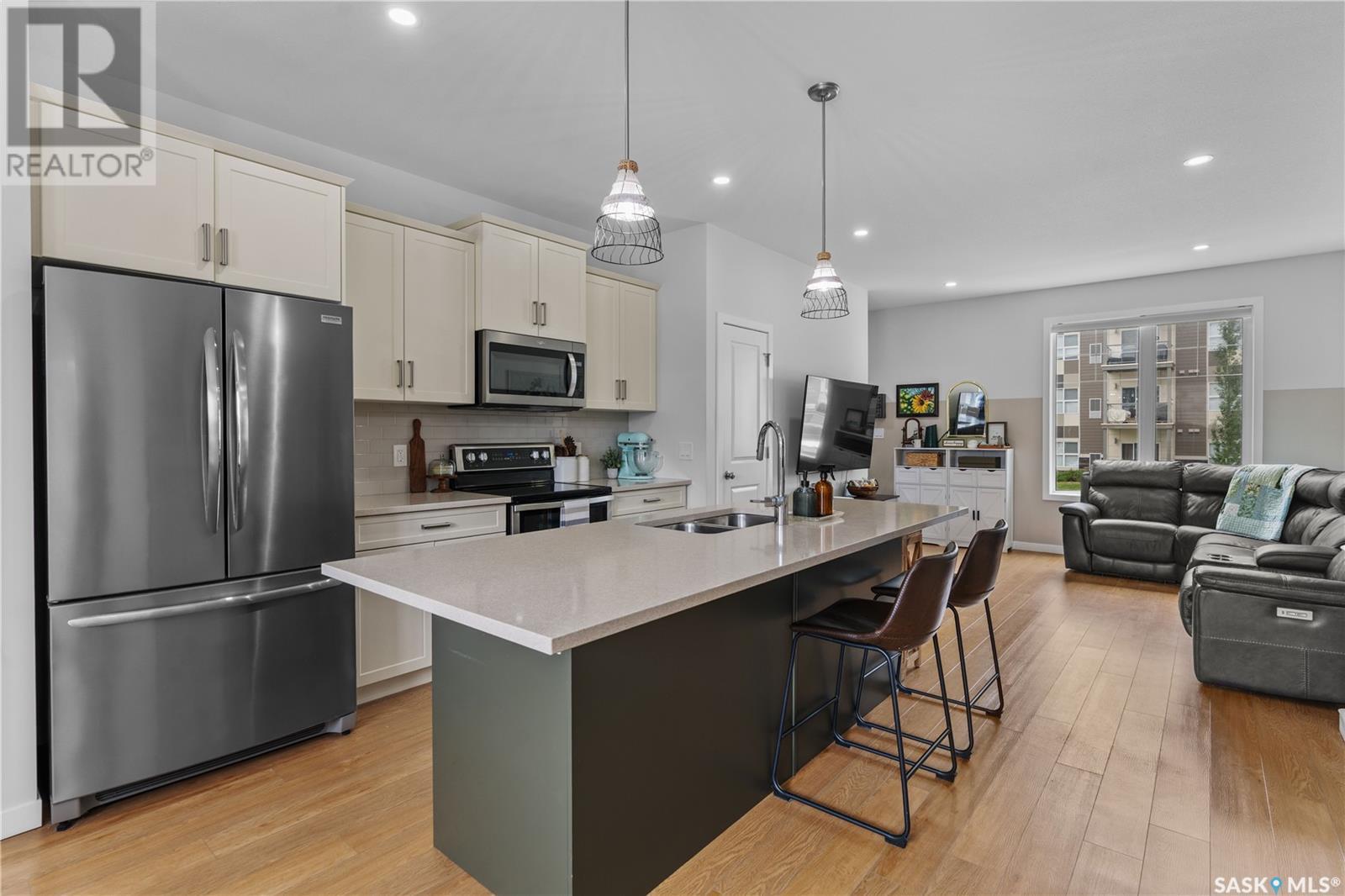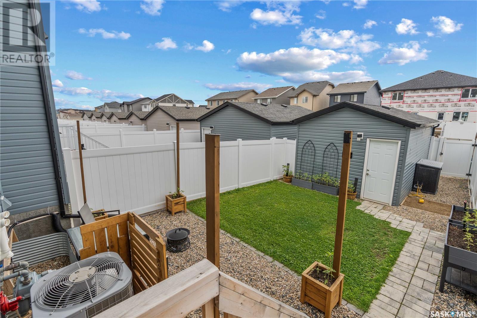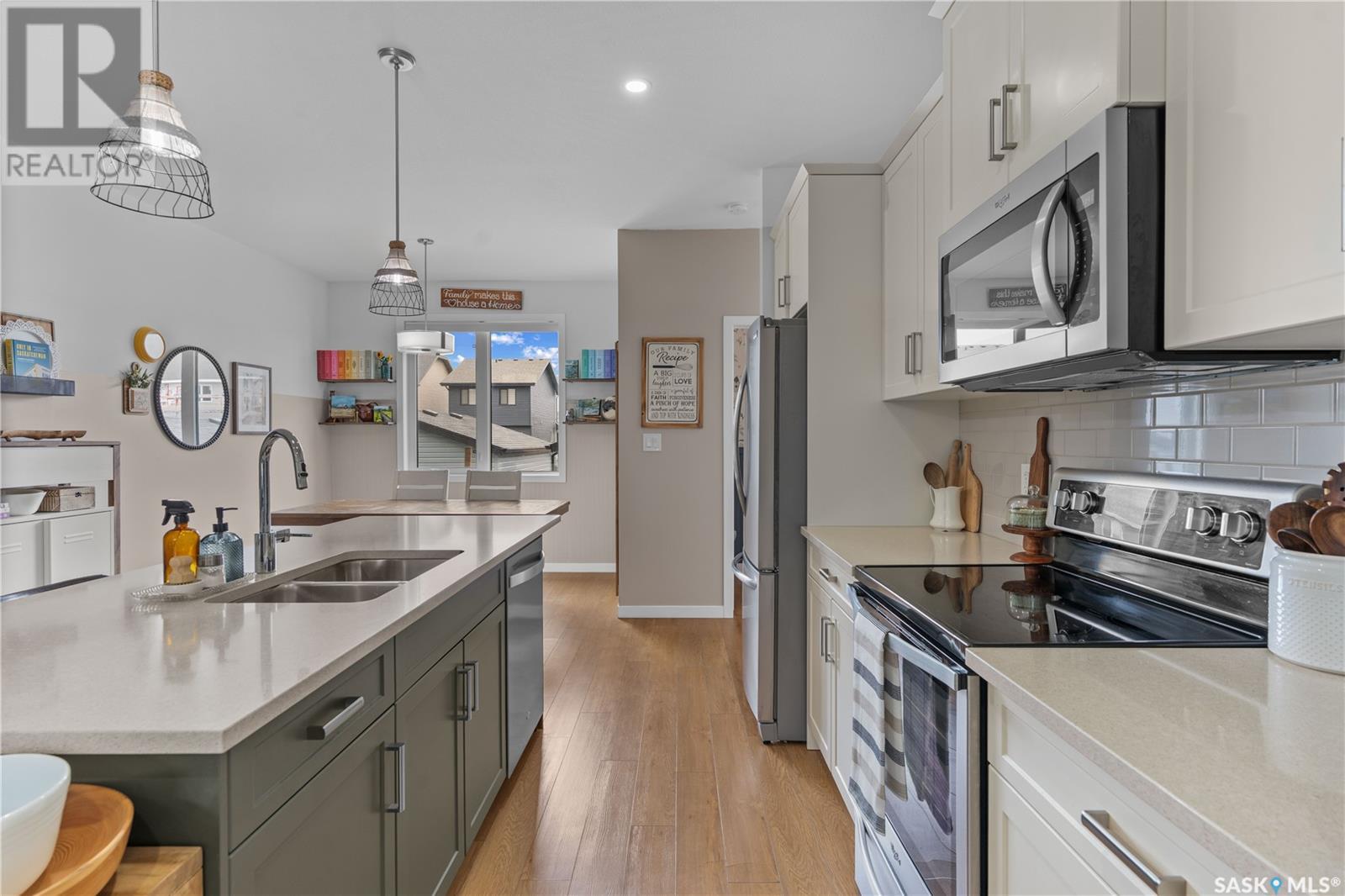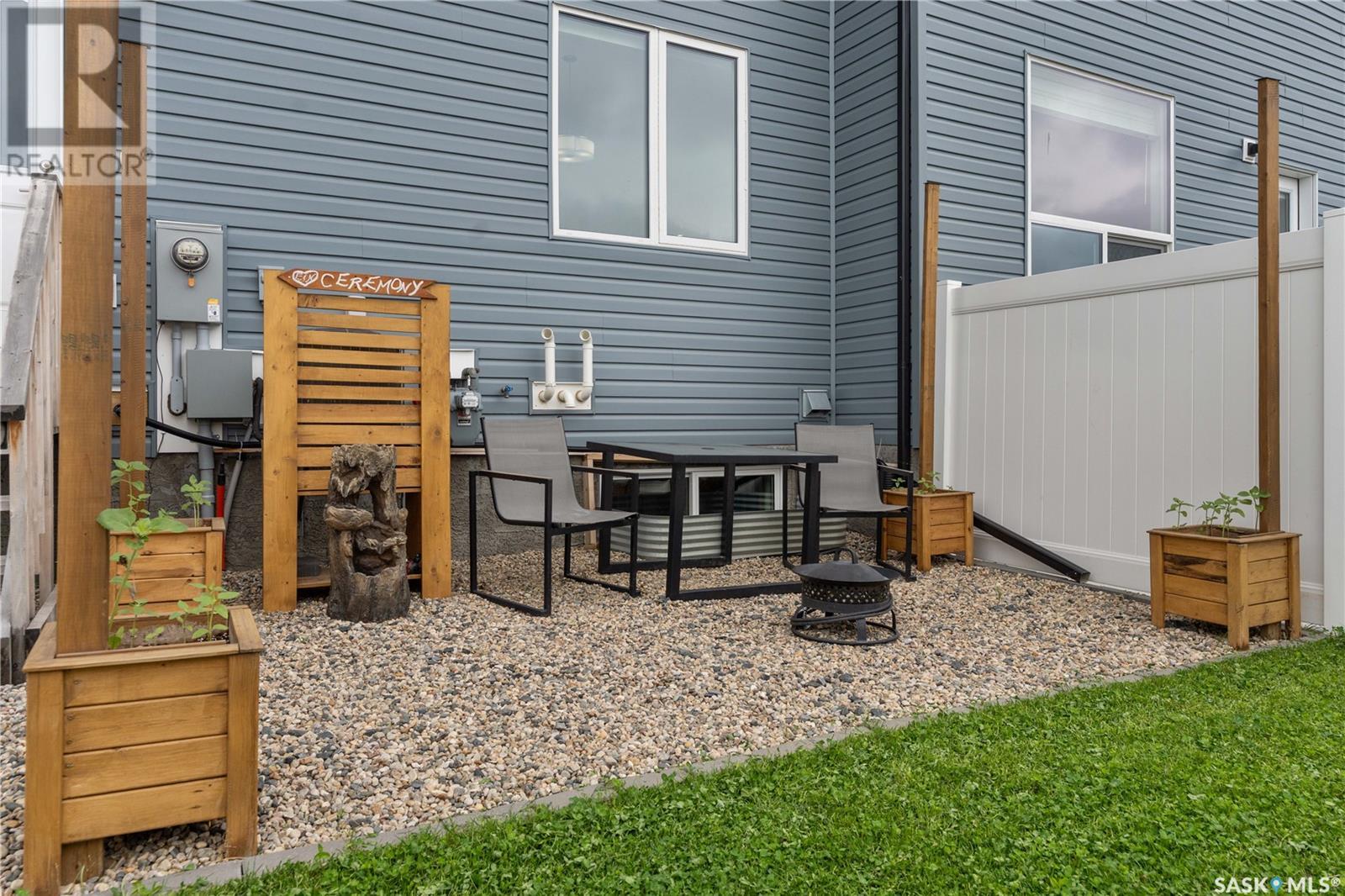 This modern 1,360 sq. ft. townhouse, built in 2021, is situated in the vibrant and family-friendly community of Eastbrook in Regina. The main floor boasts an open-concept design with 9-foot ceilings, featuring a spacious living room, a dining area, half washroom and a contemporary kitchen equipped with a sit-up island, corner pantry, stainless steel appliances, and quartz countertops. Upstairs you will find a large primary bedroom with a walk-in closet and 4-piece ensuite, two additional bedrooms, 4 piece common washroom and a laundry area. The basement is unfinished, offering potential for customization. The backyard is fully landscaped, fenced and includes a detached garage Located within walking distance to schools, parks, shopping plaza, and restaurants, and just a 2-minute drive to Costco. this home is very well kept by the homeowners, offers both comfort and convenience. (id:43042)