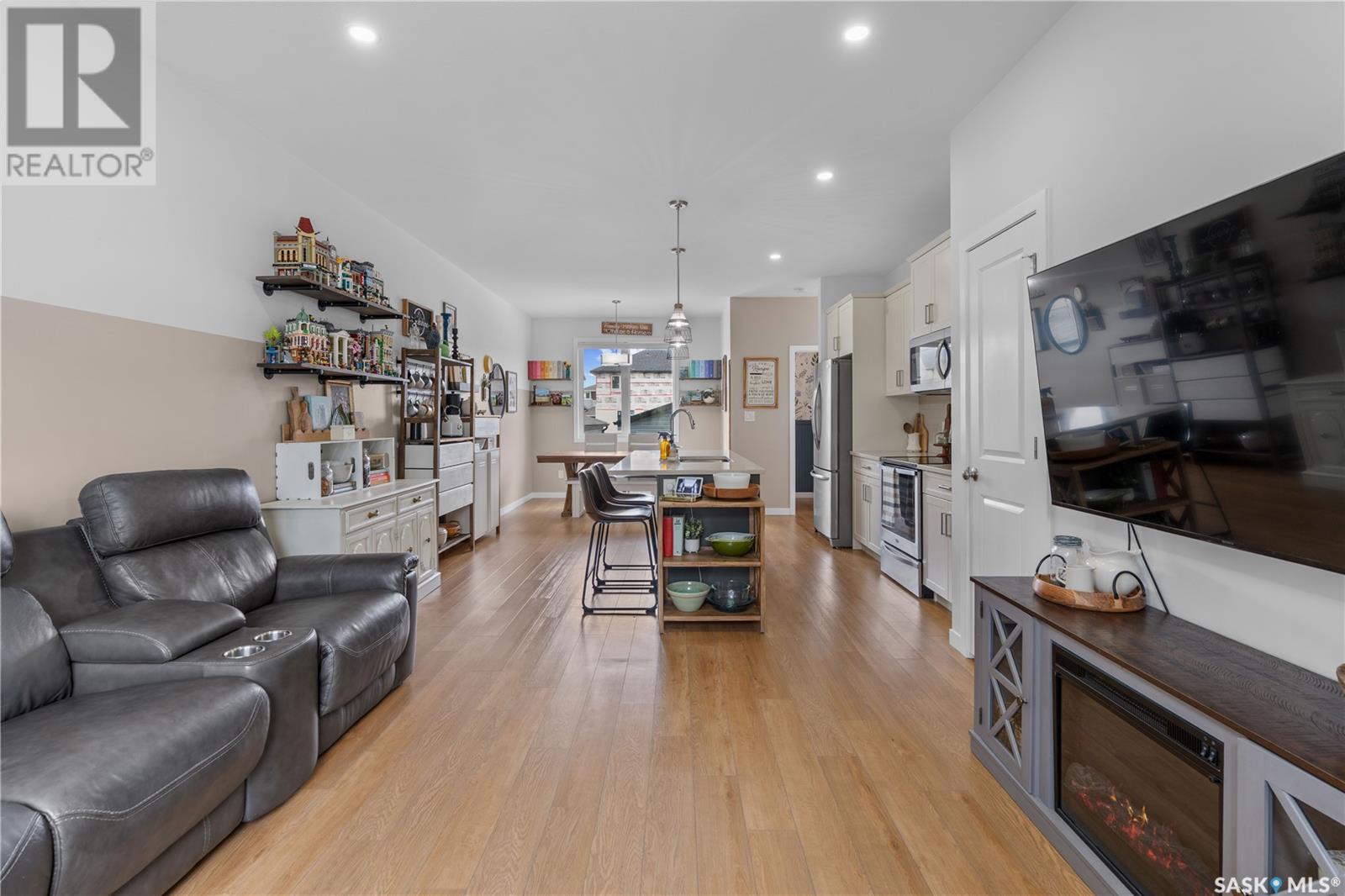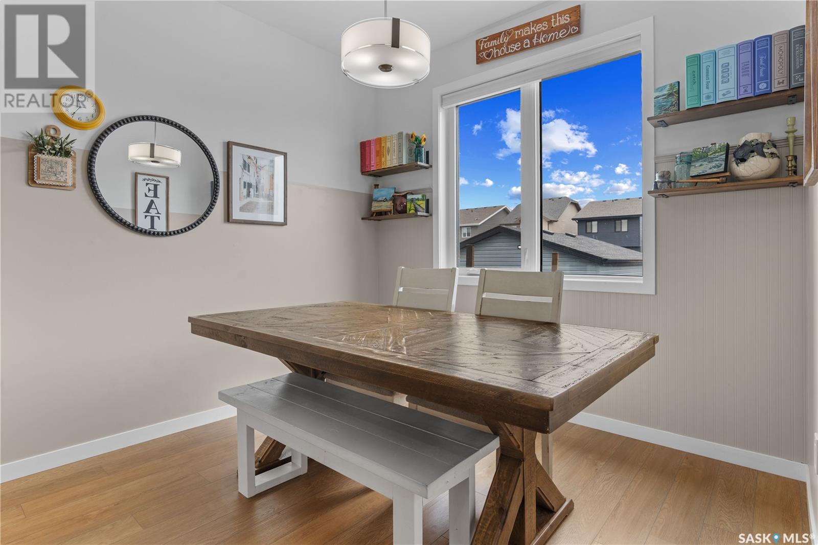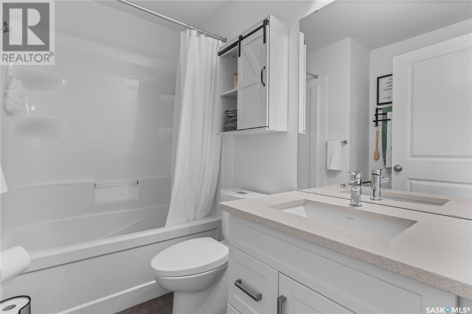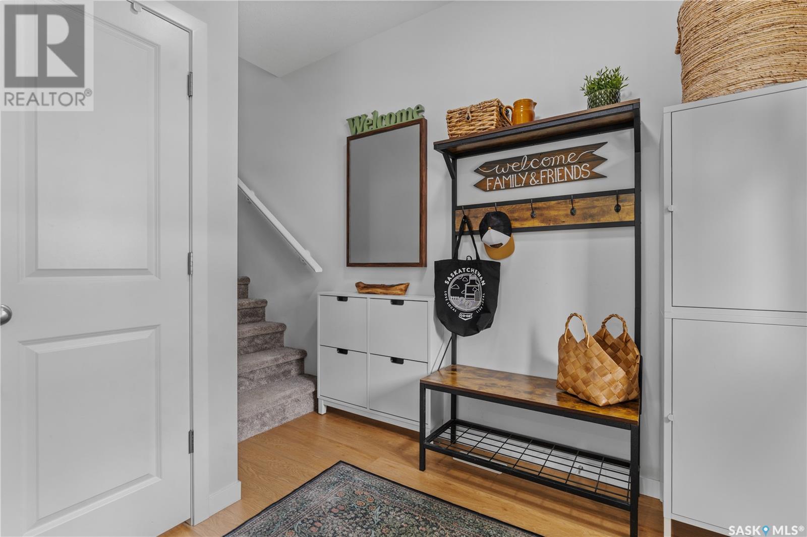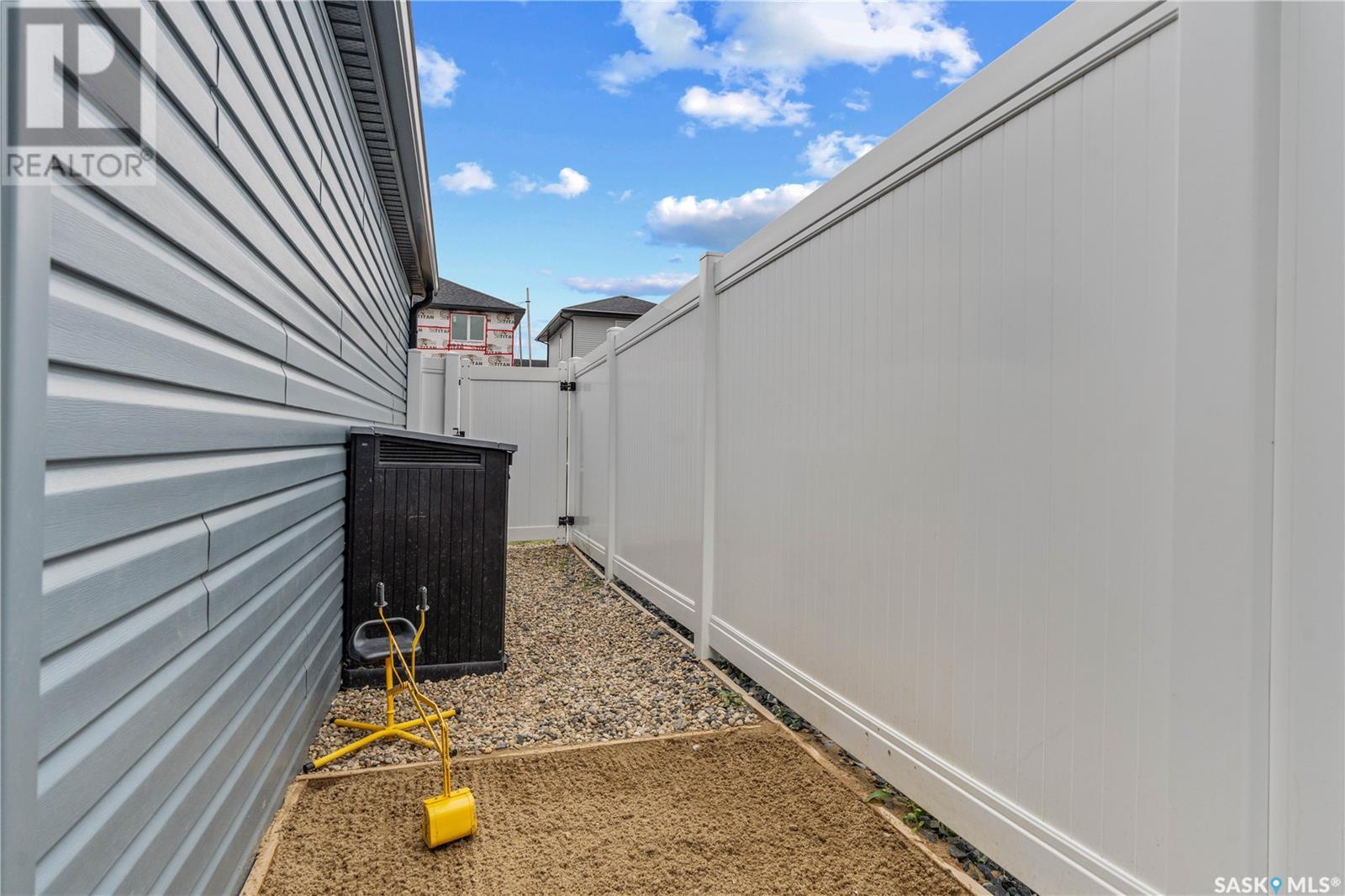This modern 1,360 sq. ft. townhouse, built in 2021, is situated in the vibrant and family-friendly community of Eastbrook in Regina. The main floor boasts an open-concept design with 9-foot ceilings, featuring a spacious living room, a dining area, half washroom and a contemporary kitchen equipped with a sit-up island, corner pantry, stainless steel appliances, and quartz countertops. Upstairs you will find a large primary bedroom with a walk-in closet and 4-piece ensuite, two additional bedrooms, 4 piece common washroom and a laundry area. The basement is unfinished, offering potential for customization. The backyard is fully landscaped, fenced and includes a detached garage Located within walking distance to schools, parks, shopping plaza, and restaurants, and just a 2-minute drive to Costco. this home is very well kept by the homeowners, offers both comfort and convenience. (id:43042)