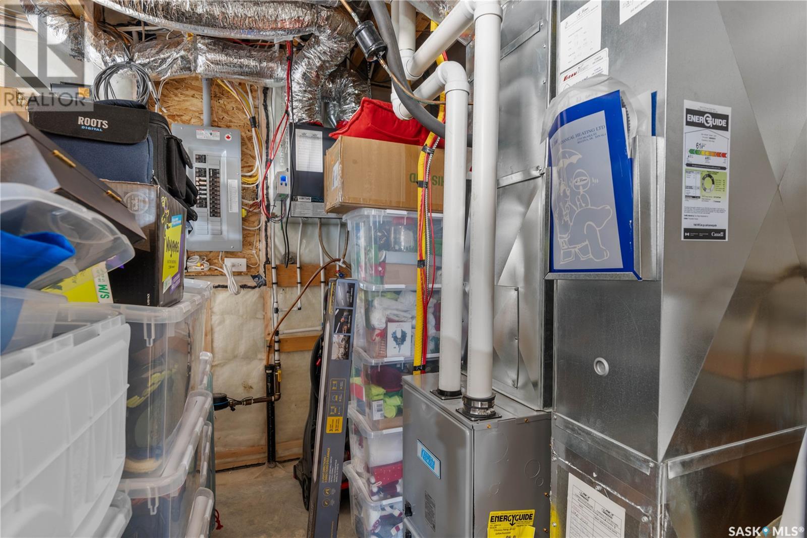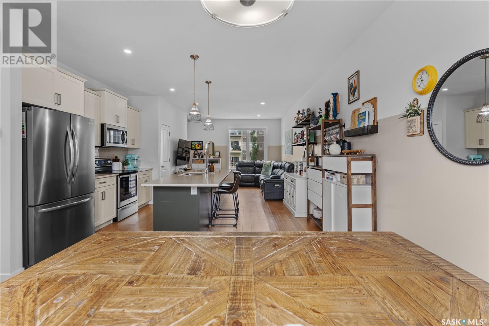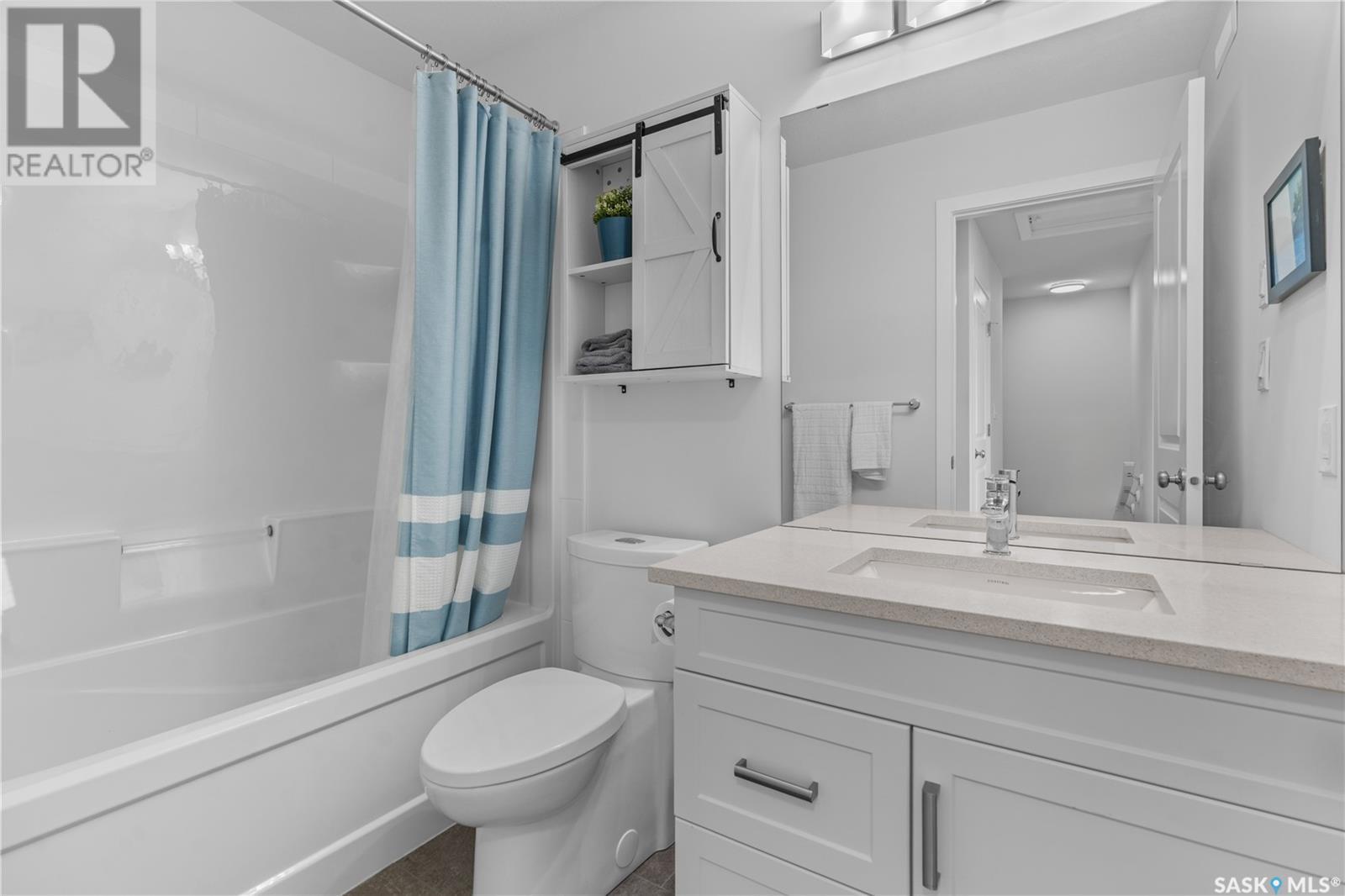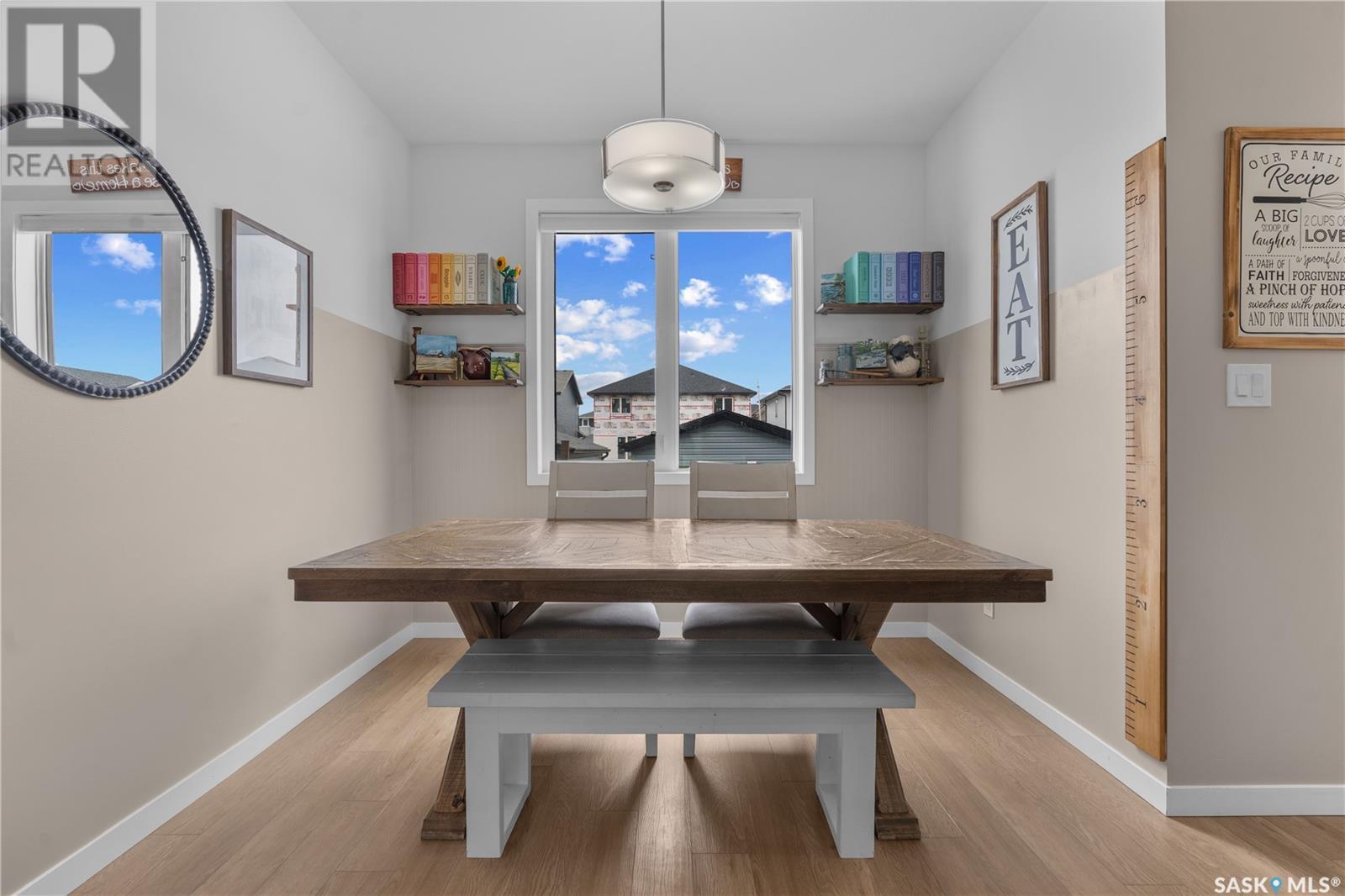 This modern 1,360 sq. ft. townhouse, built in 2021, is situated in the vibrant and family-friendly community of Eastbrook in Regina. The main floor boasts an open-concept design with 9-foot ceilings, featuring a spacious living room, a dining area, half washroom and a contemporary kitchen equipped with a sit-up island, corner pantry, stainless steel appliances, and quartz countertops. Upstairs you will find a large primary bedroom with a walk-in closet and 4-piece ensuite, two additional bedrooms, 4 piece common washroom and a laundry area. The basement is unfinished, offering potential for customization. The backyard is fully landscaped, fenced and includes a detached garage Located within walking distance to schools, parks, shopping plaza, and restaurants, and just a 2-minute drive to Costco. this home is very well kept by the homeowners, offers both comfort and convenience. (id:43042)