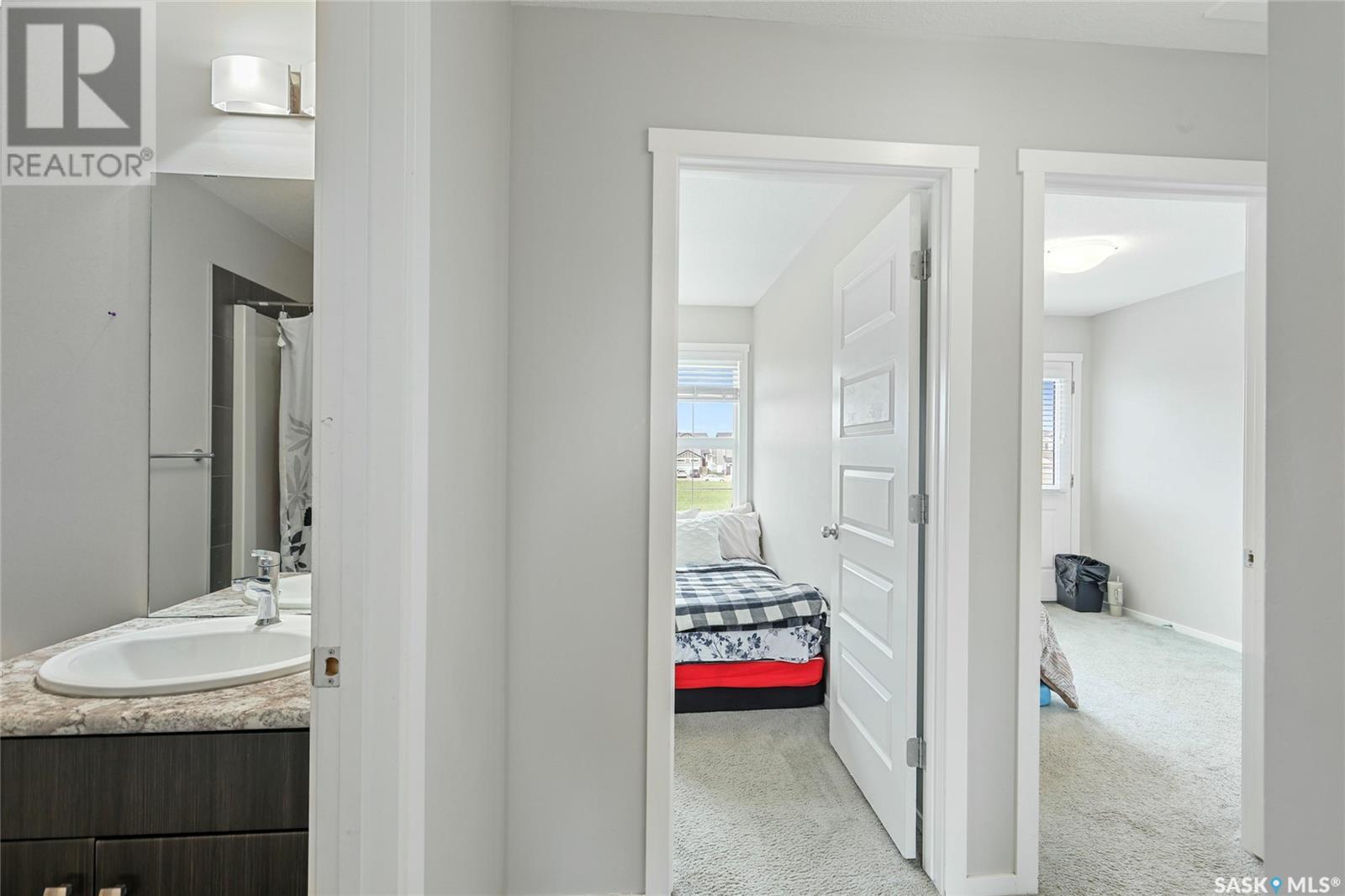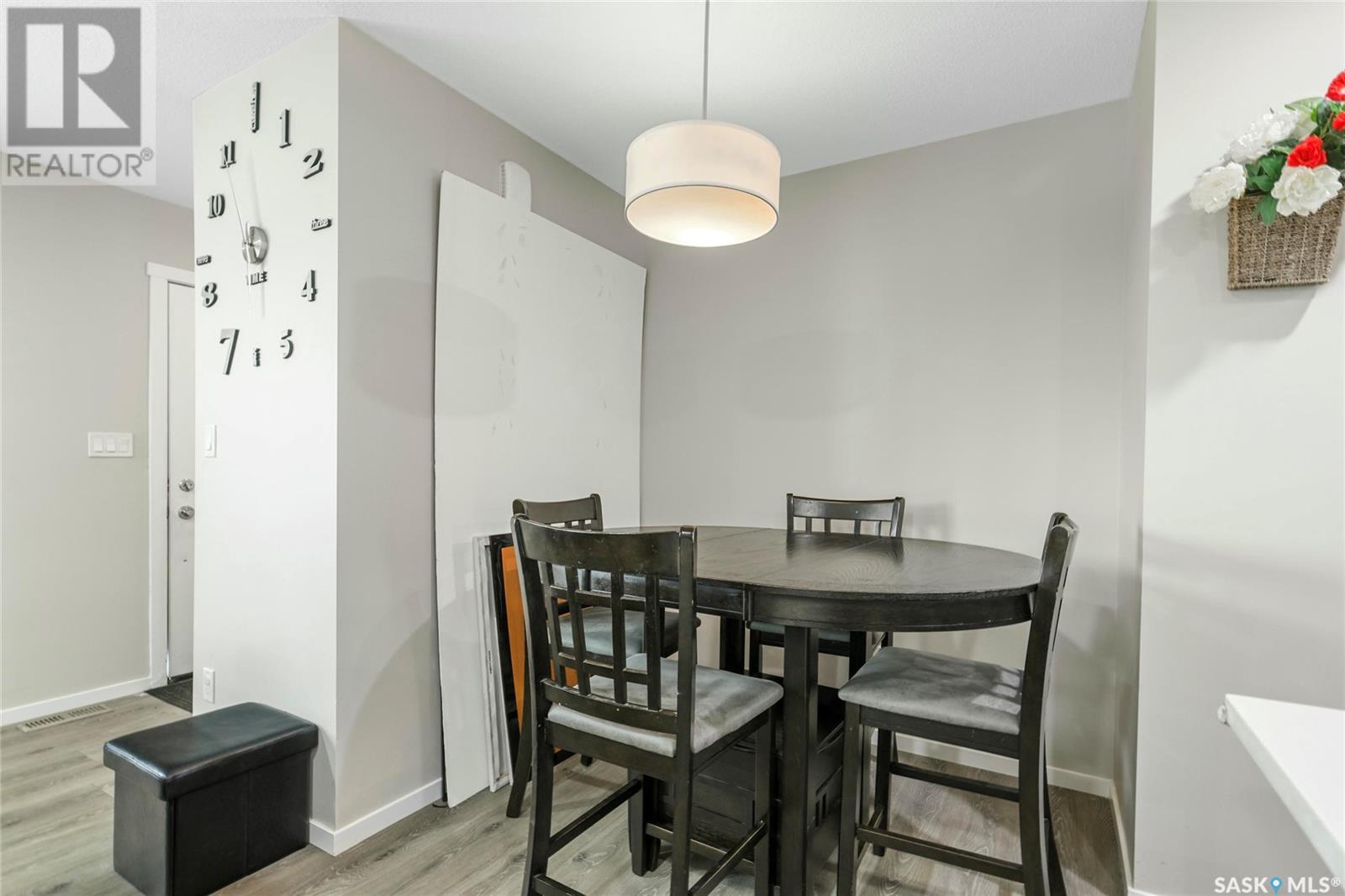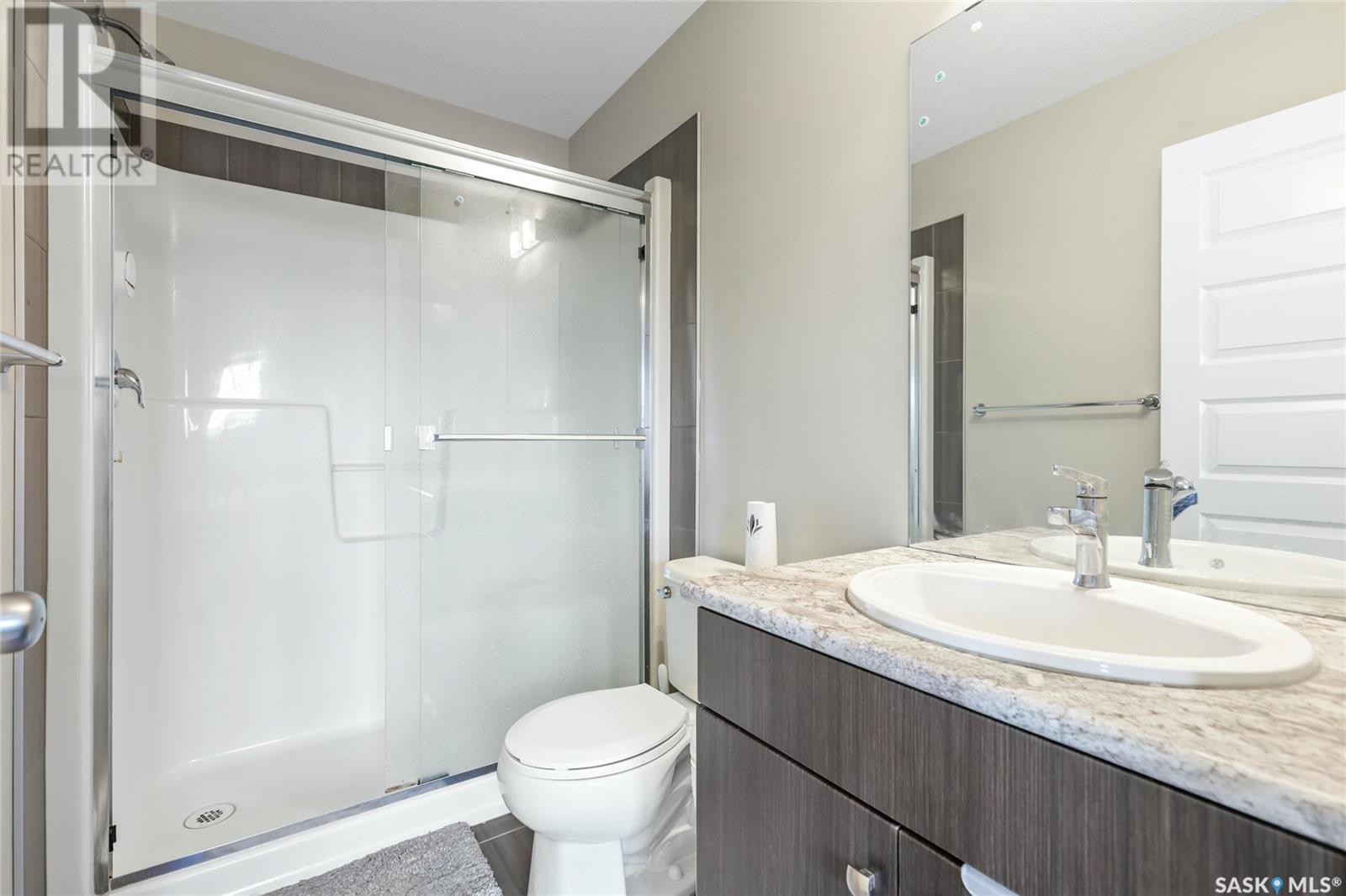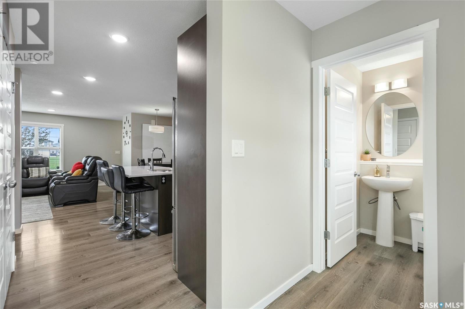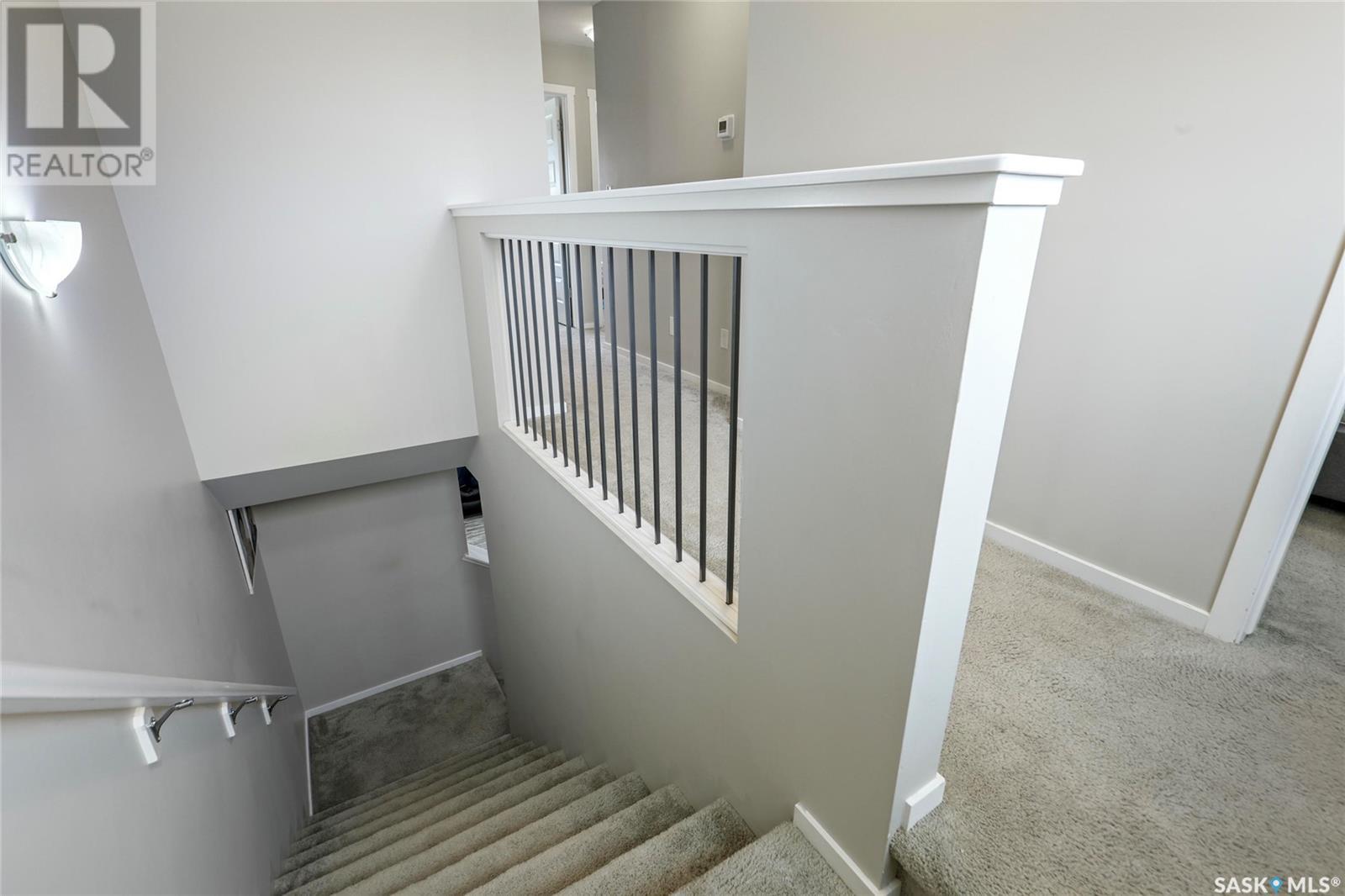 Cutely and beautifully 4 bedrooms, 4 bathrooms 2 storey townhouse located in Greens on Gardner, one of Regina's newest neighborhoods, peaceful and pride itself for diversity. This immaculate home showcase balcony that overlooks the opposite field with splendor. Upon entry, you are welcome by the modern open plan living space with recessed lighting, sizable living room and dining area, visitors washroom and a prettily kitchen fitted with quartz countertops, breakfast bar, dark brown cabinets, decorative backsplash, and stainless-steel appliances. 2nd level features hallway with carpet floors and an upstairs landing, sizable primary bedroom with 3pc en suit and walk-in closet, two good size bedrooms, 4pc bathroom complement this level. Basement level is fully finished with spacious recreational room, sizable bedroom, 3pcs bathroom, laundry room and utilities room for storage. Backyard door leads to large deck, fully graded low maintenance Xeriscape, solid durable PVC fence, and a large single detached garage. Short walking distance to schools, daycare, parks, shopping centres, restaurants, and 6 minutes drive to Costco. (id:43042)