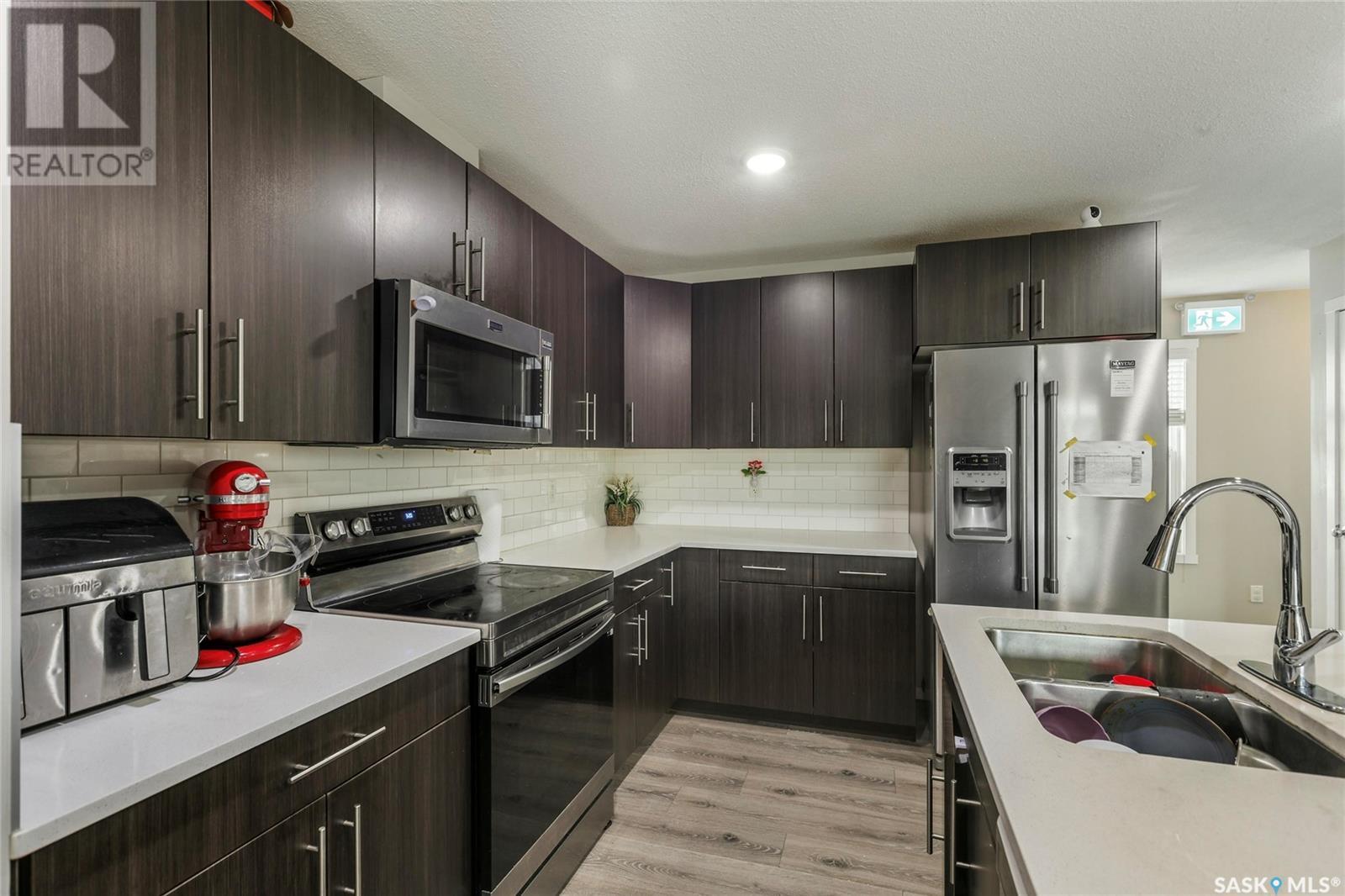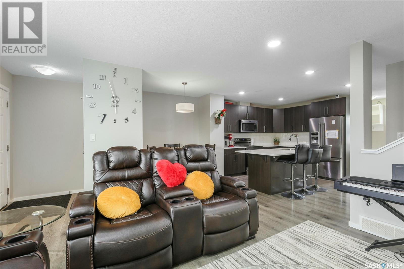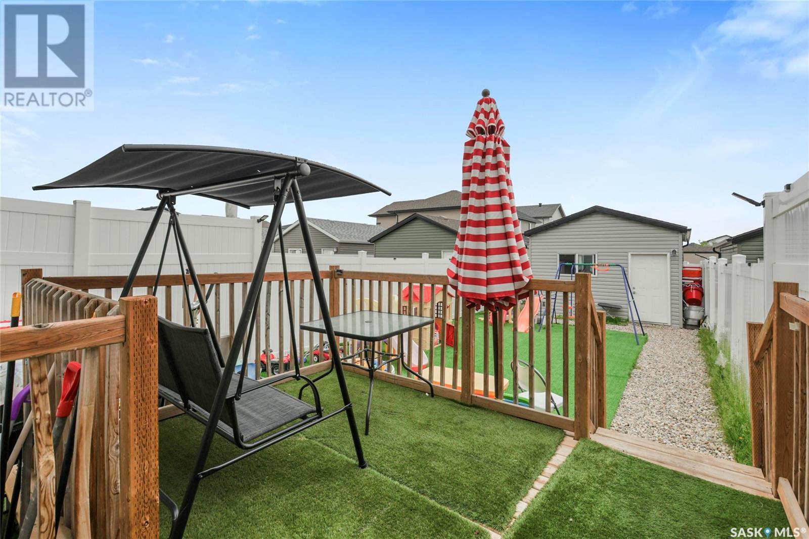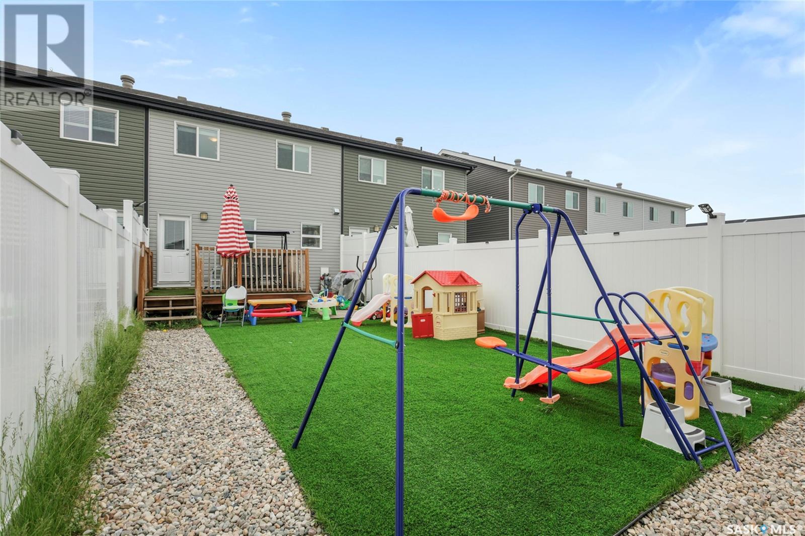 Cutely and beautifully 4 bedrooms, 4 bathrooms 2 storey townhouse located in Greens on Gardner, one of Regina's newest neighborhoods, peaceful and pride itself for diversity. This immaculate home showcase balcony that overlooks the opposite field with splendor. Upon entry, you are welcome by the modern open plan living space with recessed lighting, sizable living room and dining area, visitors washroom and a prettily kitchen fitted with quartz countertops, breakfast bar, dark brown cabinets, decorative backsplash, and stainless-steel appliances. 2nd level features hallway with carpet floors and an upstairs landing, sizable primary bedroom with 3pc en suit and walk-in closet, two good size bedrooms, 4pc bathroom complement this level. Basement level is fully finished with spacious recreational room, sizable bedroom, 3pcs bathroom, laundry room and utilities room for storage. Backyard door leads to large deck, fully graded low maintenance Xeriscape, solid durable PVC fence, and a large single detached garage. Short walking distance to schools, daycare, parks, shopping centres, restaurants, and 6 minutes drive to Costco. (id:43042)