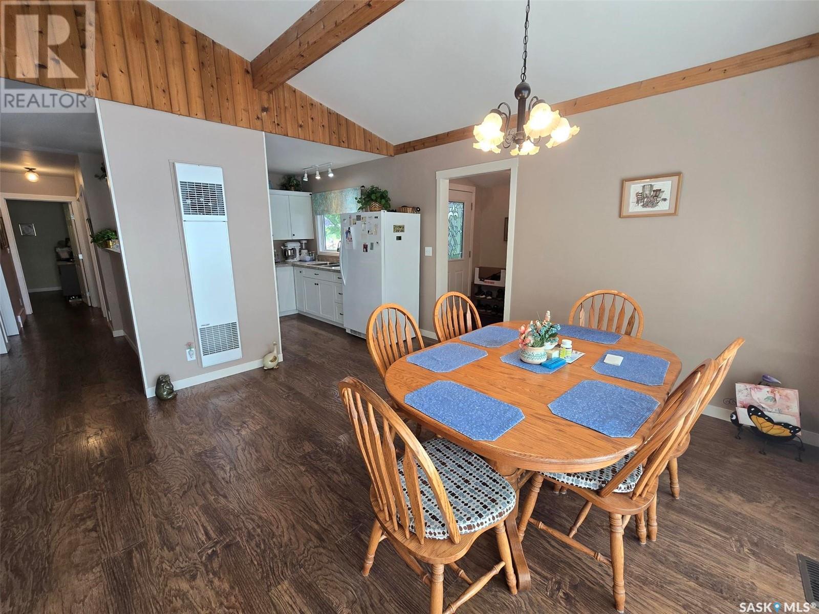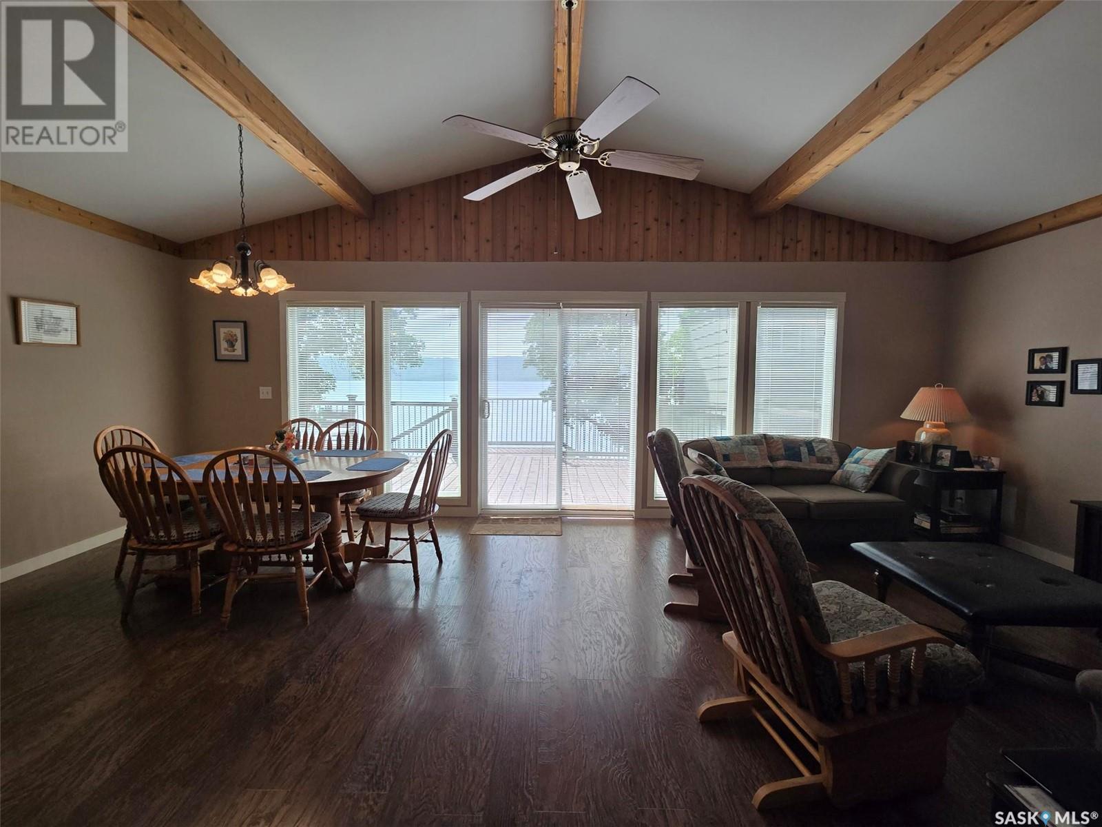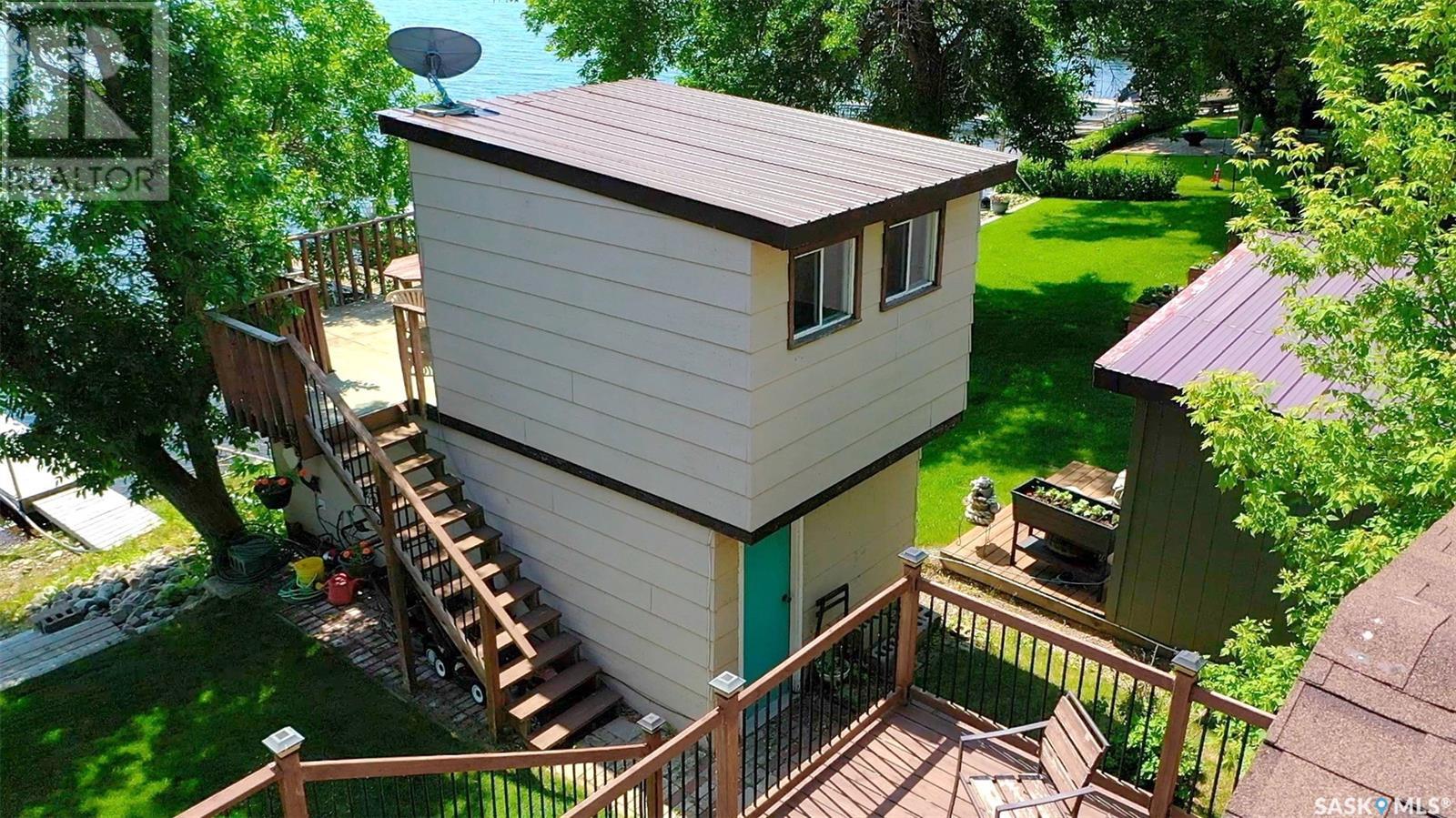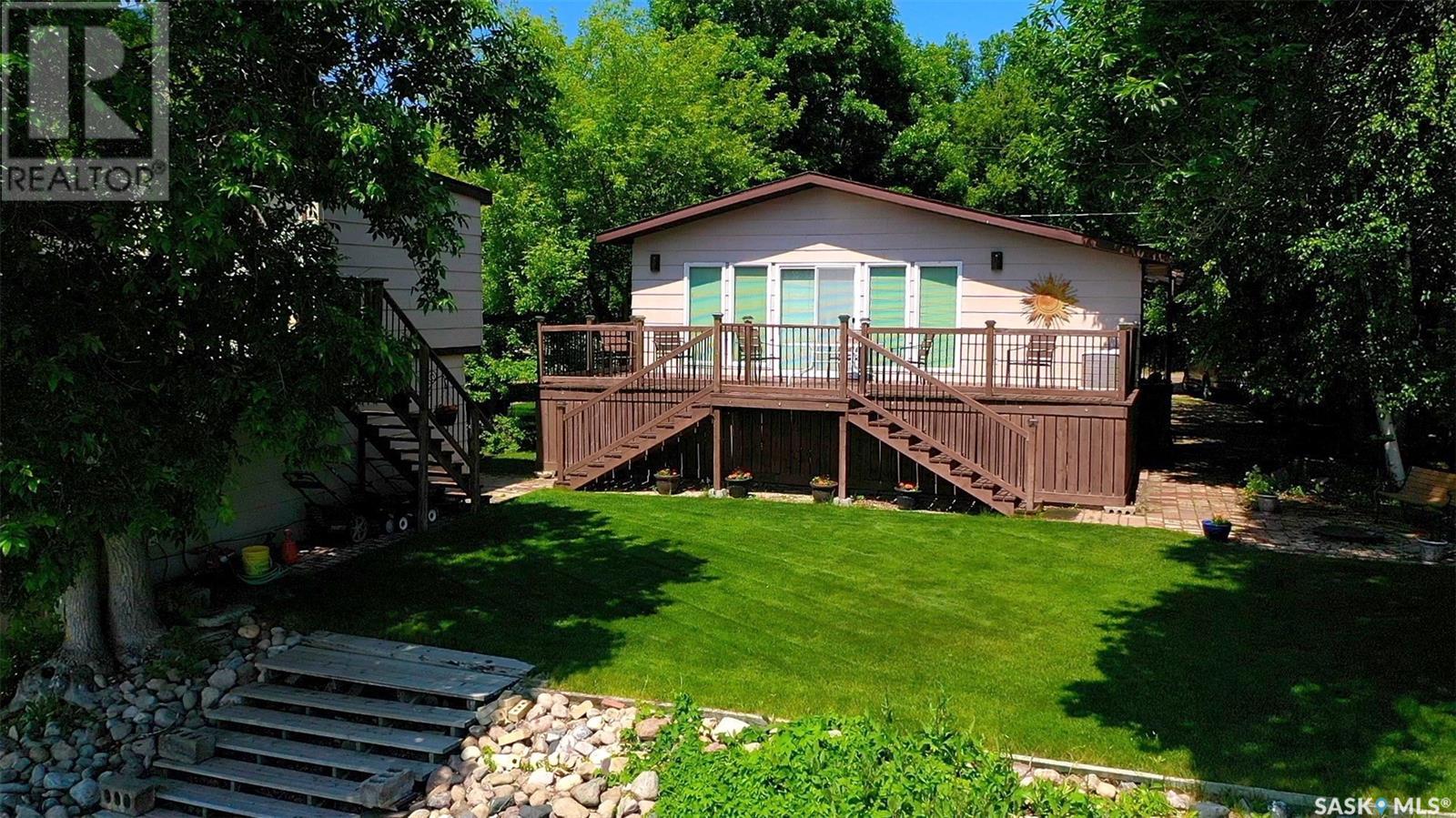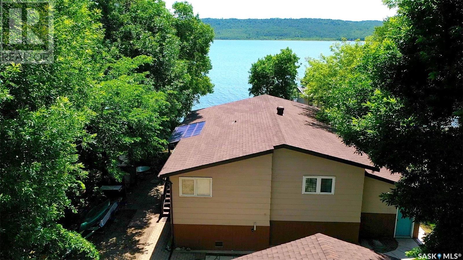 Crooked Lake 4 season home is awaiting YOU! Welcome to the Qu'appelle Valley and 56 A Elk Road...where the adventure begins in this 3 bedroom plus 1 bath home. Nestled in a mature yard with 66' frontage, lots of outdoor areas to enjoy all the seasons. Find comfort and all the amenities needed to live. Double detached garage (2007) is a bonus , a boat house with loft (used as guest room) and a large front deck to capture the views of the lake and valley. Step into the large porch in this 1150 sq ft home from the side covered deck , then into the open concept dining and living room that present vaulted ceiling and a wall of south windows and patio doors. This area allows to capture the beauty of the lake and front deck. For the cook, an unique U - shaped kitchen to prepare for the friends and family. 3 bedrooms and 1 full bath down the hall and an added (2007) Multi- purpose room 14' x 16' which provides built in desks, 2 large closets and the laundry area. On the back of the home , there is a utility room that houses the RO system, the water softner, and can be used as a small work space. HE propane furnace (2021) Shingles (2014), Jeldwen windows (2007). Great property for those looking for a complete package. TAX $1583 DUE END OF SEPT- LEASE $3446 DUE END OF DEC (id:43042)