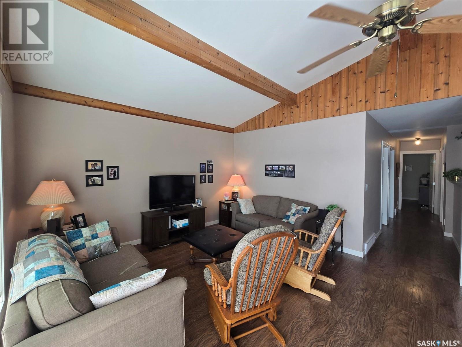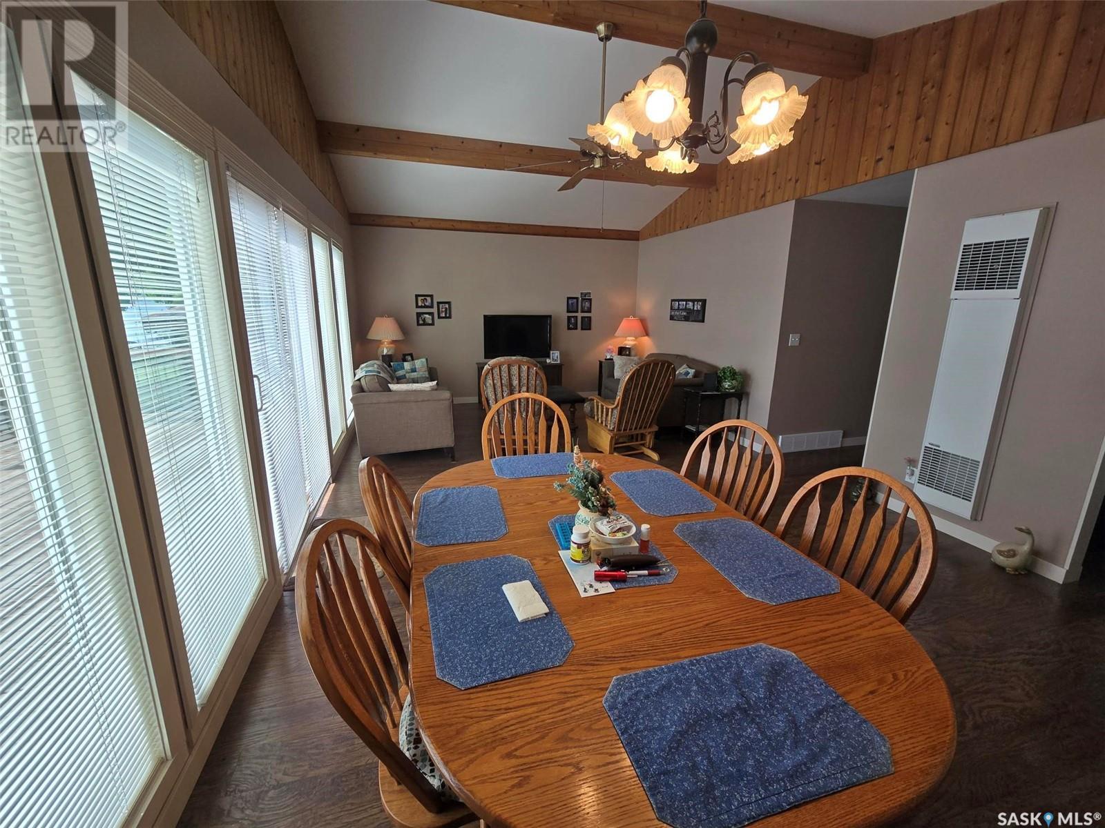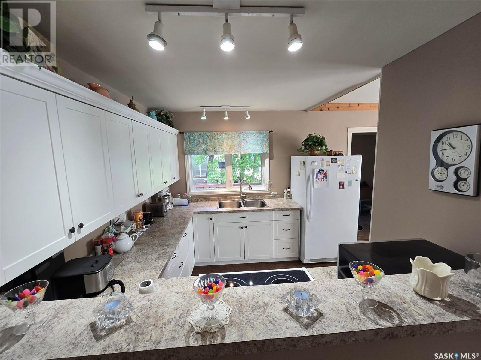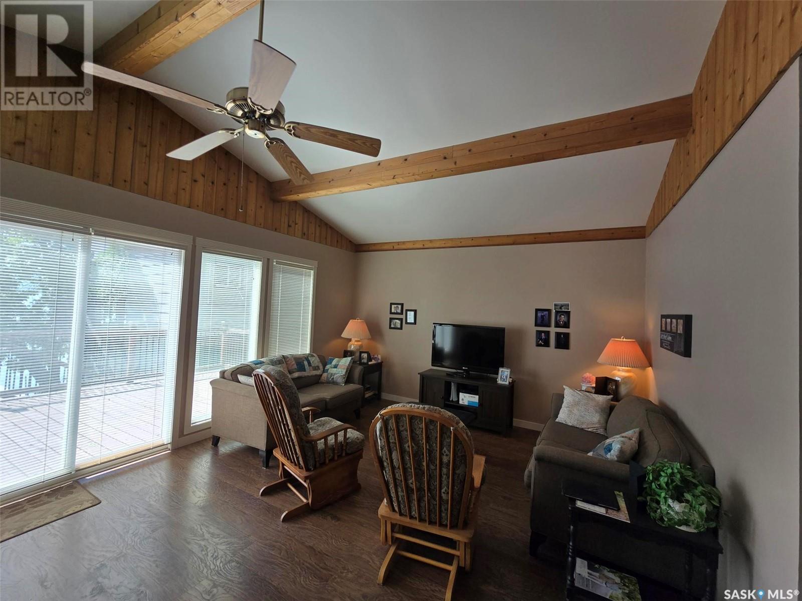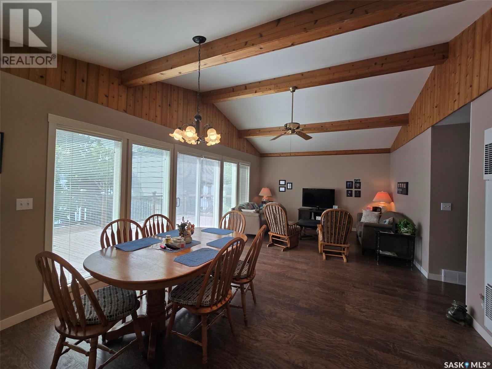 Crooked Lake 4 season home is awaiting YOU! Welcome to the Qu'appelle Valley and 56 A Elk Road...where the adventure begins in this 3 bedroom plus 1 bath home. Nestled in a mature yard with 66' frontage, lots of outdoor areas to enjoy all the seasons. Find comfort and all the amenities needed to live. Double detached garage (2007) is a bonus , a boat house with loft (used as guest room) and a large front deck to capture the views of the lake and valley. Step into the large porch in this 1150 sq ft home from the side covered deck , then into the open concept dining and living room that present vaulted ceiling and a wall of south windows and patio doors. This area allows to capture the beauty of the lake and front deck. For the cook, an unique U - shaped kitchen to prepare for the friends and family. 3 bedrooms and 1 full bath down the hall and an added (2007) Multi- purpose room 14' x 16' which provides built in desks, 2 large closets and the laundry area. On the back of the home , there is a utility room that houses the RO system, the water softner, and can be used as a small work space. HE propane furnace (2021) Shingles (2014), Jeldwen windows (2007). Great property for those looking for a complete package. TAX $1583 DUE END OF SEPT- LEASE $3446 DUE END OF DEC (id:43042)