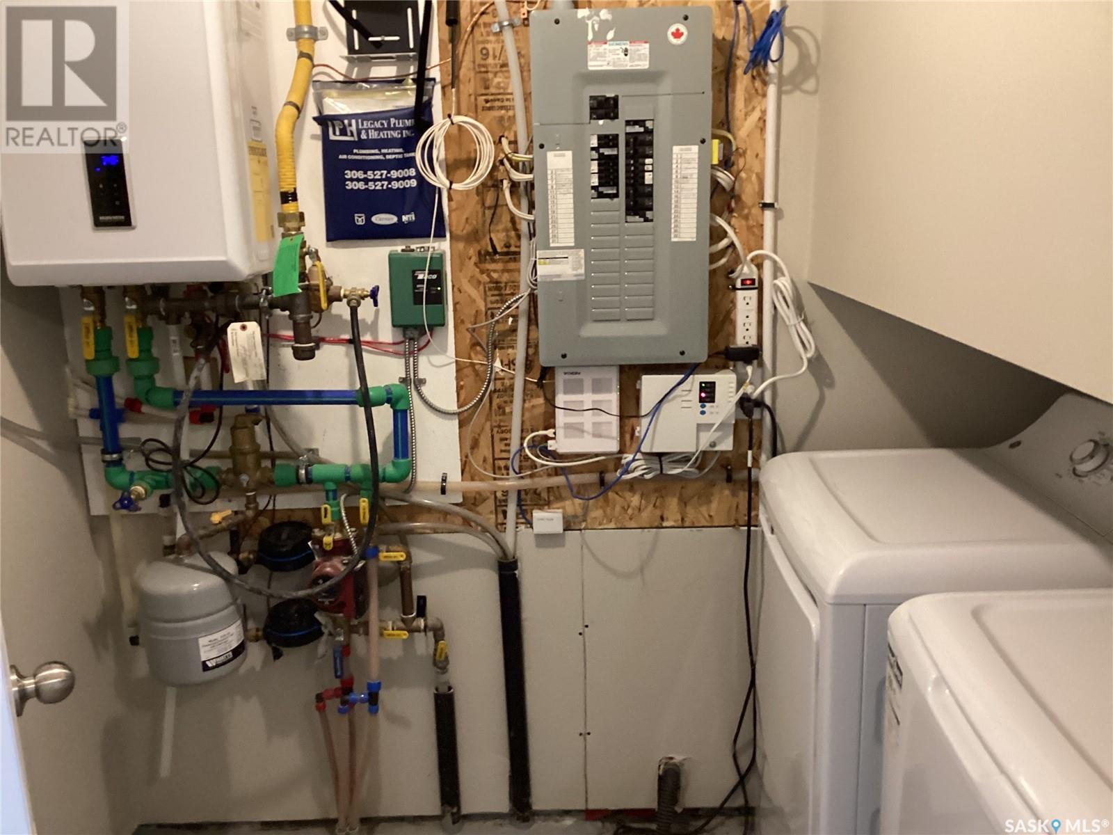 Welcome to Harbour Landing, this quality built 2 Storey home has a regulation suite with separate entrance. Main floor is bright with south facing exposure. Nice size living room a powder room, utility room and a combined kitchen and dining room that leads to private deck.Two sets of appliances included in “as is” condition, surveyor’s certificate included. The basement is open concept, laminate flooring throughout, nice size bedroom, 4 piece bath, laundry/utility room complete the lower level. Front yard is xeriscape, back yard has deck off kitchen and a double detached garage. This is a great opportunity for income potential to help with mortgage payments. Call agent for viewing/ information. (id:43042)