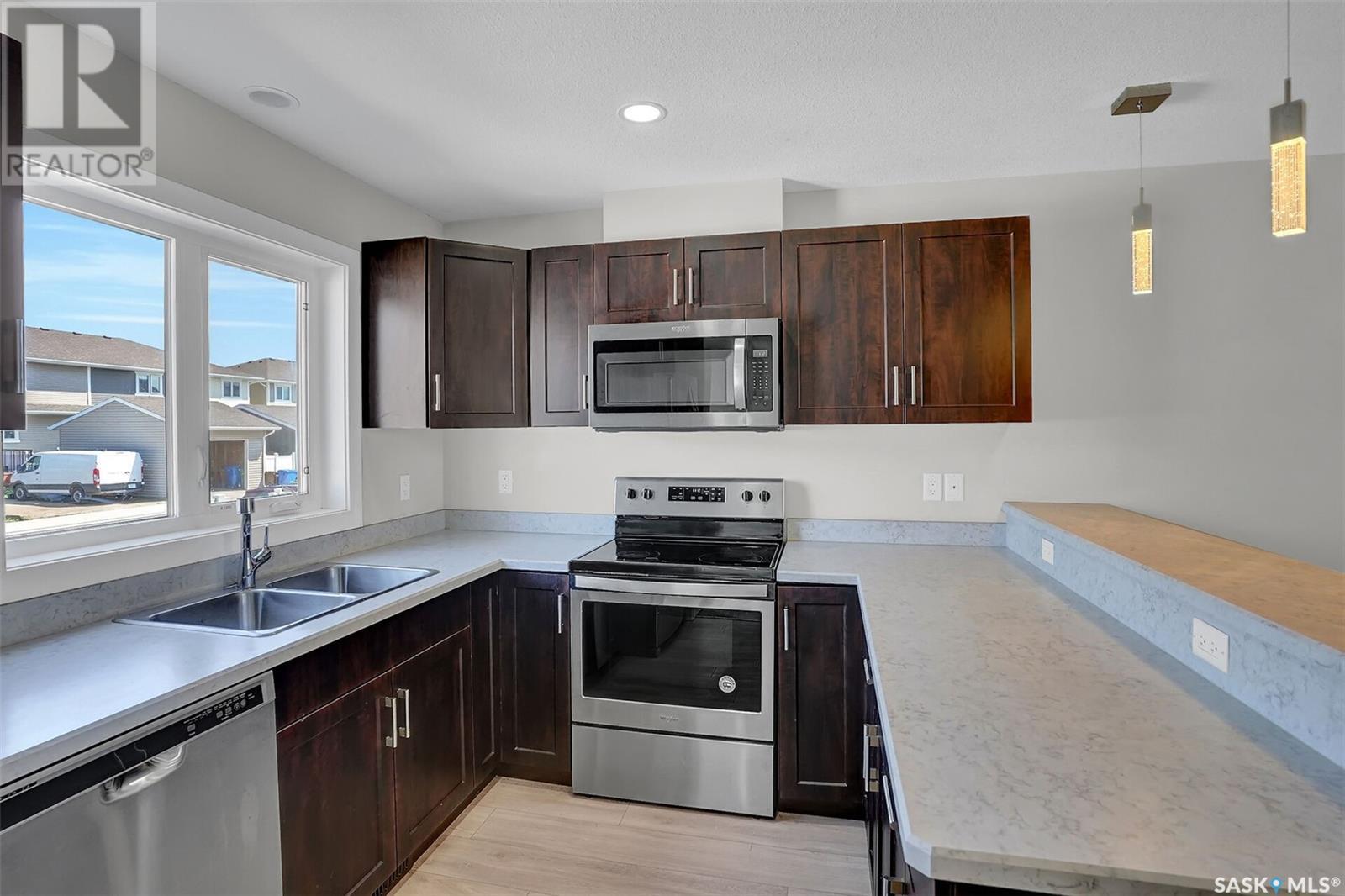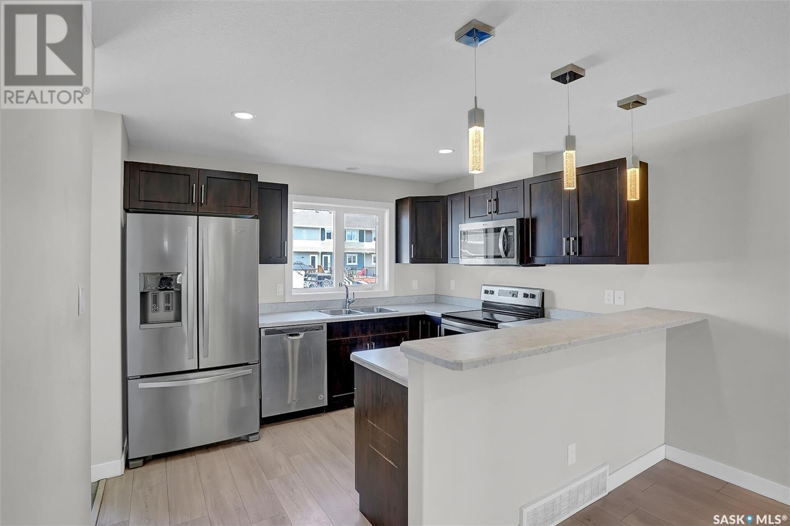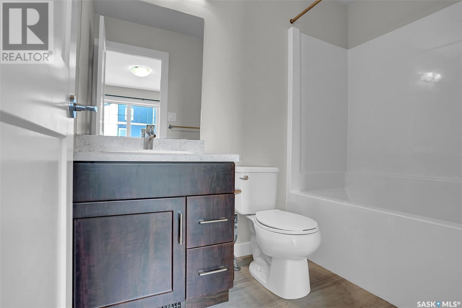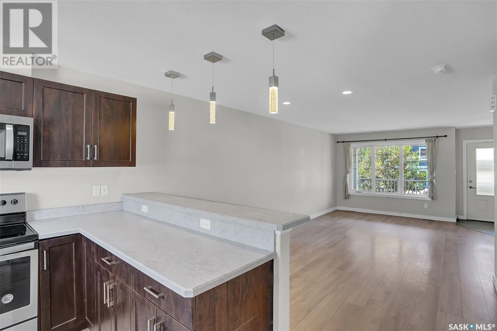 Desirable Townhouse style home (not a condo!) located in Harbour Landing with 3 bedrooms and 2 bathrooms. Quality construction built by Northridge Homes, this two storey plan offers an open concept on the main floor featuring laminate flooring in the living room that continues through to the kitchen and dining. Functional kitchen with eating bar has plenty of cabinets and countertop work-space with all appliances included. A spacious back landing leads to the back yard which is utilized as parking. A convenient powder room is found off the living room where stairs lead to the lower level which is open for development. Upstairs has 3 bedrooms and the full main bathroom. Call today to arrange your private viewing! (id:43042)