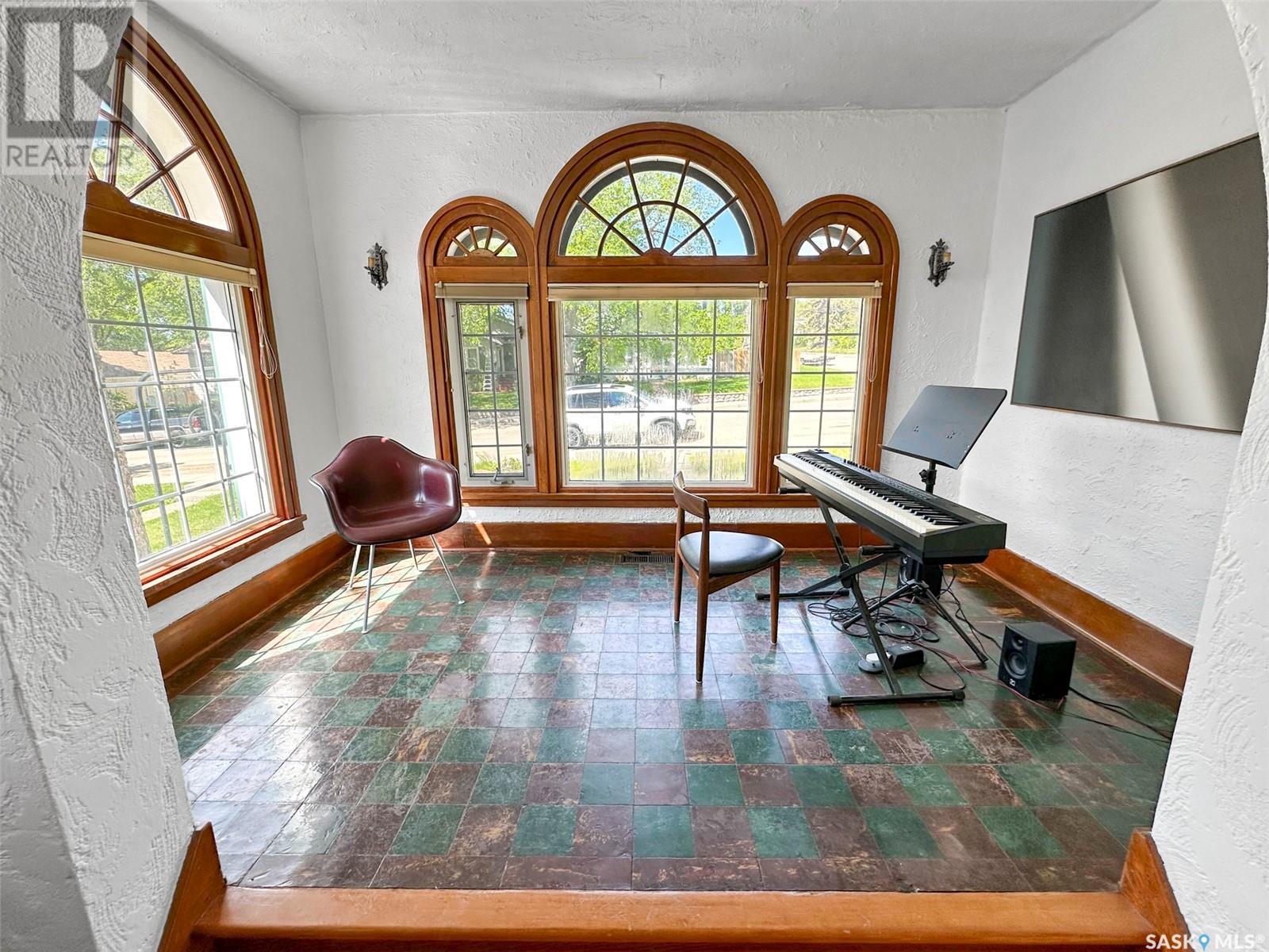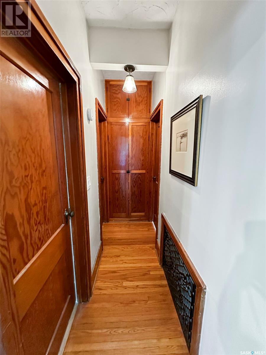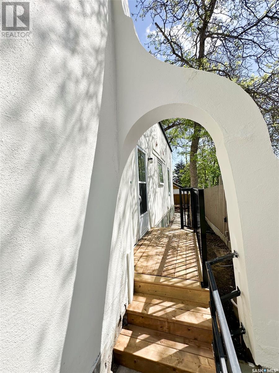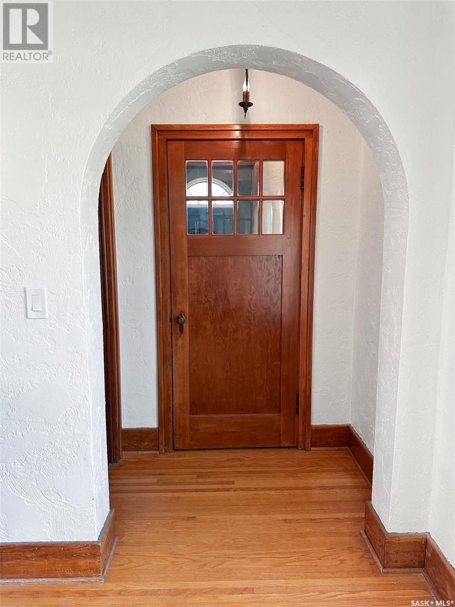 Step into a piece of Swift Current’s architectural history w this captivating 1927 Spanish-style bungalow, located in the desirable upper northeast neighbourhood. Full of charm & character, this one-of-a-kind home has been lovingly restored, showcasing a rare blend of heritage craftsmanship & modern updates. From the moment you enter the light-filled sunroom—with its curved windows & original tile floors—you’ll be drawn in by the warmth & timeless appeal. Inside, original hardwood floors, trims, & built-in shelving highlight the attention to detail typical of this era. The oversized living room centers around a classic wood-burning fireplace, creating a cozy, elegant atmosphere perfect for relaxing or entertaining. The adjoining formal dining room features original built-ins that enhance both style & storage. The kitchen has been thoughtfully updated w a modern center island & appliance package, seamlessly integrating convenience into the home’s vintage charm. Renovations include a restored original floor plan. The bathroom has been returned to its historic footprint & refreshed w new tile, pedestal sink, updated lighting & fresh paint. The primary bedroom also reflects its original design. Downstairs, the basement features laundry, an energy-efficient furnace & a hot water heater installed in 2022. Additional improvements include fresh paint, some drywall, plumbing & electrical upgrades, & new light fixtures. Notably, the roof had a spray foam system added approx. 10 years ago by a previous owner. Outside, the exterior has been beautifully restored, w foundation work, updated window trim, new south steps & regraded landscaping. Mature trees, perennials & a private rear patio w privacy screen create a tranquil outdoor retreat. This home is a living piece of the city’s history—thoughtfully modernized for today’s homeowner. Don’t miss your chance to own a property where character, comfort & craftsmanship meet. (id:43042)