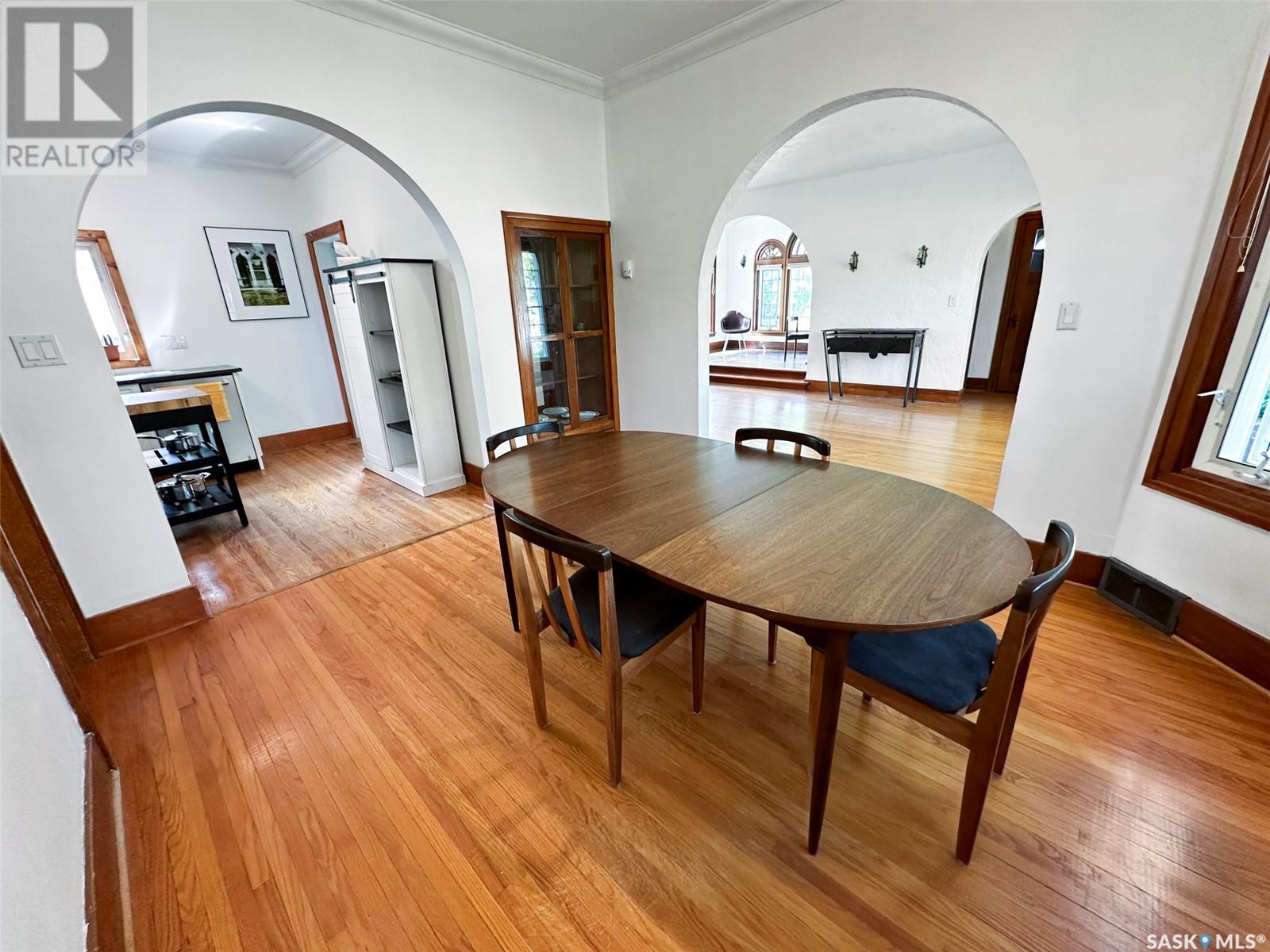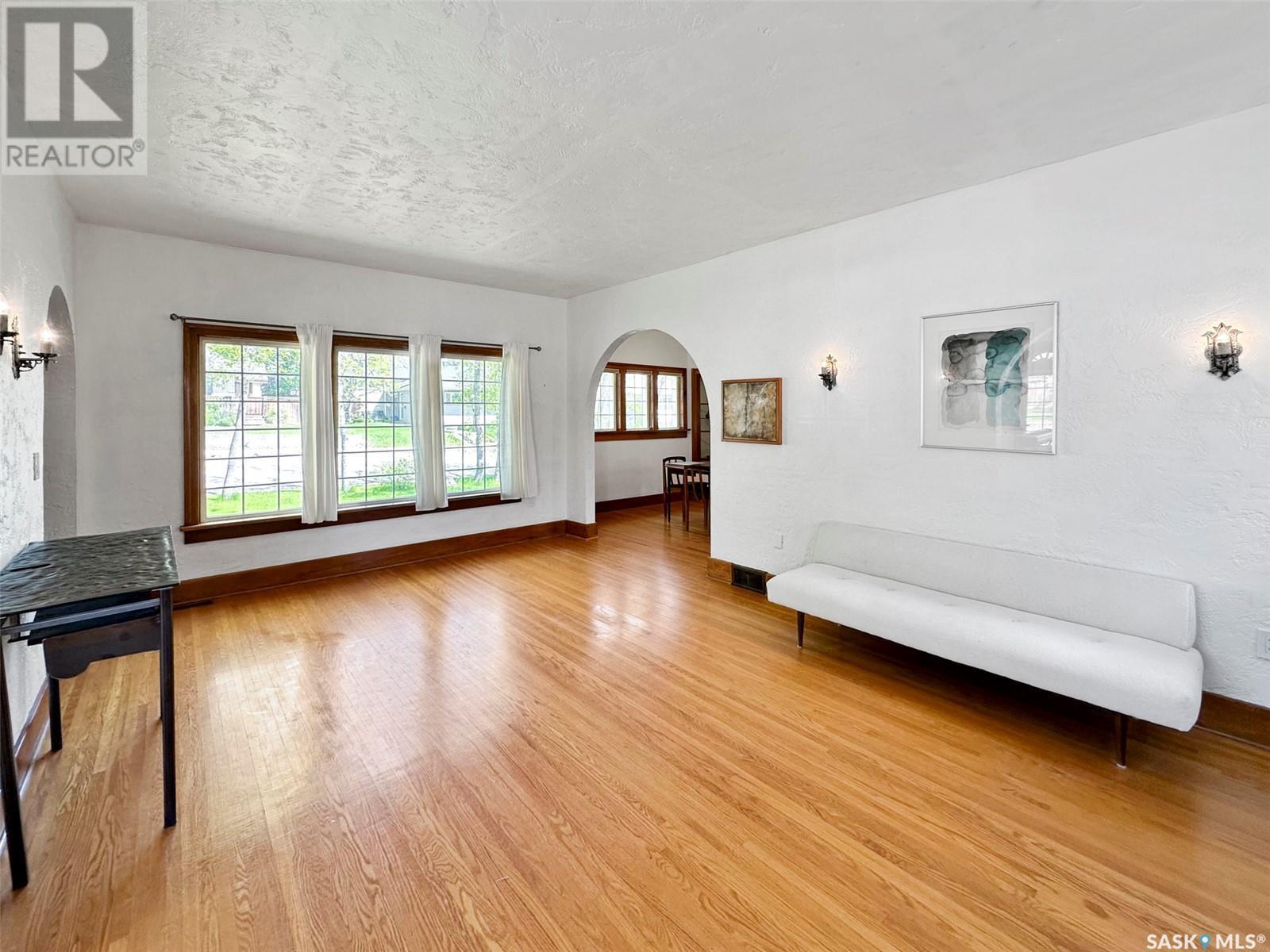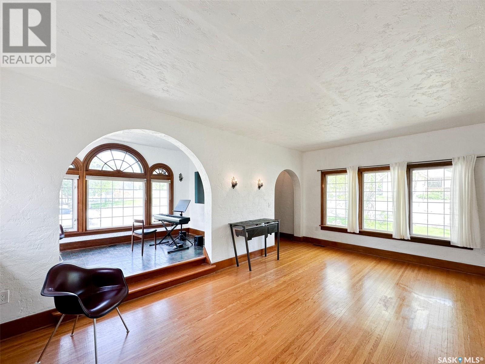 Step into a piece of Swift Current’s architectural history w this captivating 1927 Spanish-style bungalow, located in the desirable upper northeast neighbourhood. Full of charm & character, this one-of-a-kind home has been lovingly restored, showcasing a rare blend of heritage craftsmanship & modern updates. From the moment you enter the light-filled sunroom—with its curved windows & original tile floors—you’ll be drawn in by the warmth & timeless appeal. Inside, original hardwood floors, trims, & built-in shelving highlight the attention to detail typical of this era. The oversized living room centers around a classic wood-burning fireplace, creating a cozy, elegant atmosphere perfect for relaxing or entertaining. The adjoining formal dining room features original built-ins that enhance both style & storage. The kitchen has been thoughtfully updated w a modern center island & appliance package, seamlessly integrating convenience into the home’s vintage charm. Renovations include a restored original floor plan. The bathroom has been returned to its historic footprint & refreshed w new tile, pedestal sink, updated lighting & fresh paint. The primary bedroom also reflects its original design. Downstairs, the basement features laundry, an energy-efficient furnace & a hot water heater installed in 2022. Additional improvements include fresh paint, some drywall, plumbing & electrical upgrades, & new light fixtures. Notably, the roof had a spray foam system added approx. 10 years ago by a previous owner. Outside, the exterior has been beautifully restored, w foundation work, updated window trim, new south steps & regraded landscaping. Mature trees, perennials & a private rear patio w privacy screen create a tranquil outdoor retreat. This home is a living piece of the city’s history—thoughtfully modernized for today’s homeowner. Don’t miss your chance to own a property where character, comfort & craftsmanship meet. (id:43042)