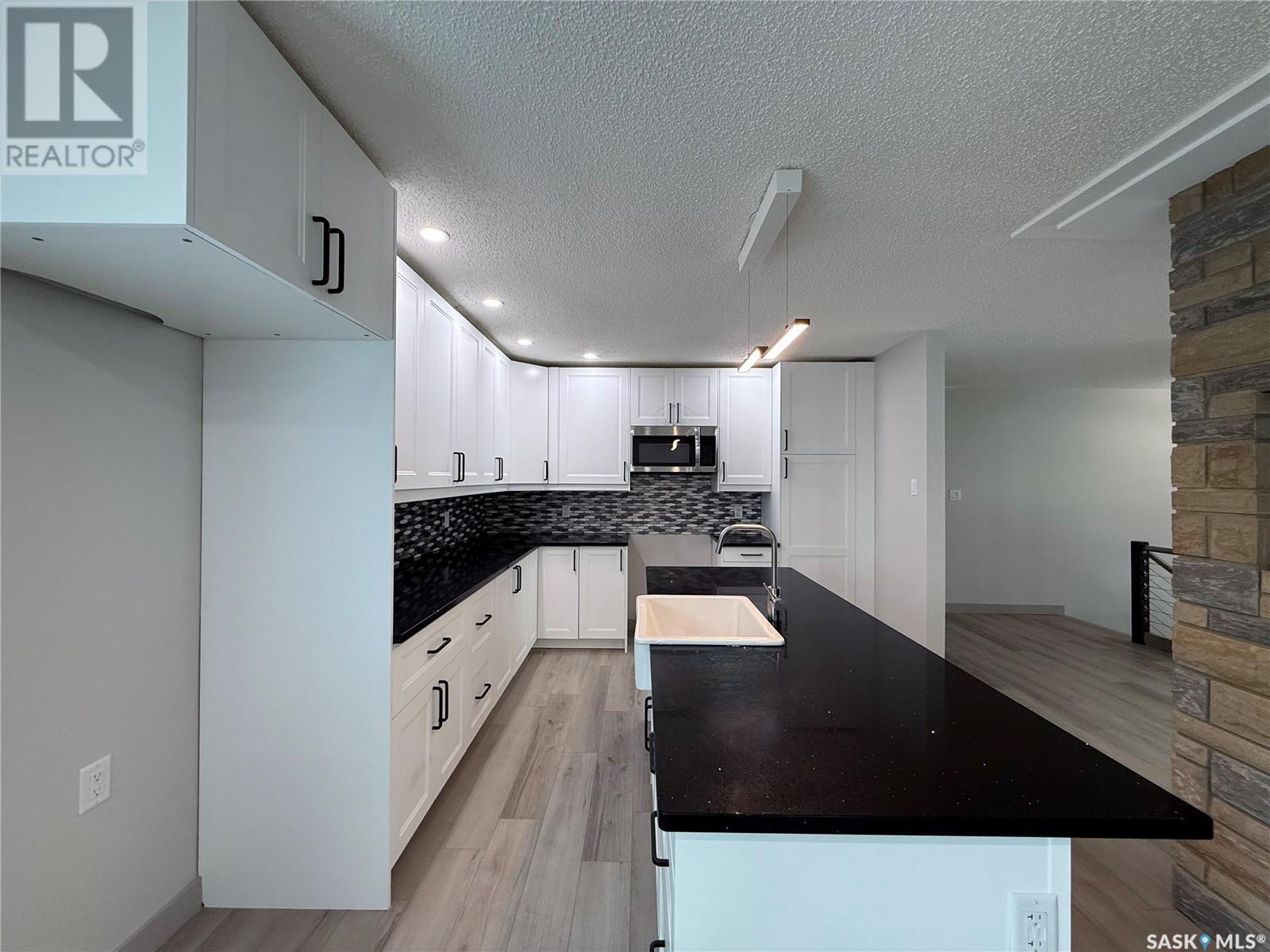 The WOW Factor; extensively renovated in 2025; four bedroom, 3 bath family home, double attached heated garage on quiet crescent; renos include stucco & exterior paint, garage doors, composite deck, interior and exterior doors, windows, some updated plumbing and electrical; tubs, vanities, shower, taps, sinks, mirrors and toilets; flooring throughout with lvp and carpet; trim-base and casings; new kitchen and island with under cabinet lighting, soft close white cabinets with lazy Susan, granite countertops, tiled backsplash and farm sink; microwave hood fan; one furnace replaced; wet bar downstairs with butcher block counter top; exterior and interior lighting; modern steel stair railings; stone mantel and tile hearth; eaves, soffits and fascia; topsoil added and lawn seeded. Home must be seen to be appreciated. (id:43042)